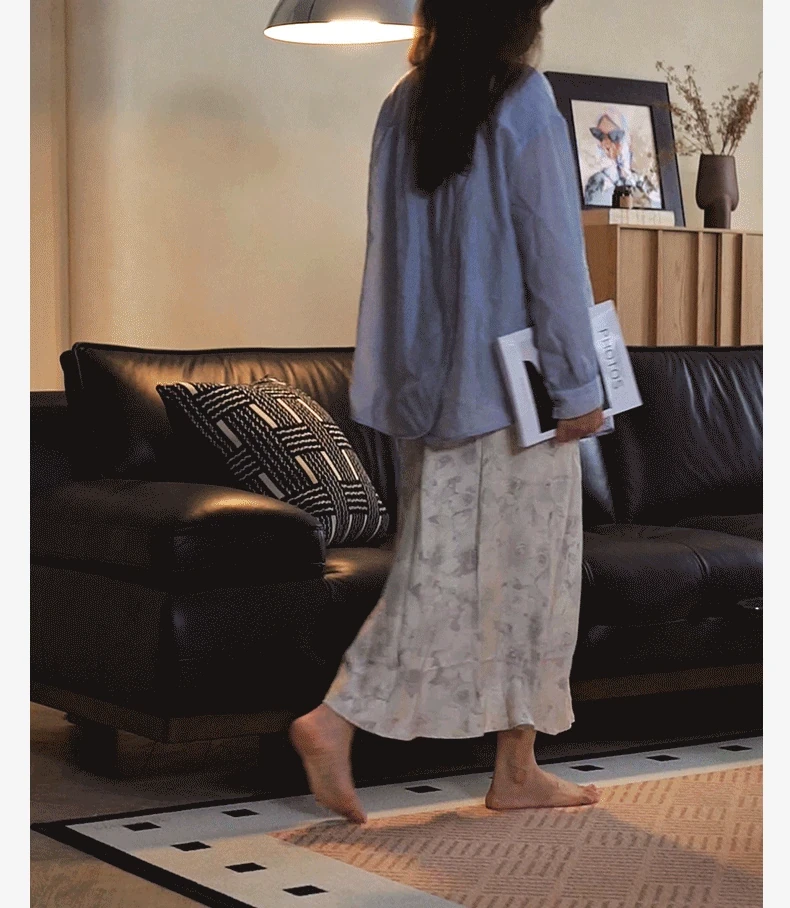 [Ideal Sofa] 98.43 in French White delicate wrestling top layer cowhide (contact surface) with Sensor atmosphere lamp + North American black walnut.