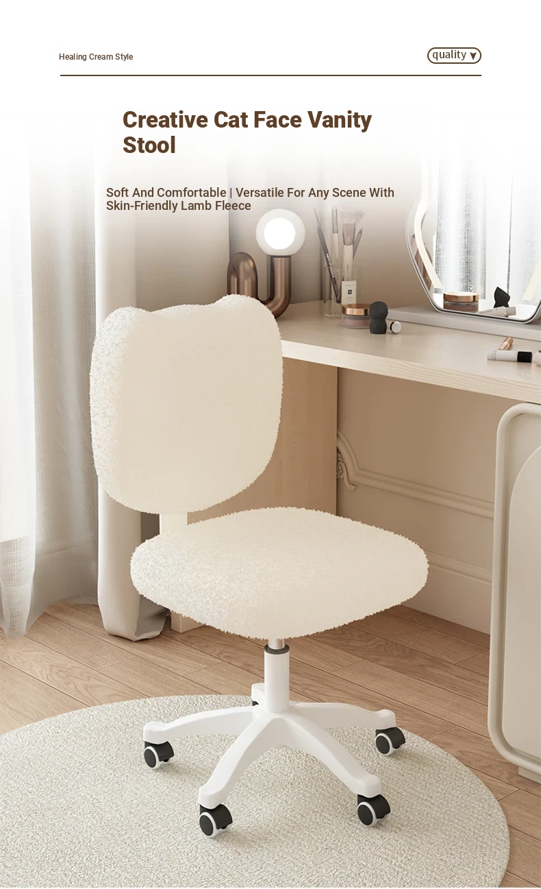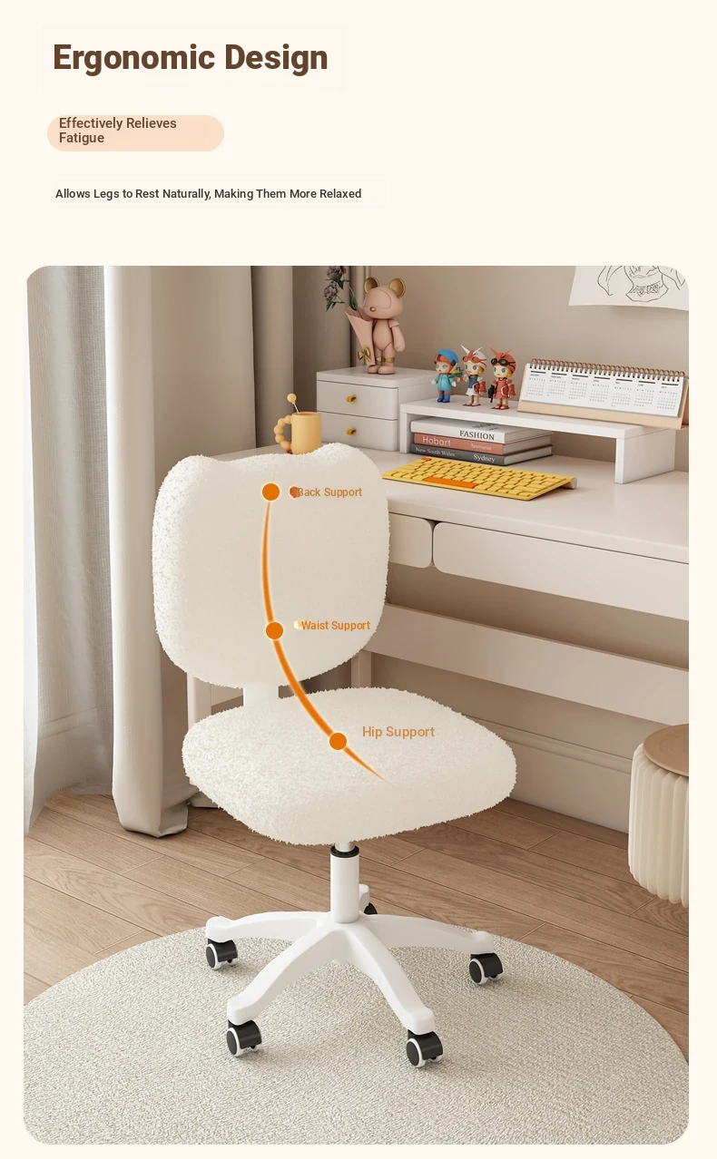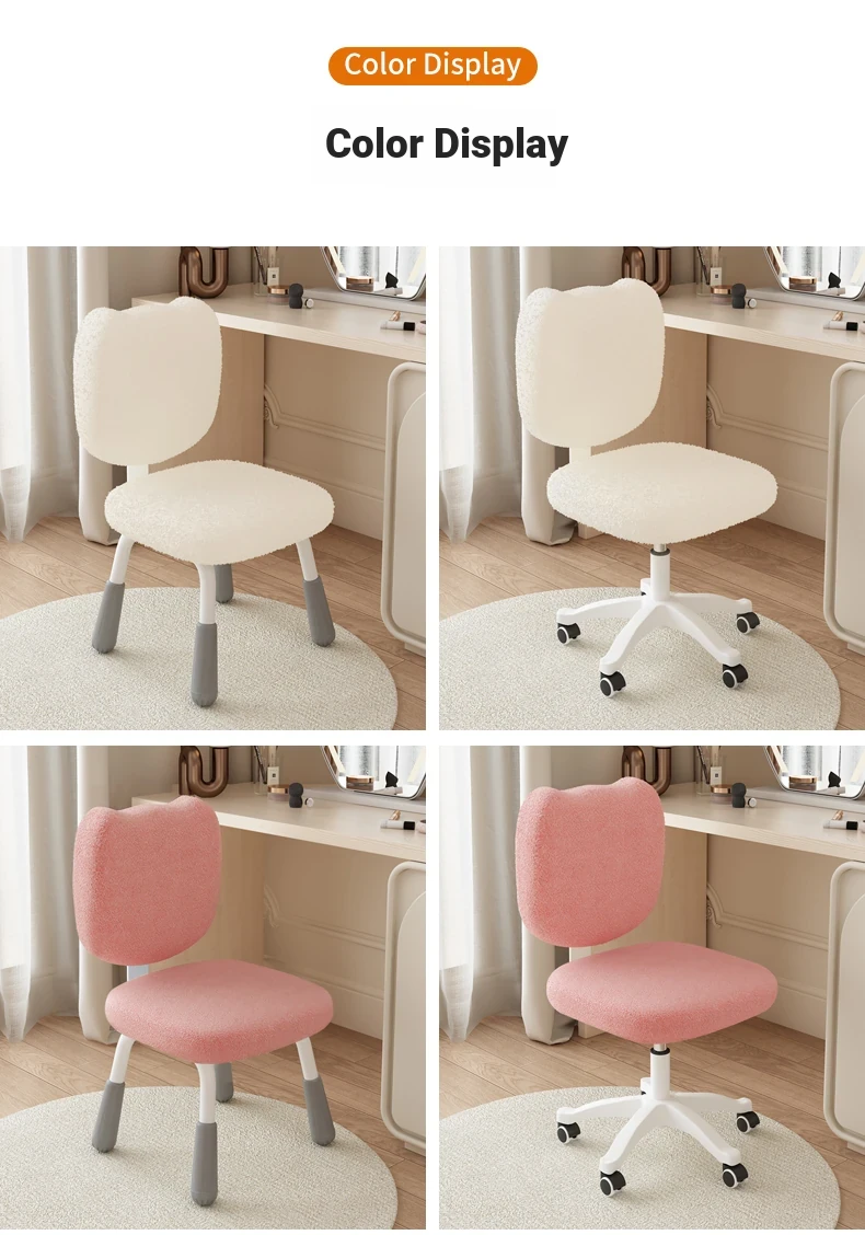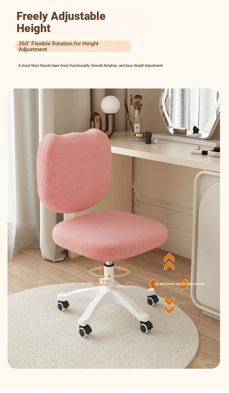 Cozy Lambswool Makeup Chair - Adjustable Bear Study Stool for Correct Posture - Perfect for Desk Use in Your Home Office!