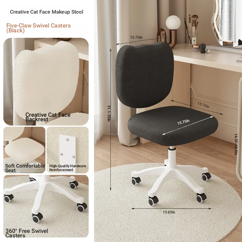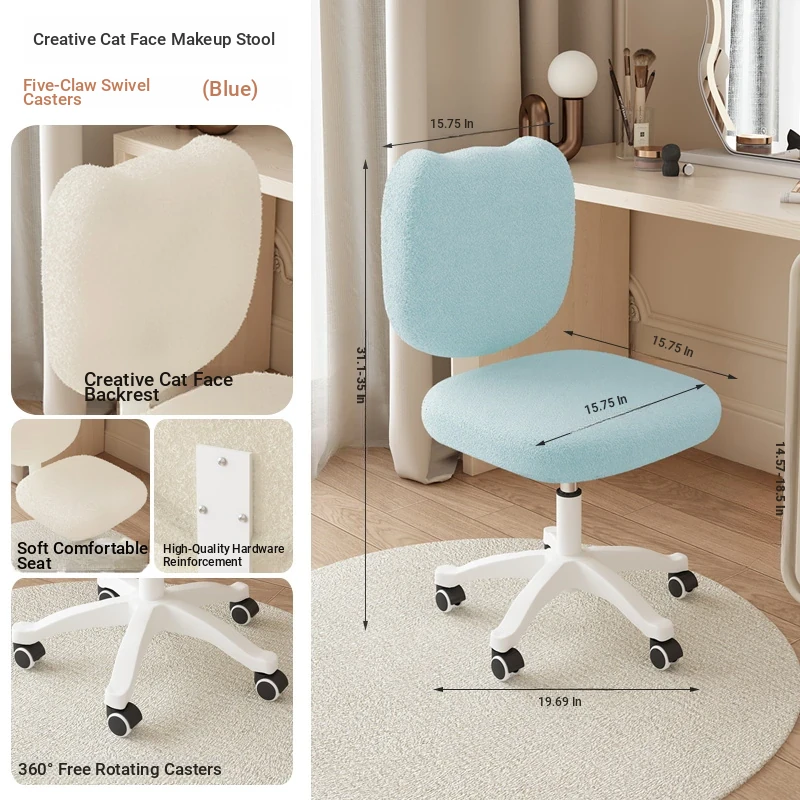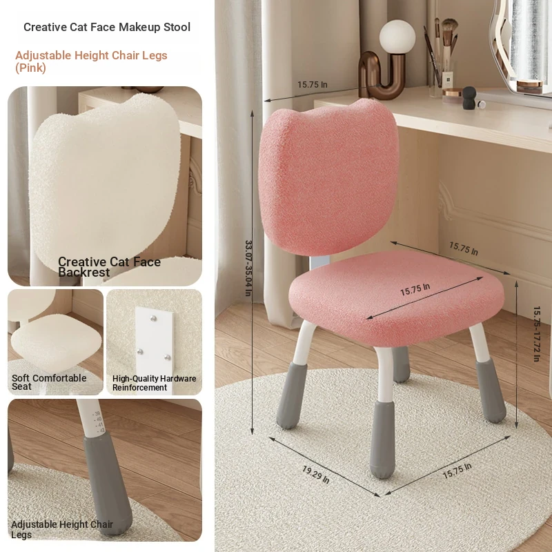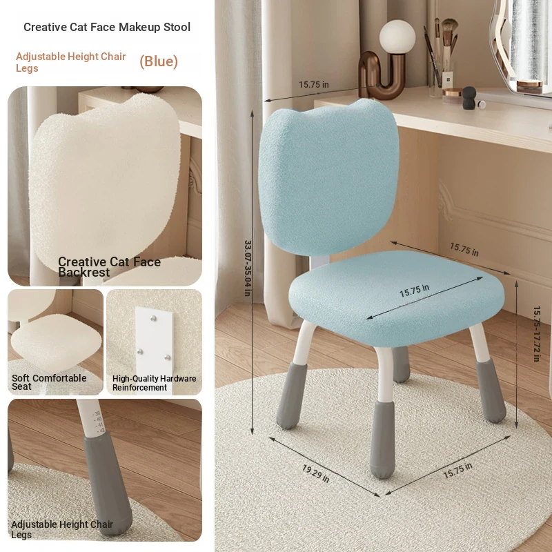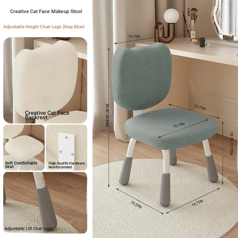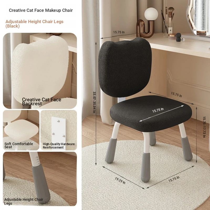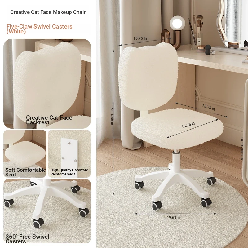 Cozy Lambswool Makeup Chair - Adjustable Bear Study Stool for Correct Posture - Perfect for Desk Use in Your Home Office!