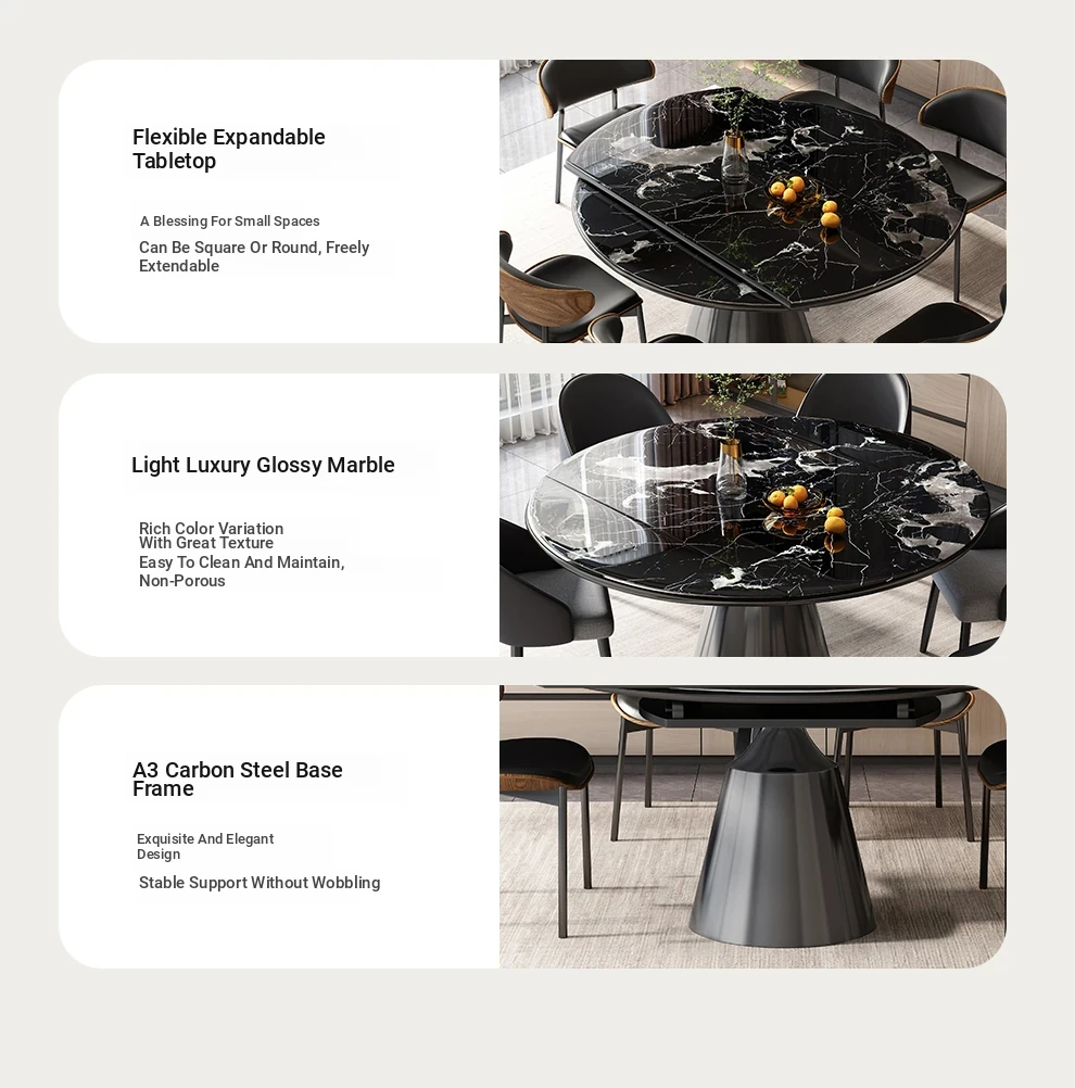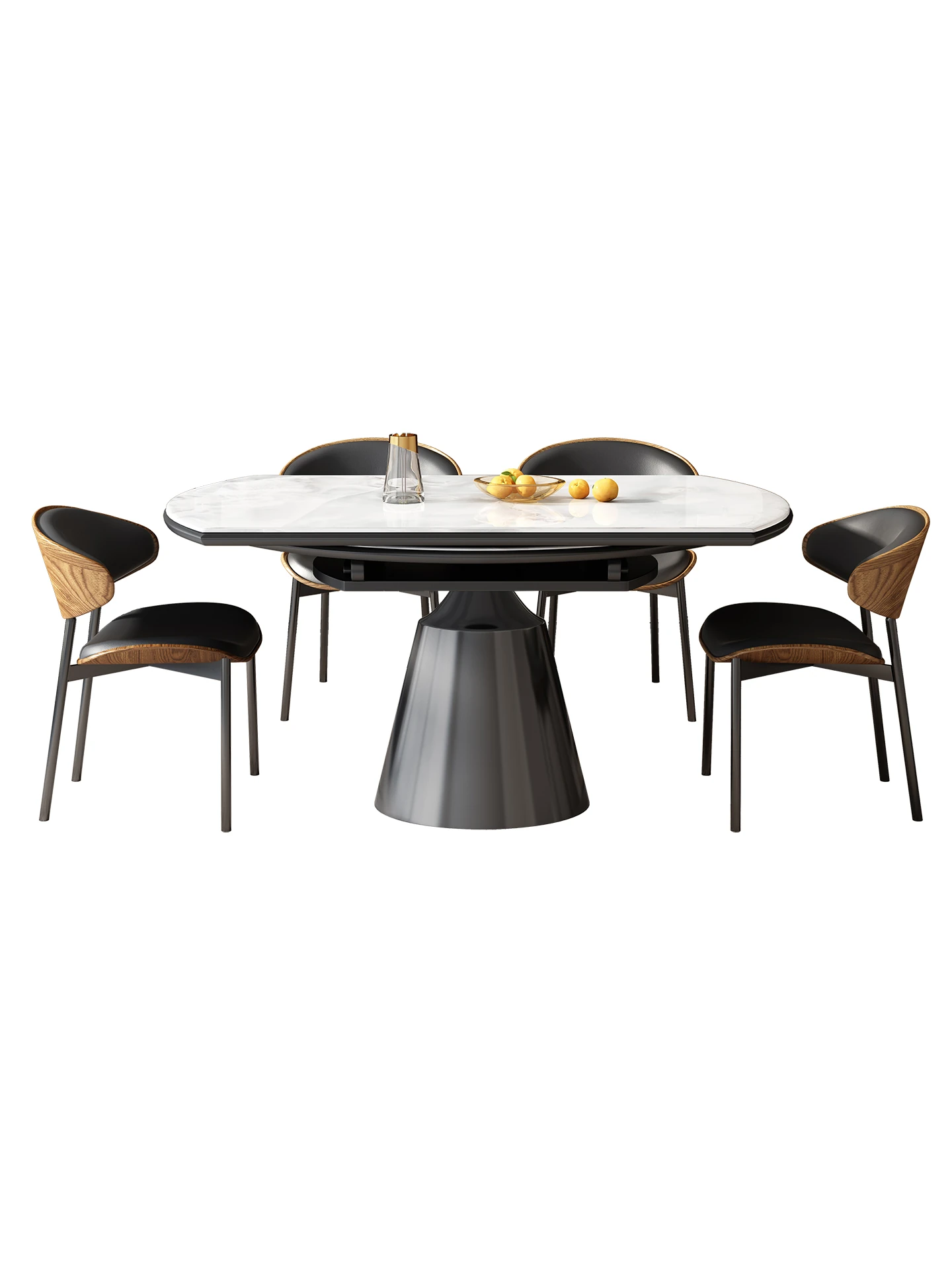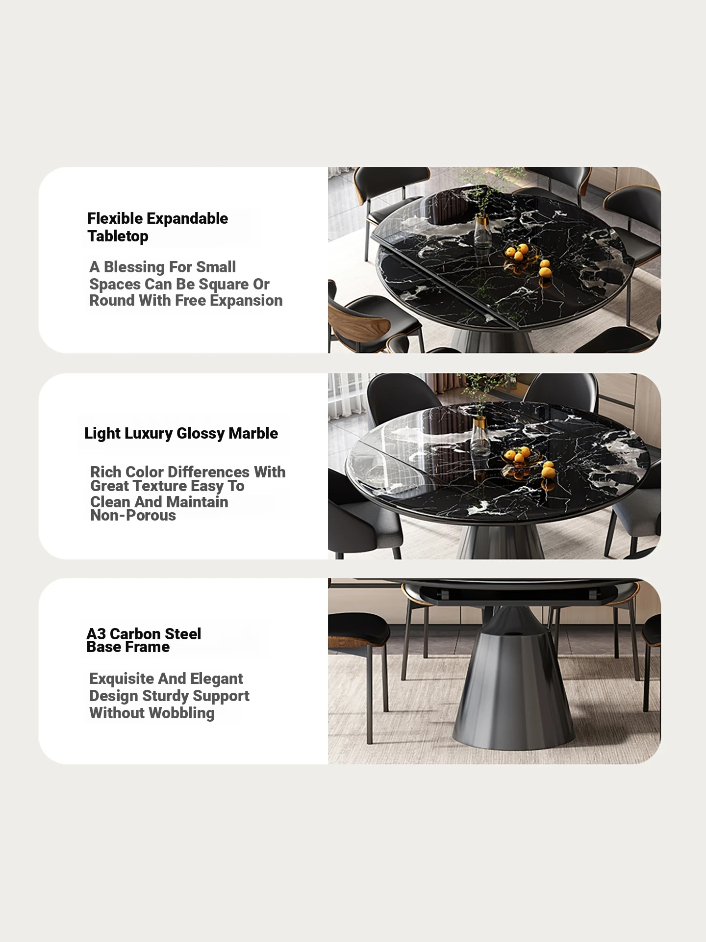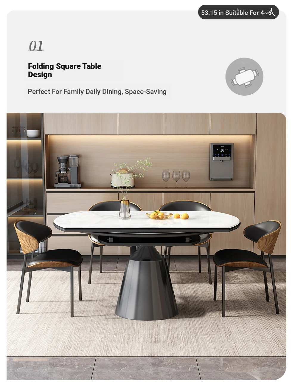 Elegant Italian-Style Natural Marble Dining Table with Extendable and Folding Chair Set – Perfect for Small Homes, Versatile Round and Square Design