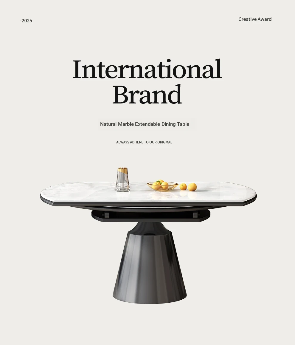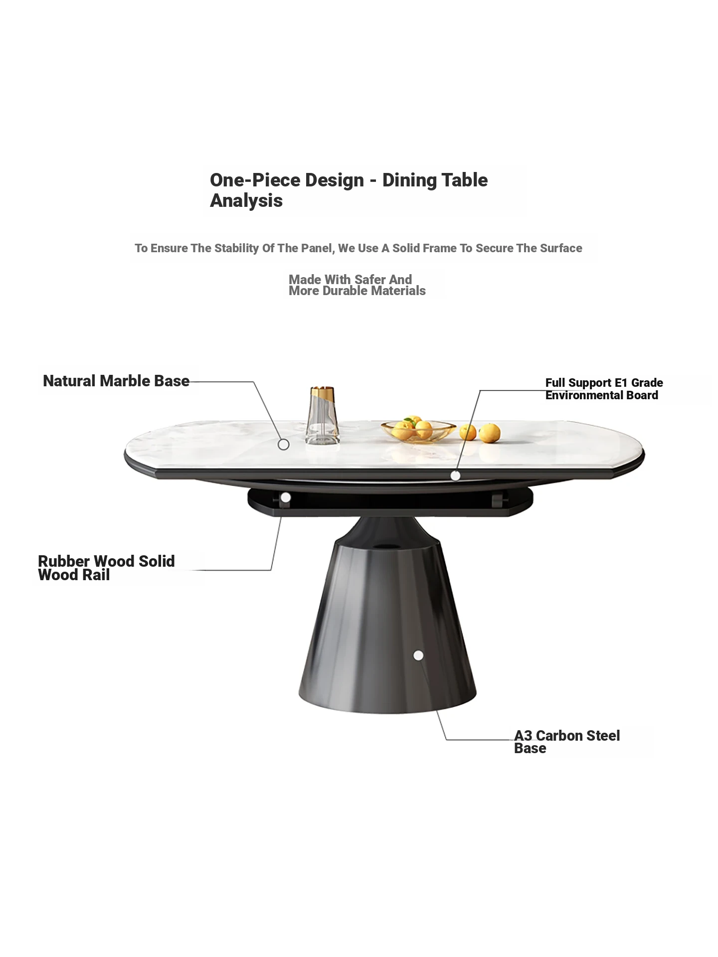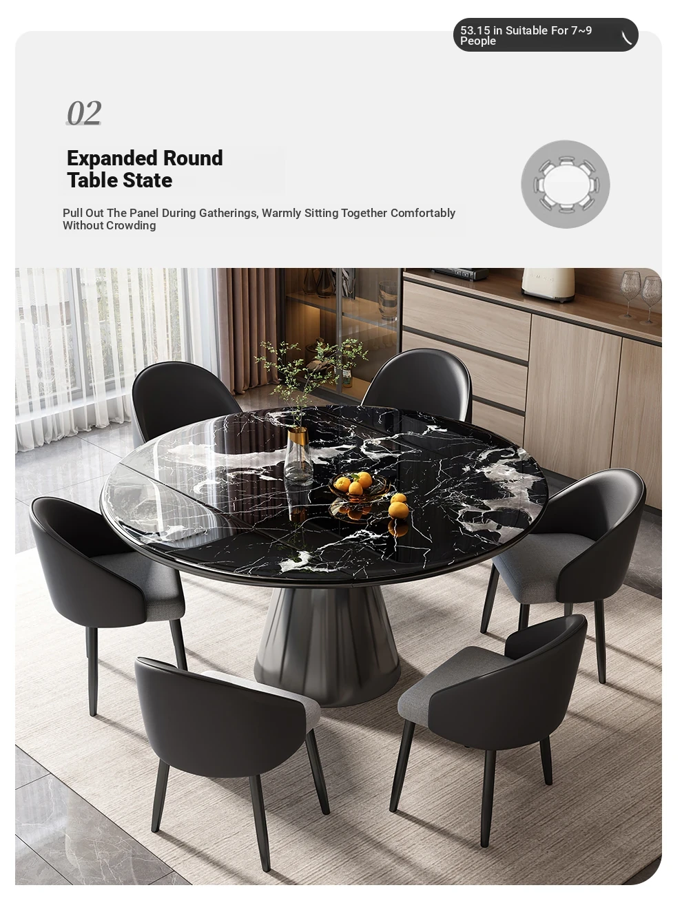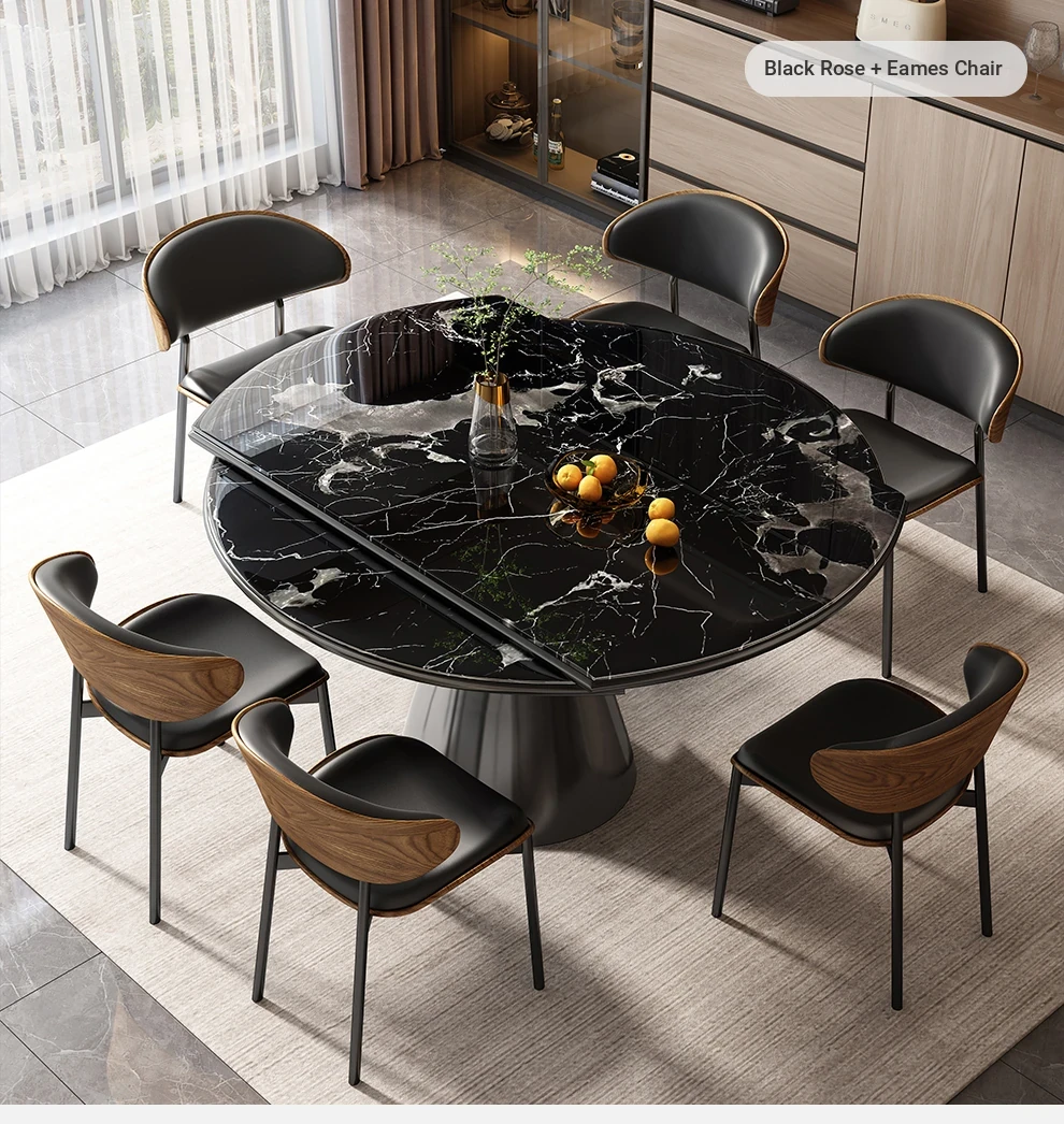 Elegant Italian-Style Natural Marble Dining Table with Extendable and Folding Chair Set – Perfect for Small Homes, Versatile Round and Square Design