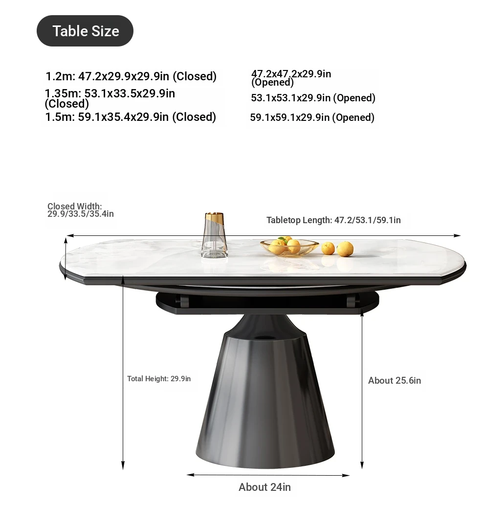 Black Rose-Single Dining Table [Natural Marble Countertop +0.59in Full Base Plate]]