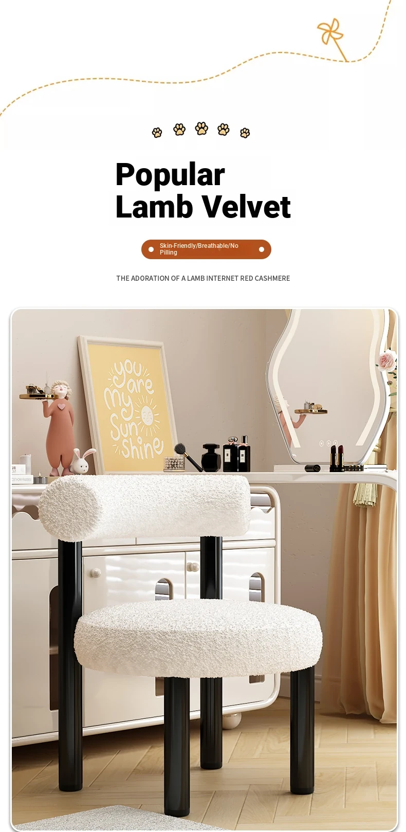 Elegant Makeup Stool - Modern Minimalist Vanity Chair for Women, Perfect for Bedrooms and Nail Art. Stylish and Comfortable Design for Your Beauty Routine!