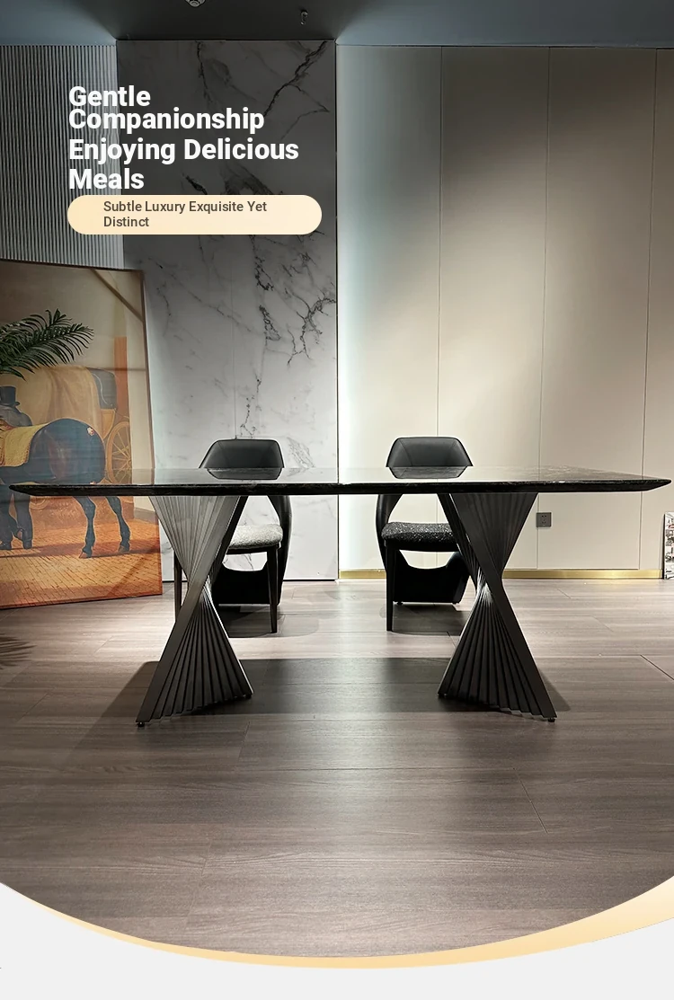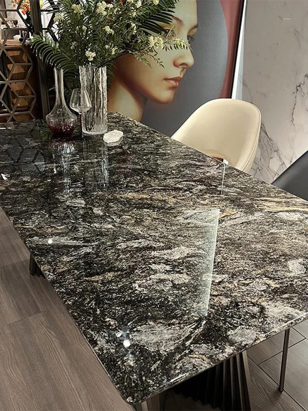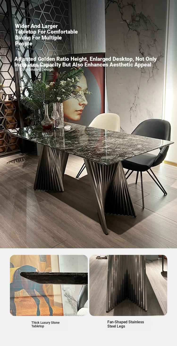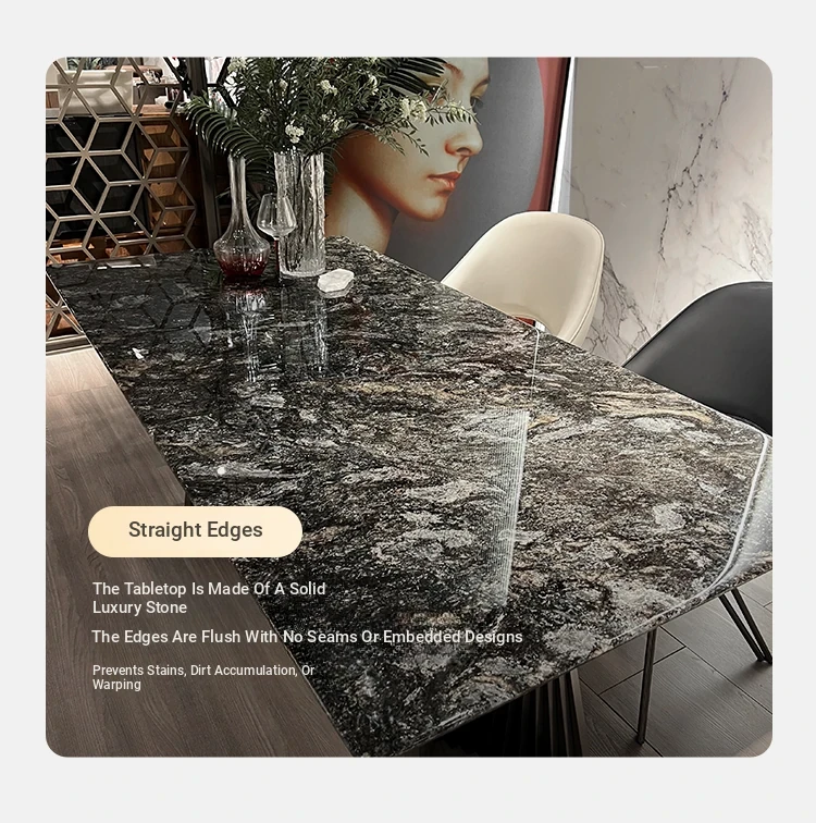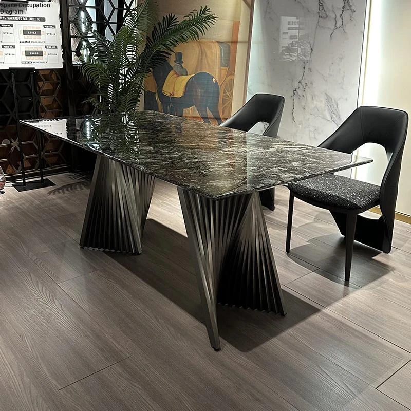 Italian Luxury Natural Marble Platinum Diamond Rectangular Dining Table - Designer Collection for Compact Living Spaces