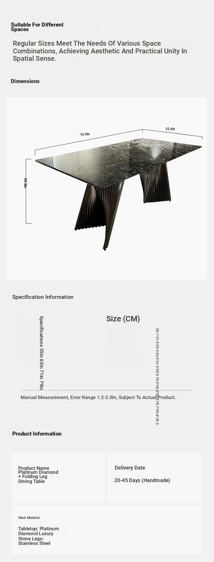 55.12in*31.50in platinum diamond luxury stone