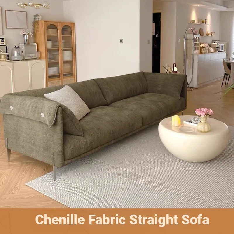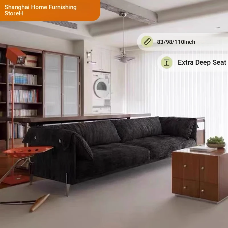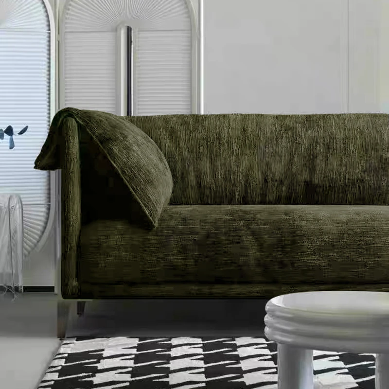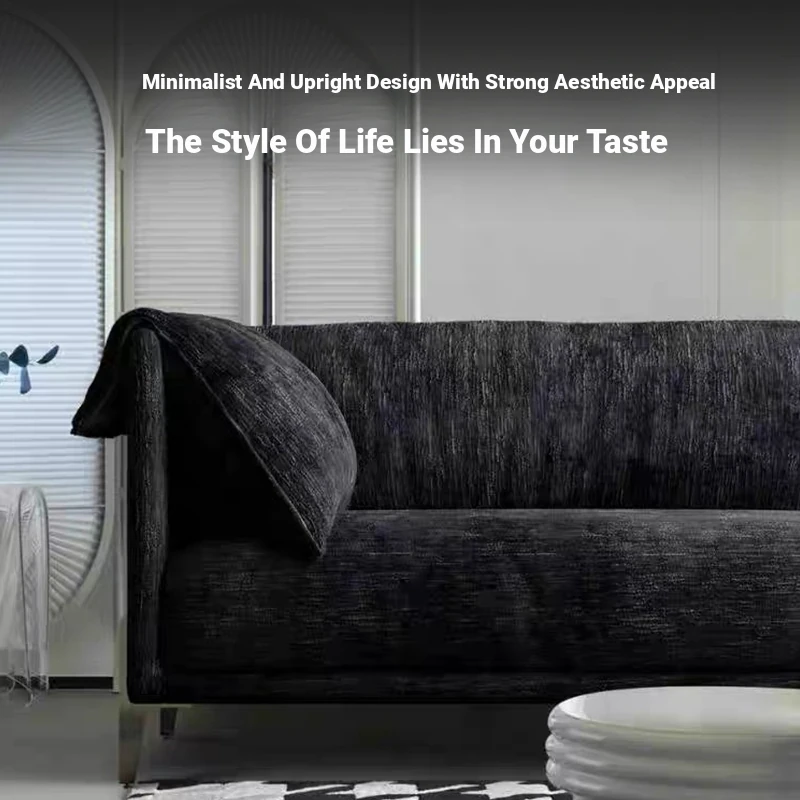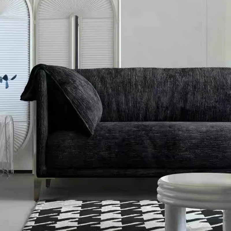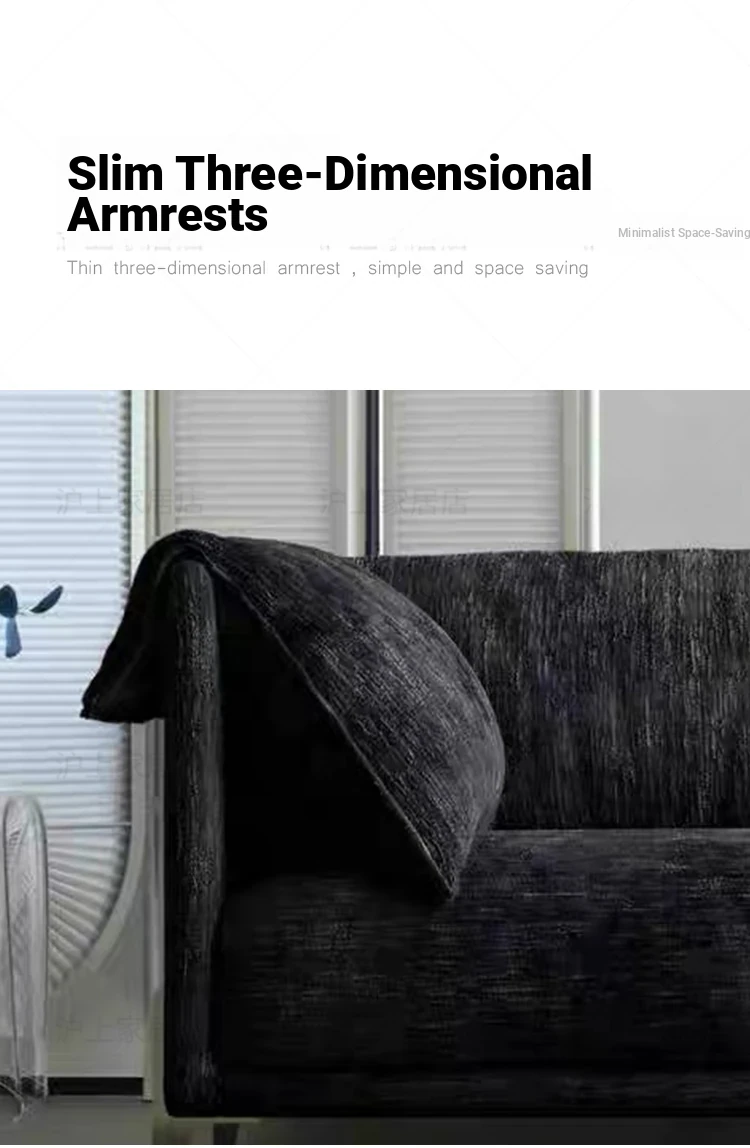 Italian Minimalist Black Chenille Sofa for Small Spaces - Stylish and Versatile Upholstered Couch for Living Room, Perfect for Relaxing, Lounging, and Sleeping.