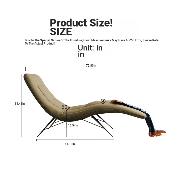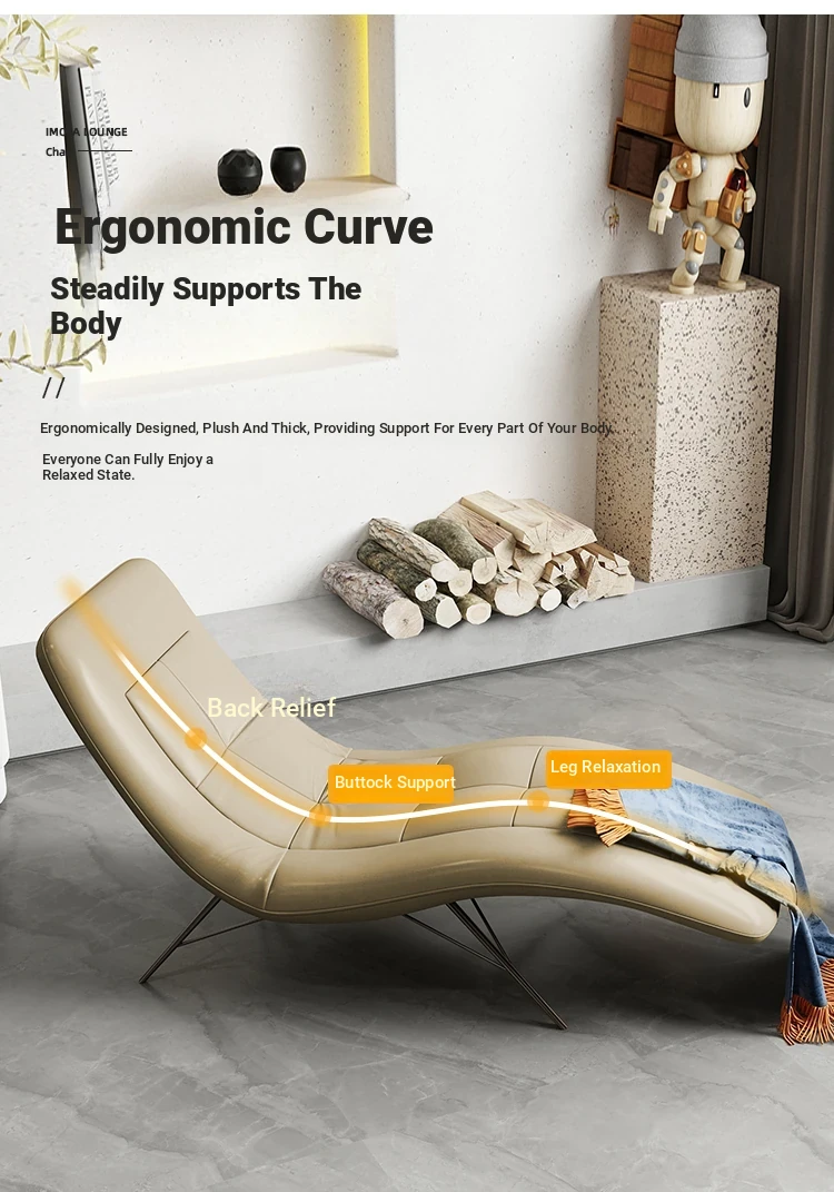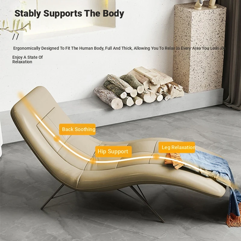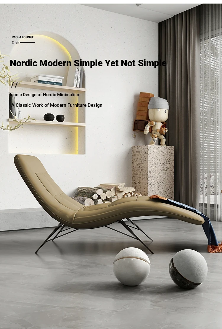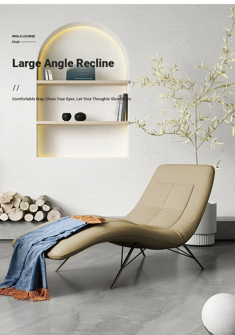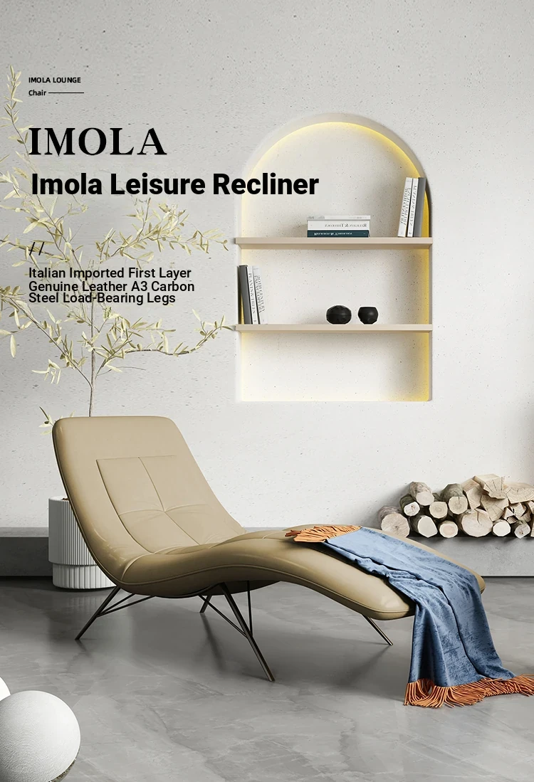 Italian Minimalist Genuine Leather Chaise Lounge - Modern Designer Balcony Recliner for Relaxation, Perfect for Influencers and Lazy Days.