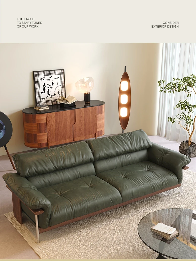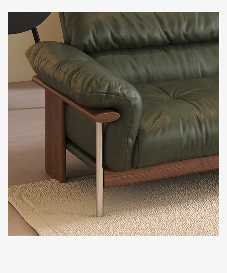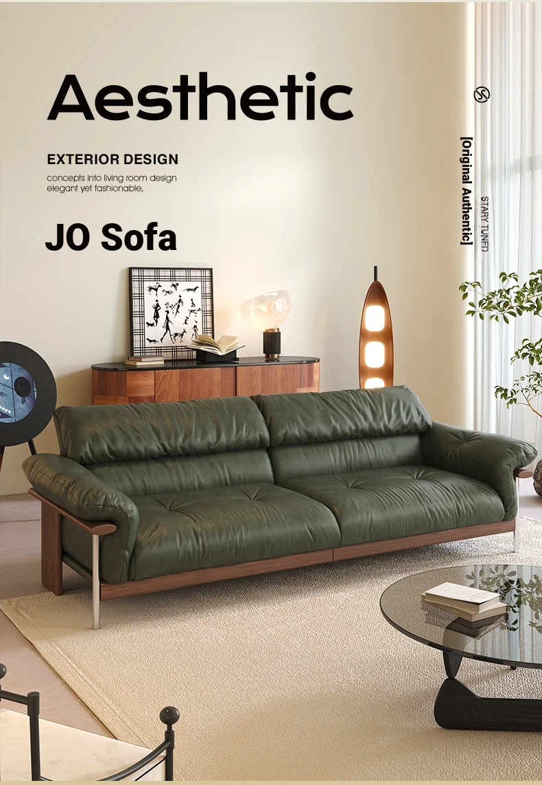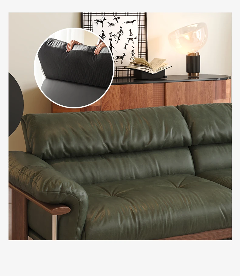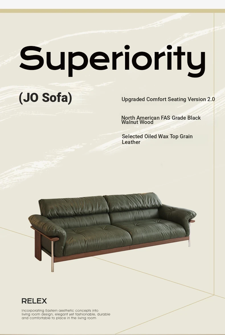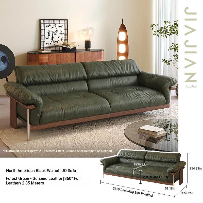 Jo Sofa - North American Black Walnut Wood Mid-Century Solid Wood Oil Wax Leather Living Room Sofa - Stylish and Durable Genuine Leather Couch for Your Home