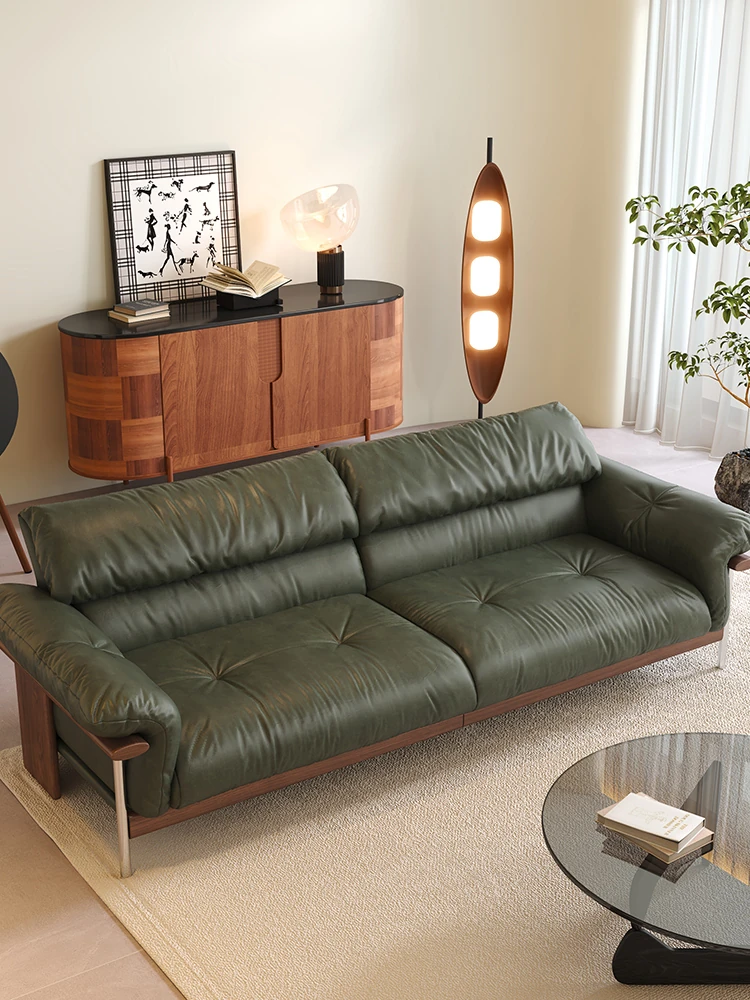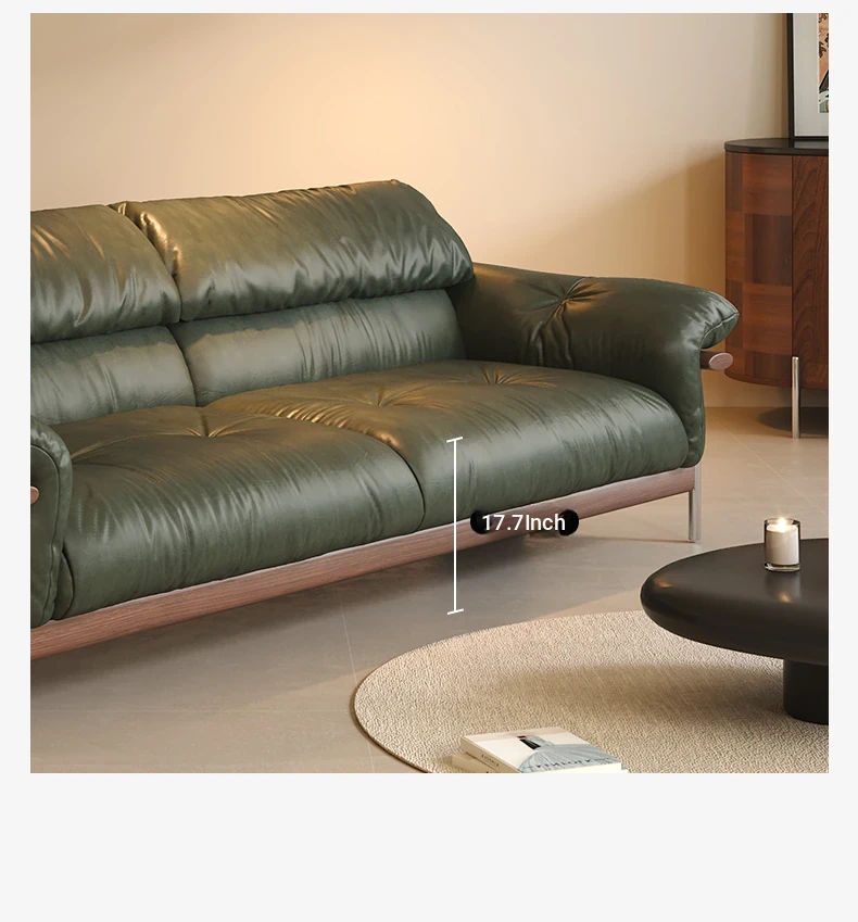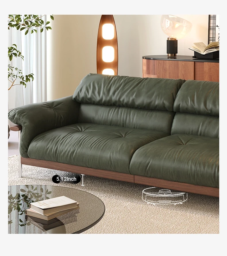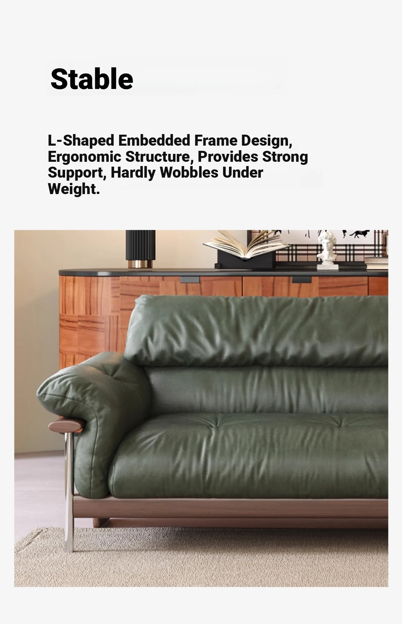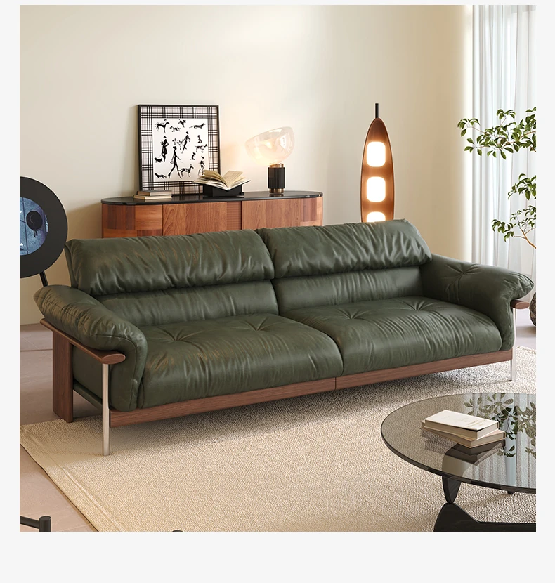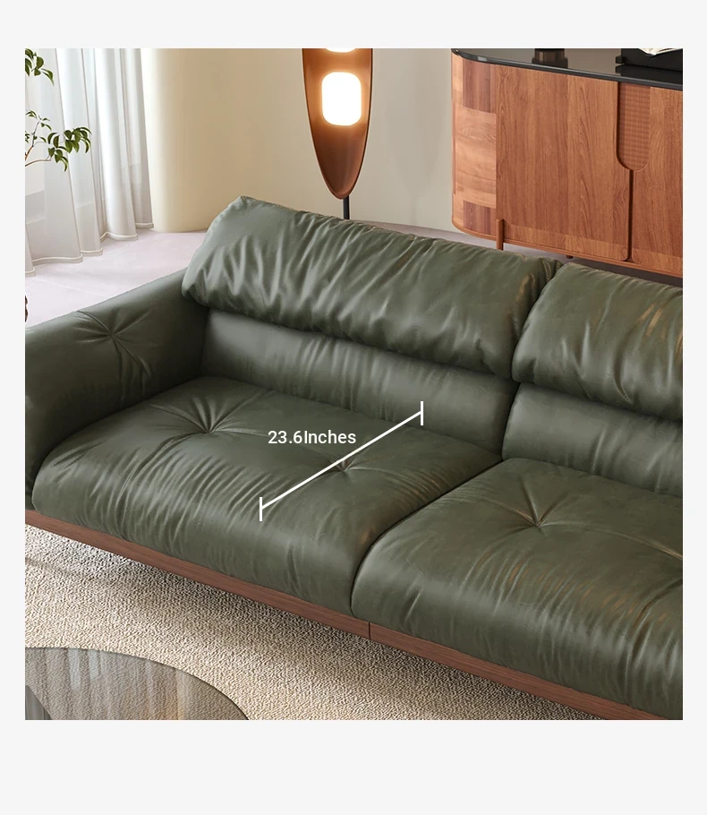 Jo Sofa - North American Black Walnut Wood Mid-Century Solid Wood Oil Wax Leather Living Room Sofa - Stylish and Durable Genuine Leather Couch for Your Home