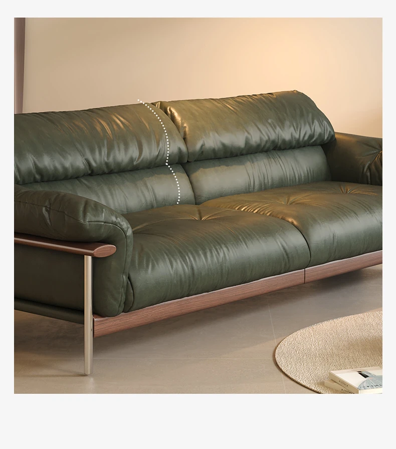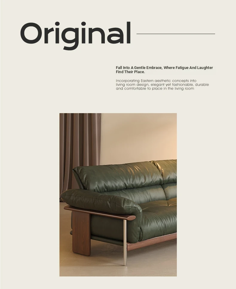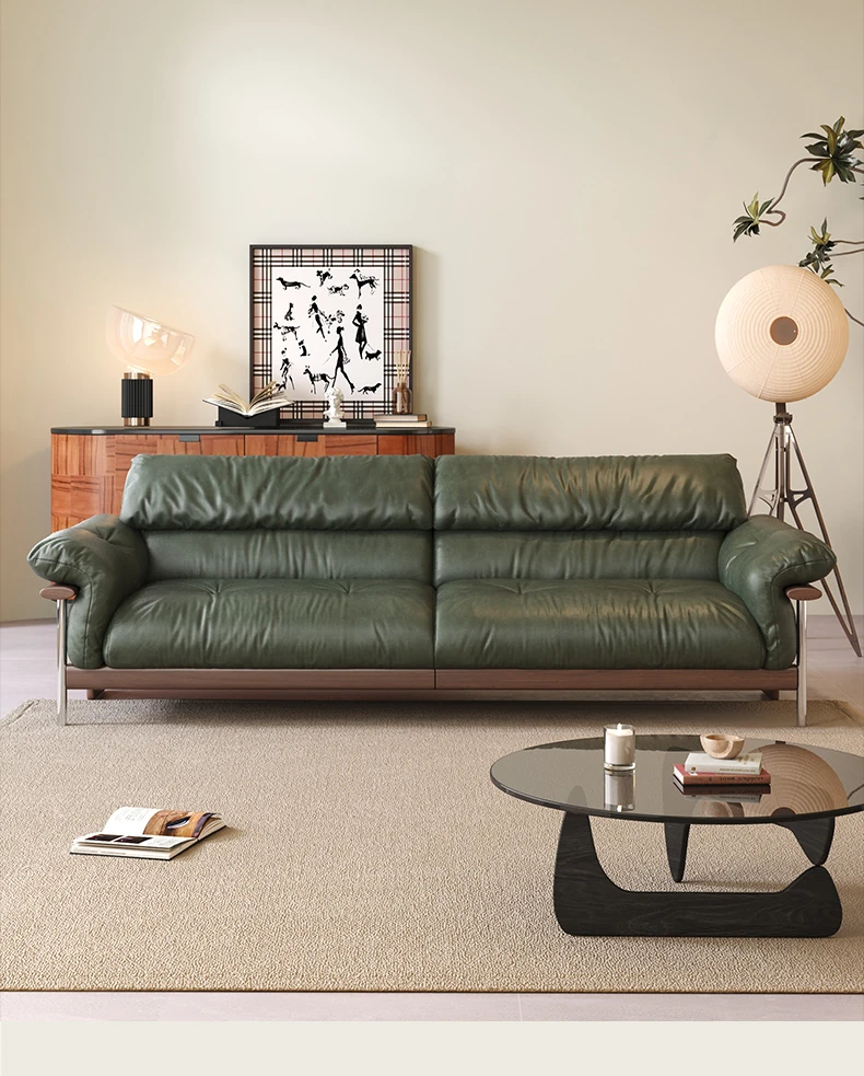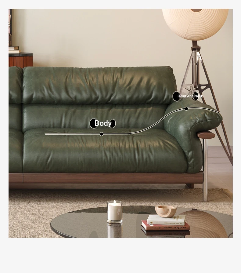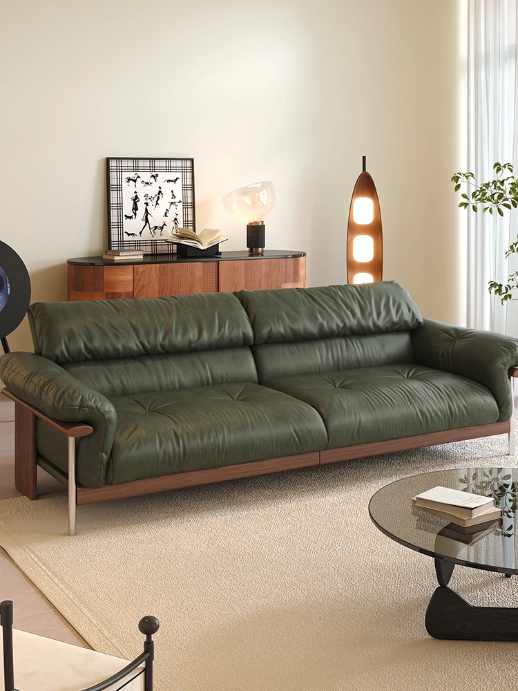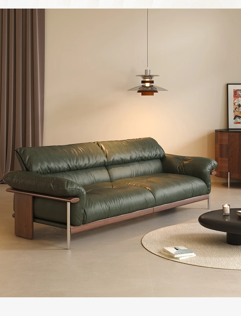Jo Sofa - North American Black Walnut Wood Mid-Century Solid Wood Oil Wax Leather Living Room Sofa - Stylish and Durable Genuine Leather Couch for Your Home