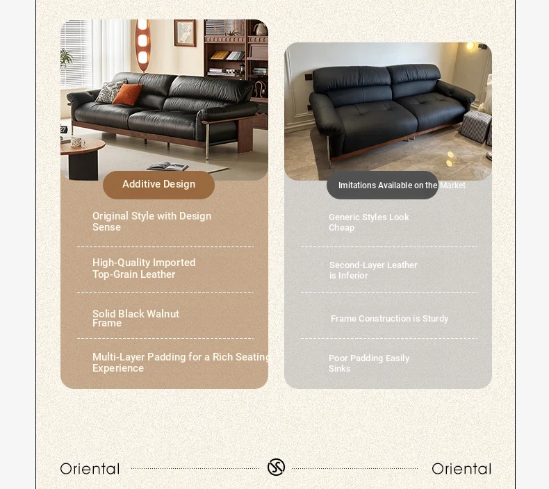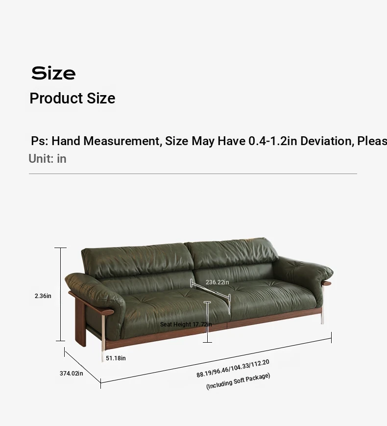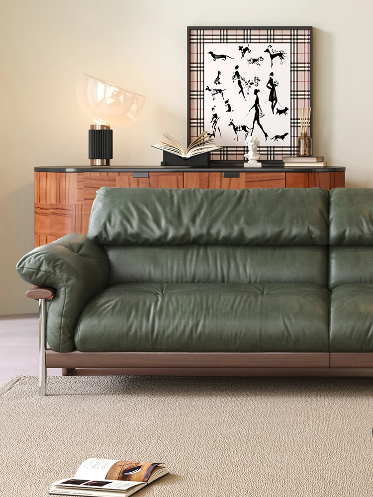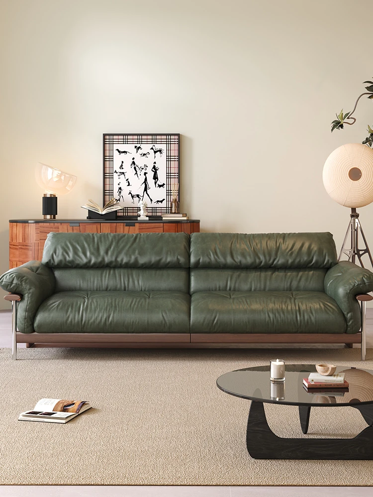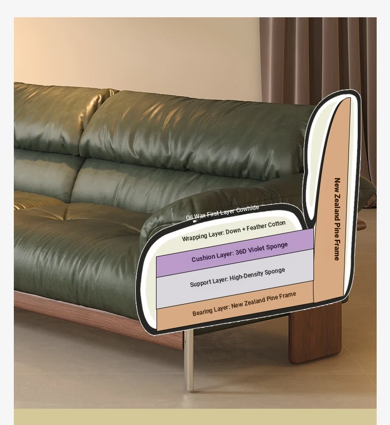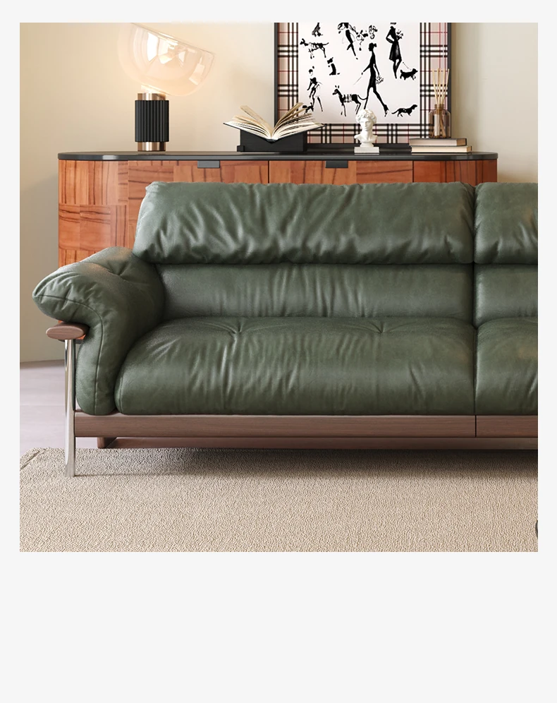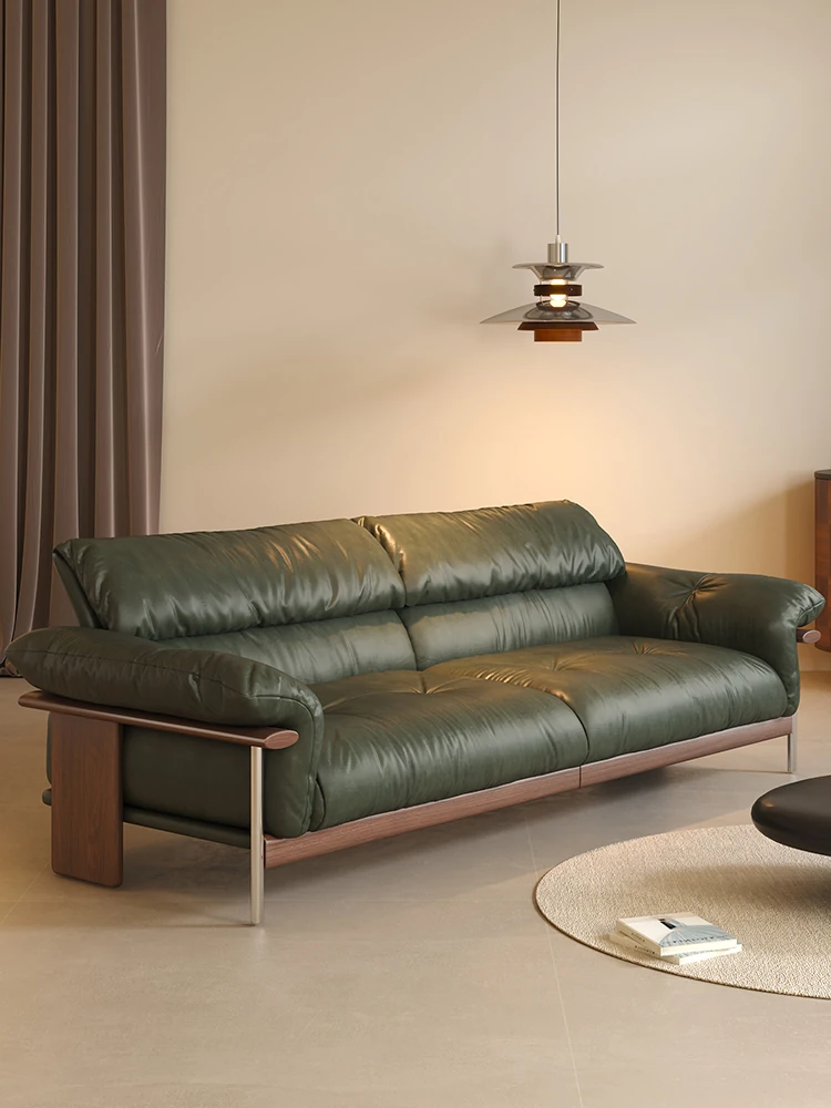 Jo Sofa - North American Black Walnut Wood Mid-Century Solid Wood Oil Wax Leather Living Room Sofa - Stylish and Durable Genuine Leather Couch for Your Home