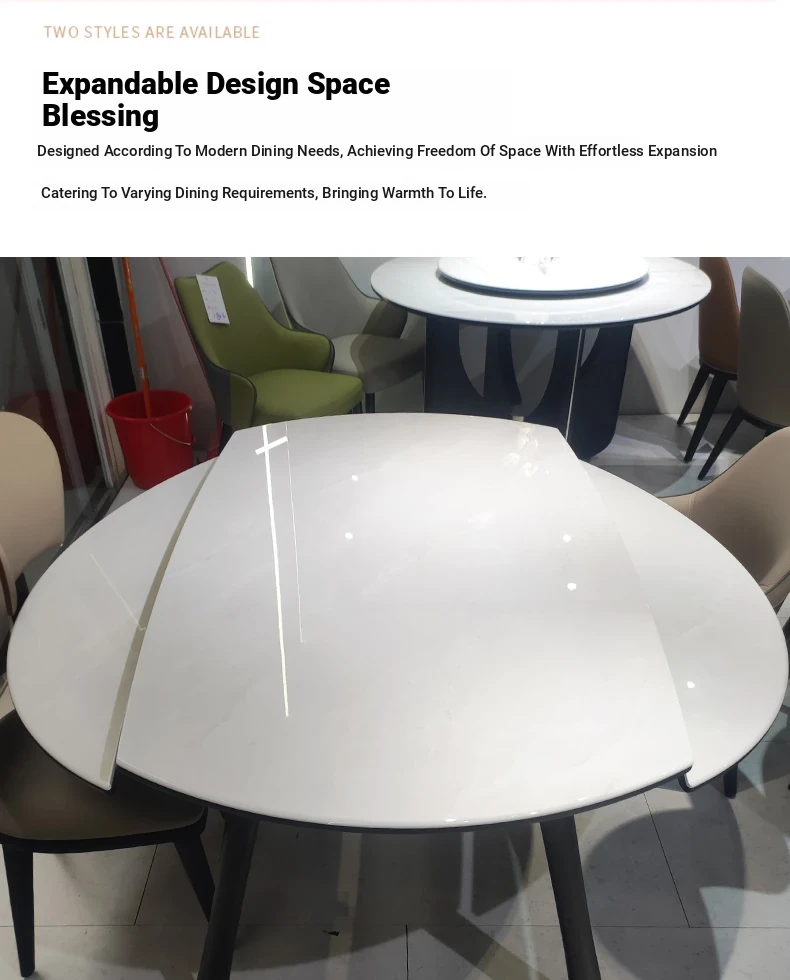 Modern 1.5m Solid Wood Dining Table and Chair Set - Stylish, Expandable Round Dining Table with Rock Plate for Home Use, Featuring Durable Microcrystalline Stone Finish.