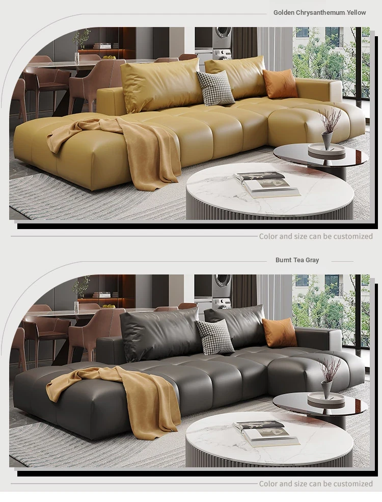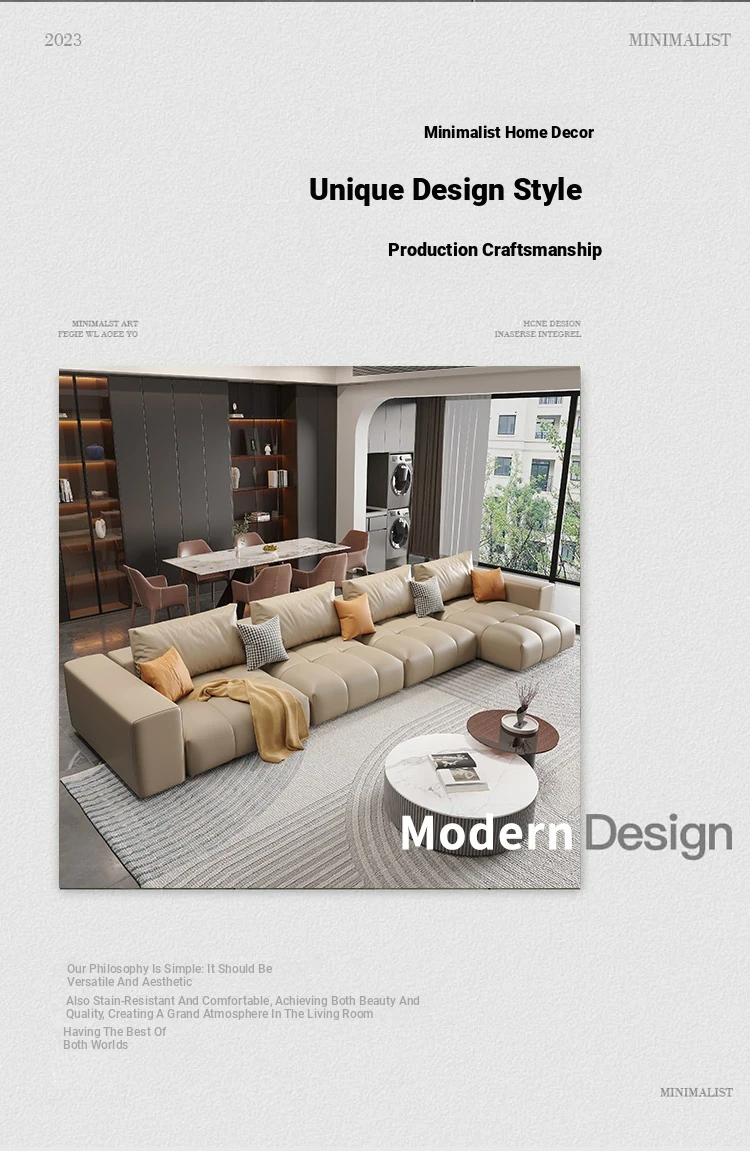 Premium Leather Modular Sofa for Small Living Rooms - Modern Minimalist Design with Elegant Cream Finish, Perfect for Trendy Spaces.