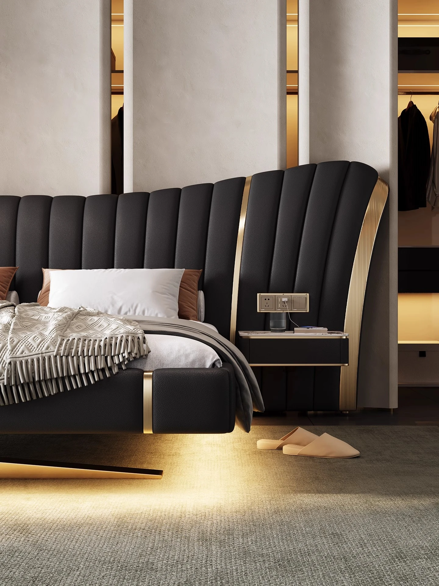 Pursang Luxury Italian Leather Bed - Modern Minimalist 1.8m Double Bed for Master Bedroom with Storage, Elegant Design in 2m Size