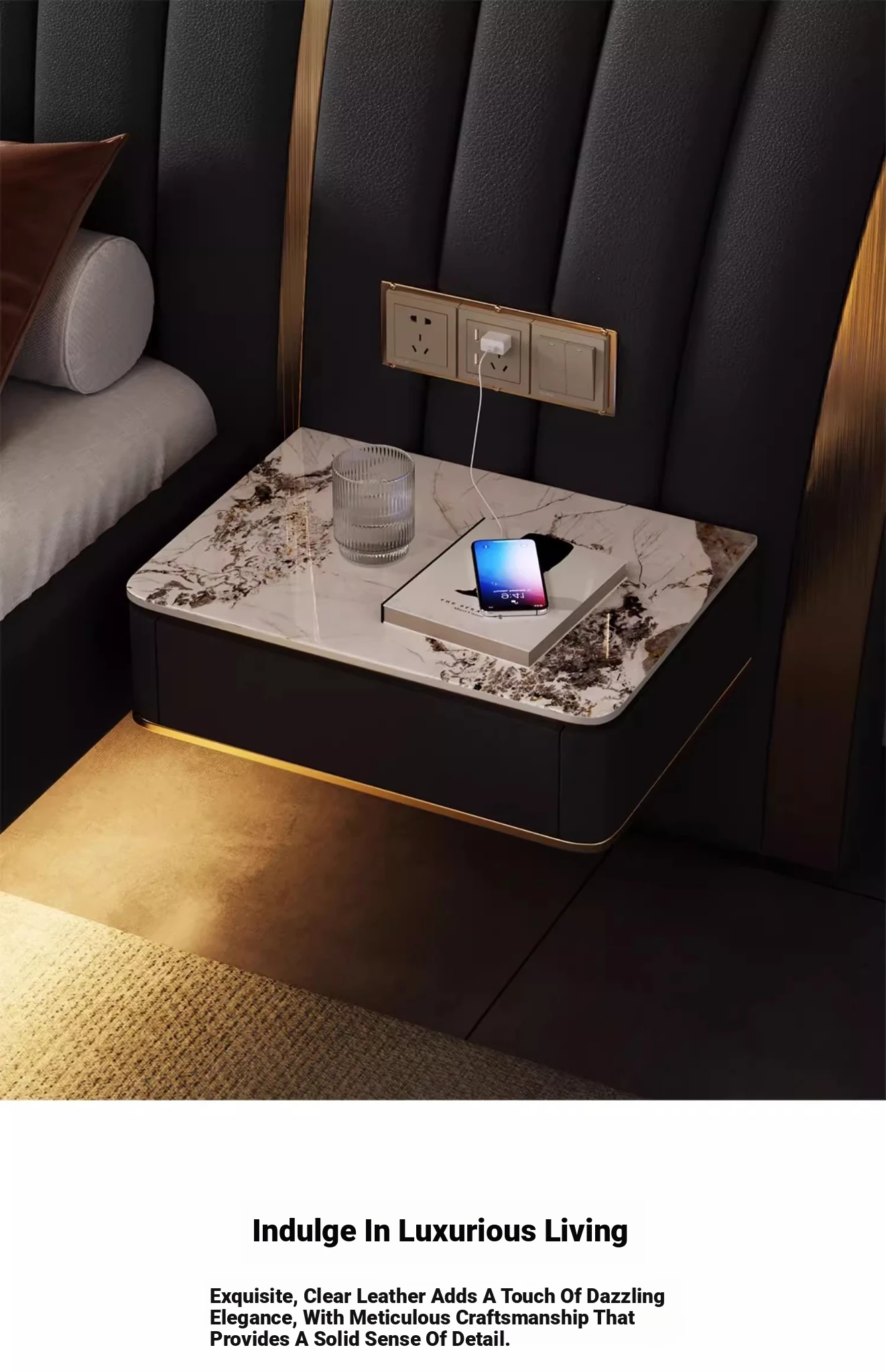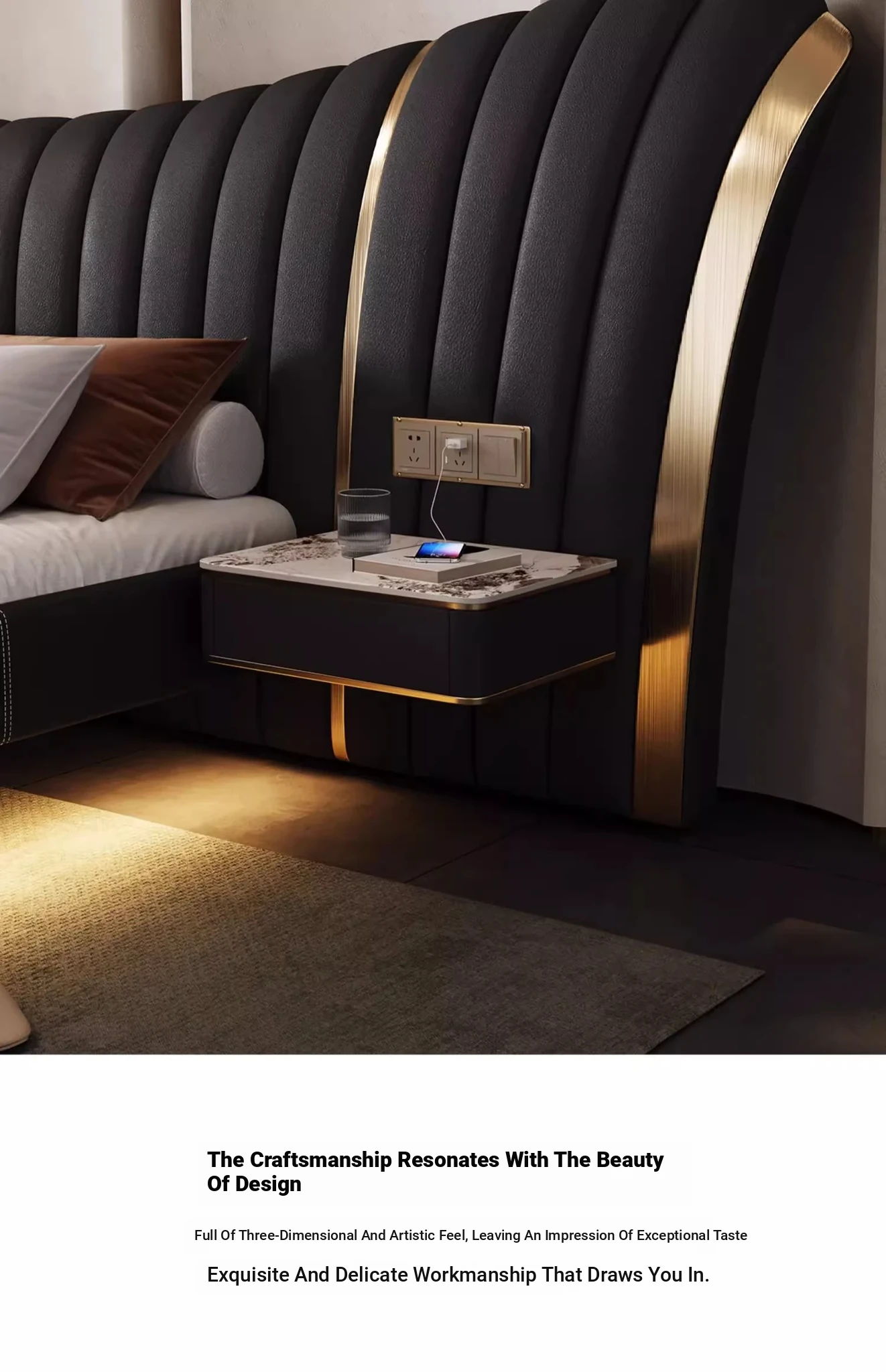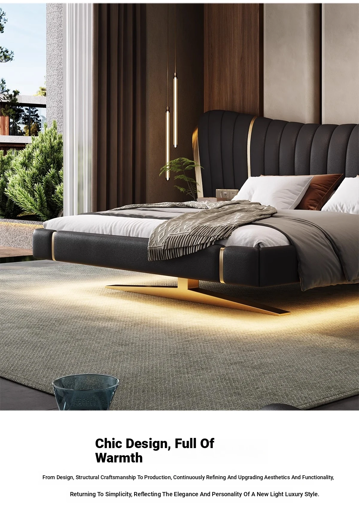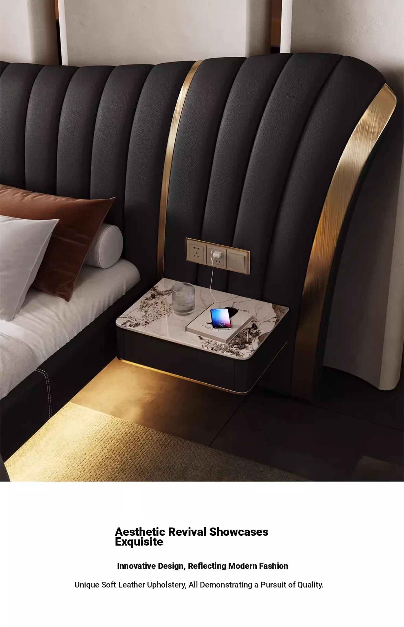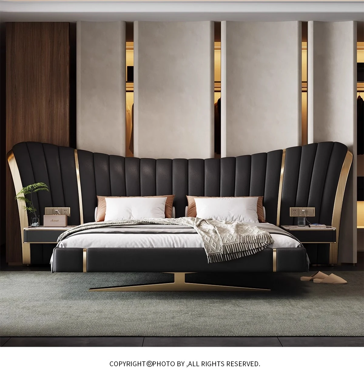 First Layer Cowhide Bed + 2 Bedside Tables(No Mattress)