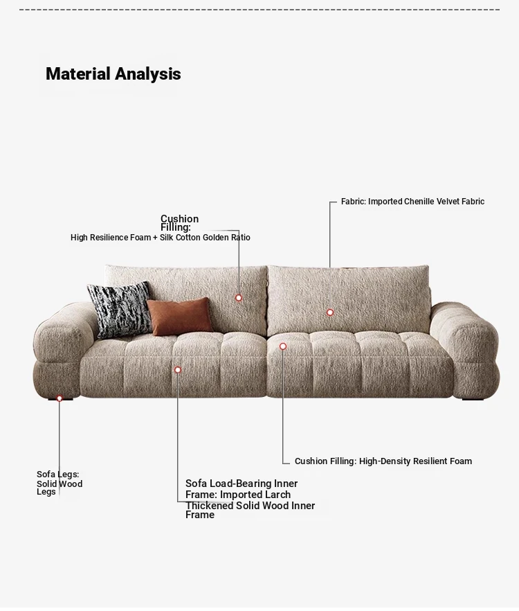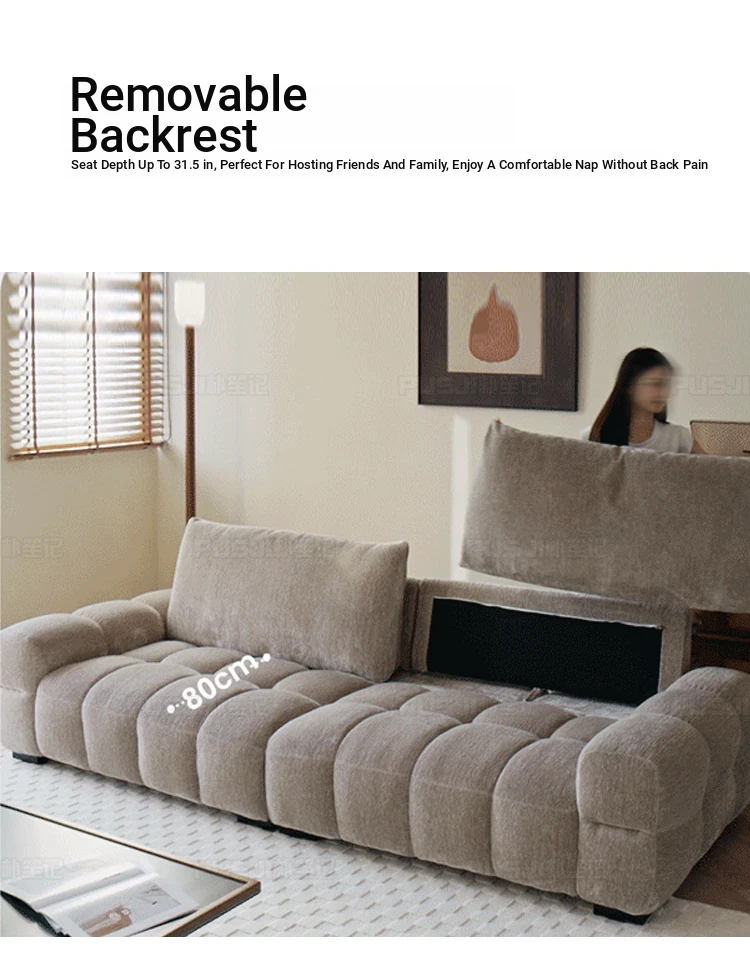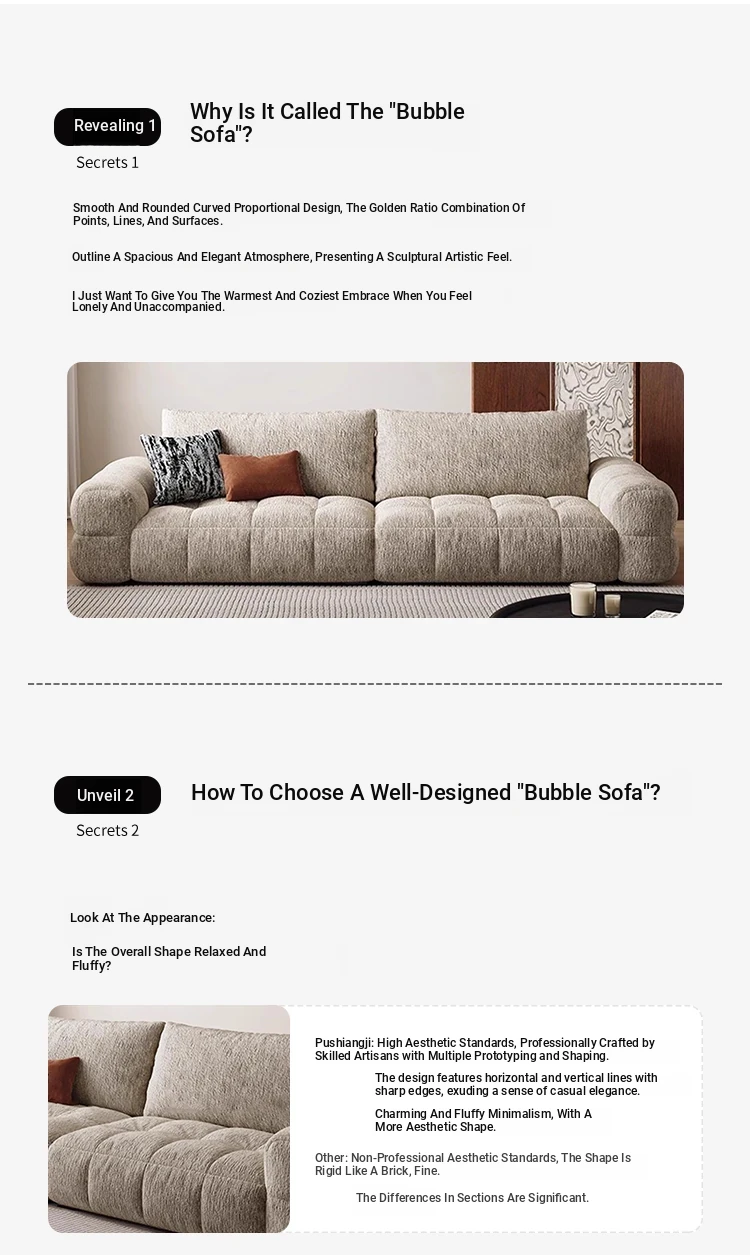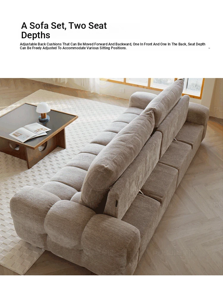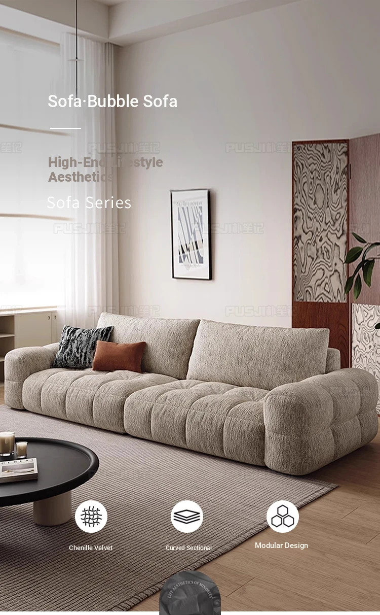"Pusheji Adjustable Bubble Sofa - French Vintage Style Cream Fabric Couch for Living Room, Luxurious Modern Chenille Design"