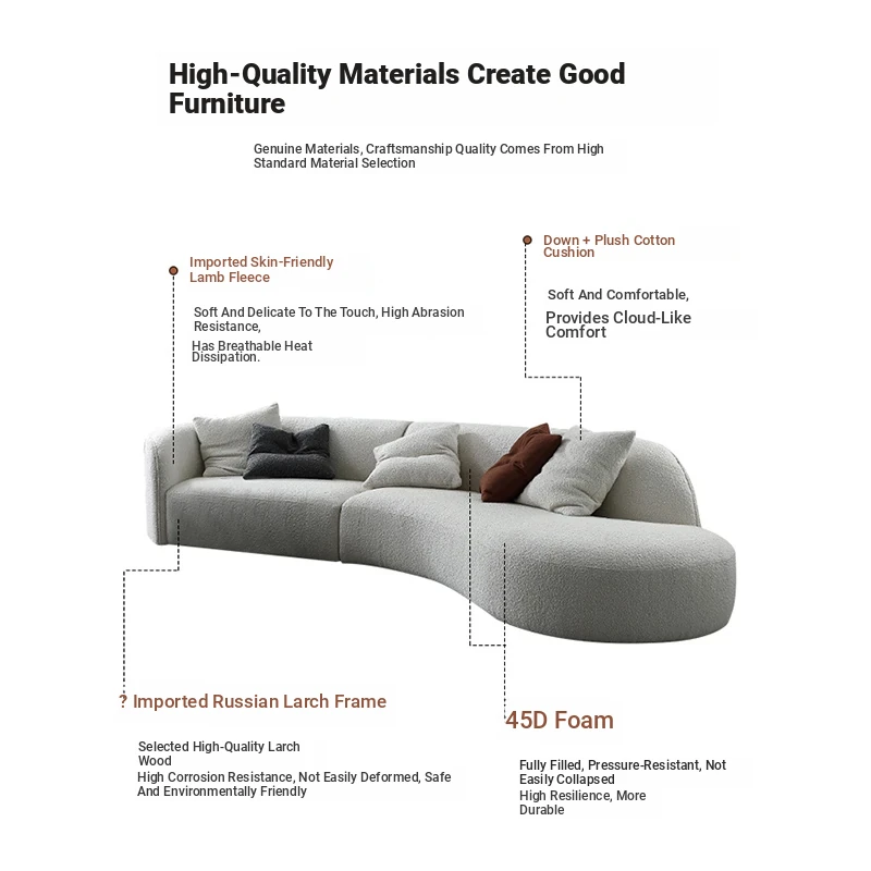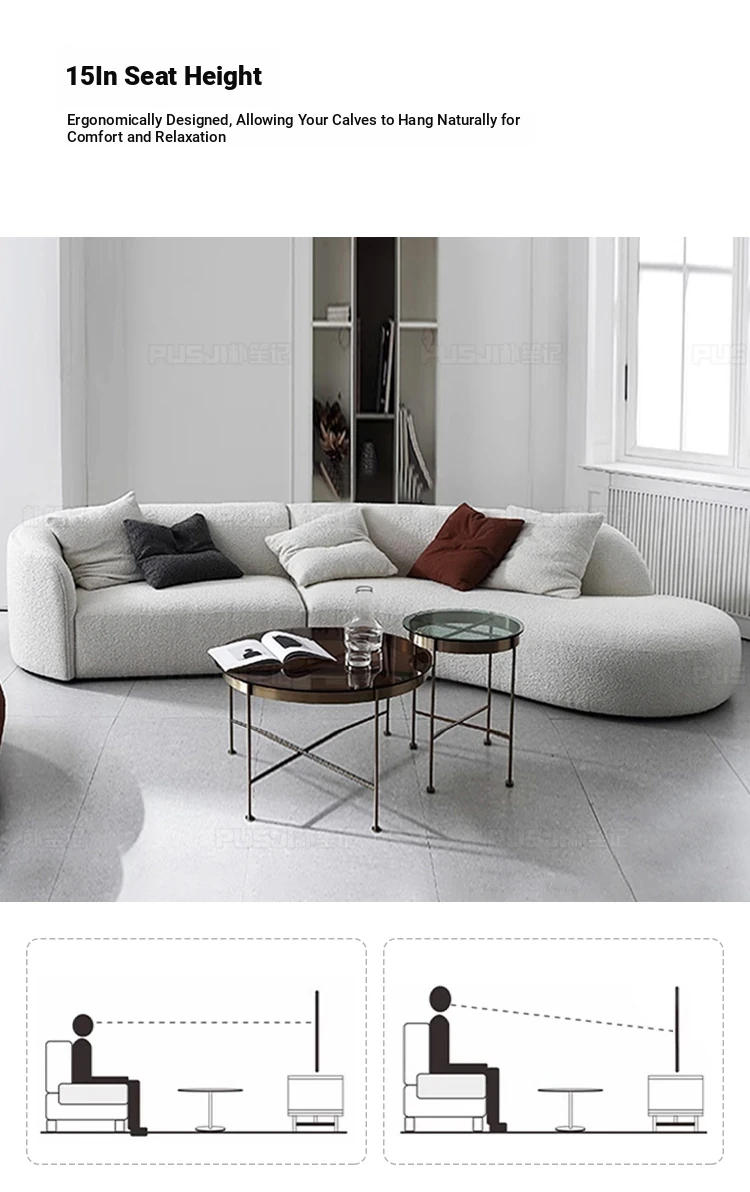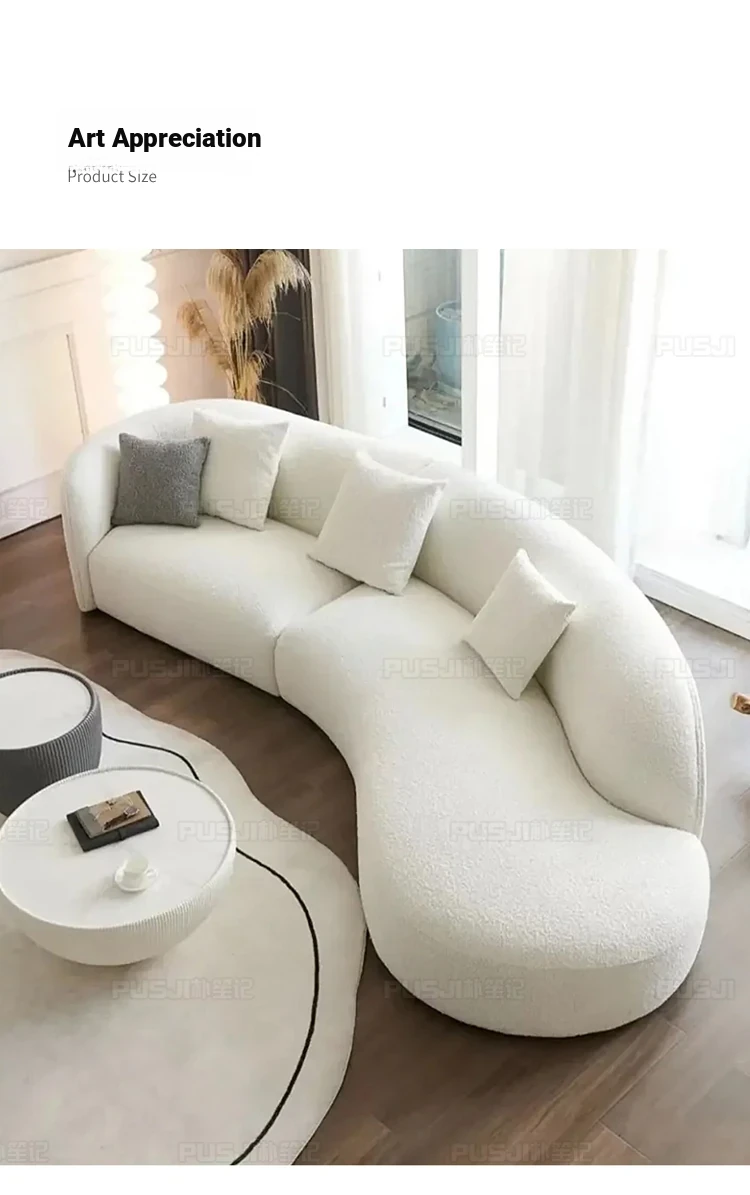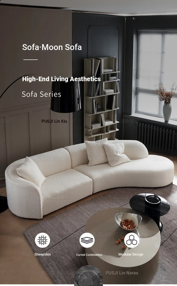 PUSHENGJI Curved Moon Sofa - Designer Hotel Lobby Reception Sofa in Unique Lamb Fleece, Perfect for Stylish Spaces and Comfort.