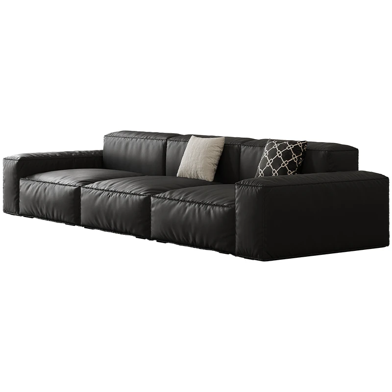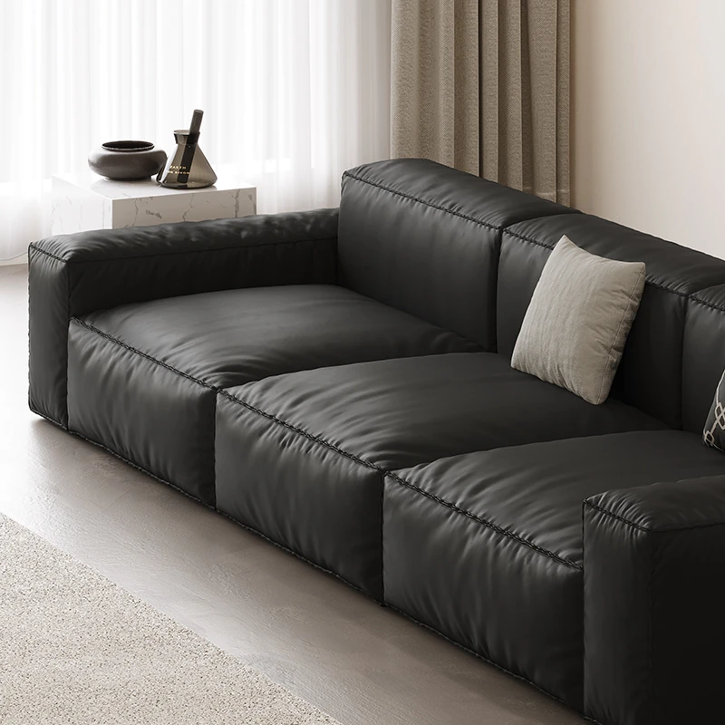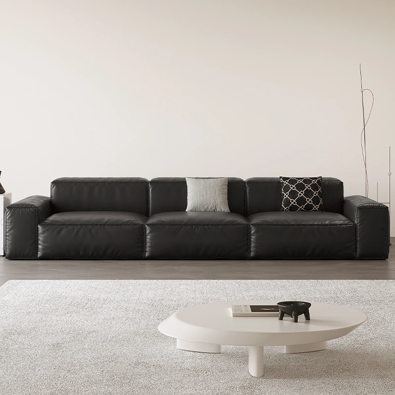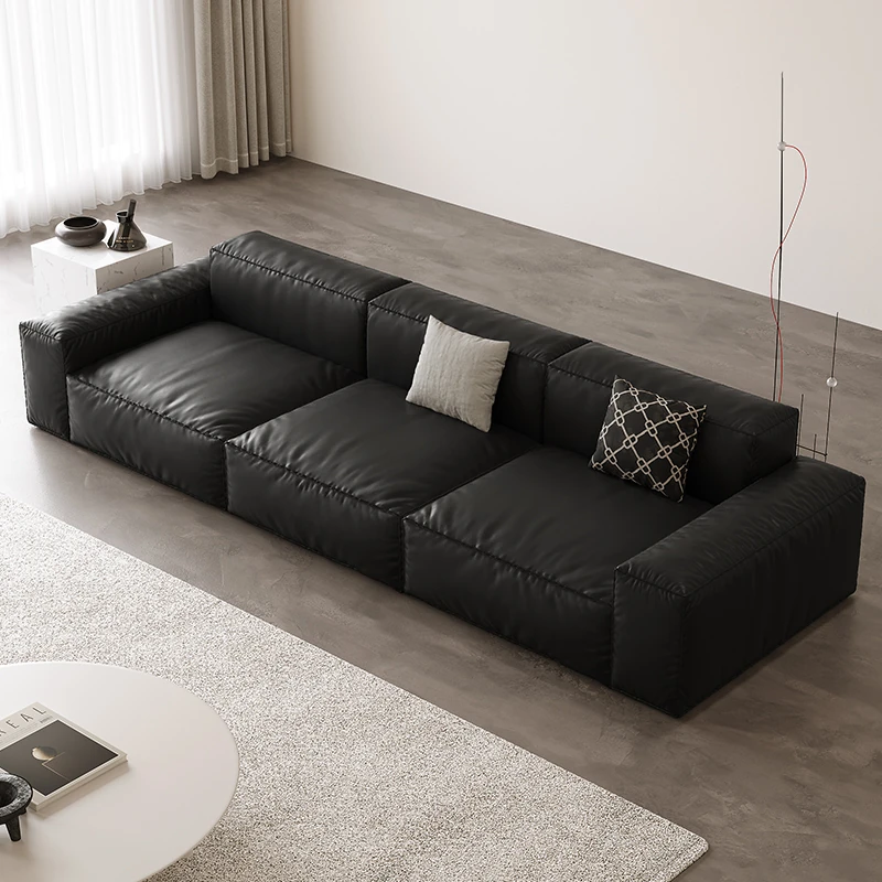 PUSHENGJI Premium Italian Minimalist Black Leather Sofa - Genuine Cowhide, Large Modular Design for Living Room, Perfect for Modern Interiors