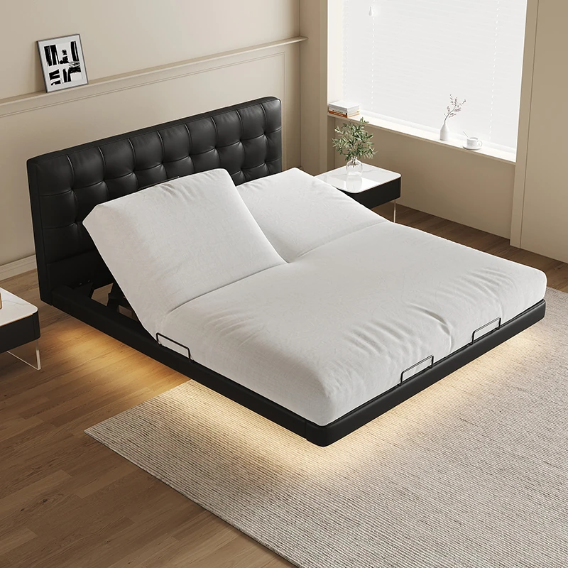 PUSHENGJI Smart Electric Waffle Bed - Italian Minimalist Floating Bed with Sensor Lights for Modern Double Master Bedroom