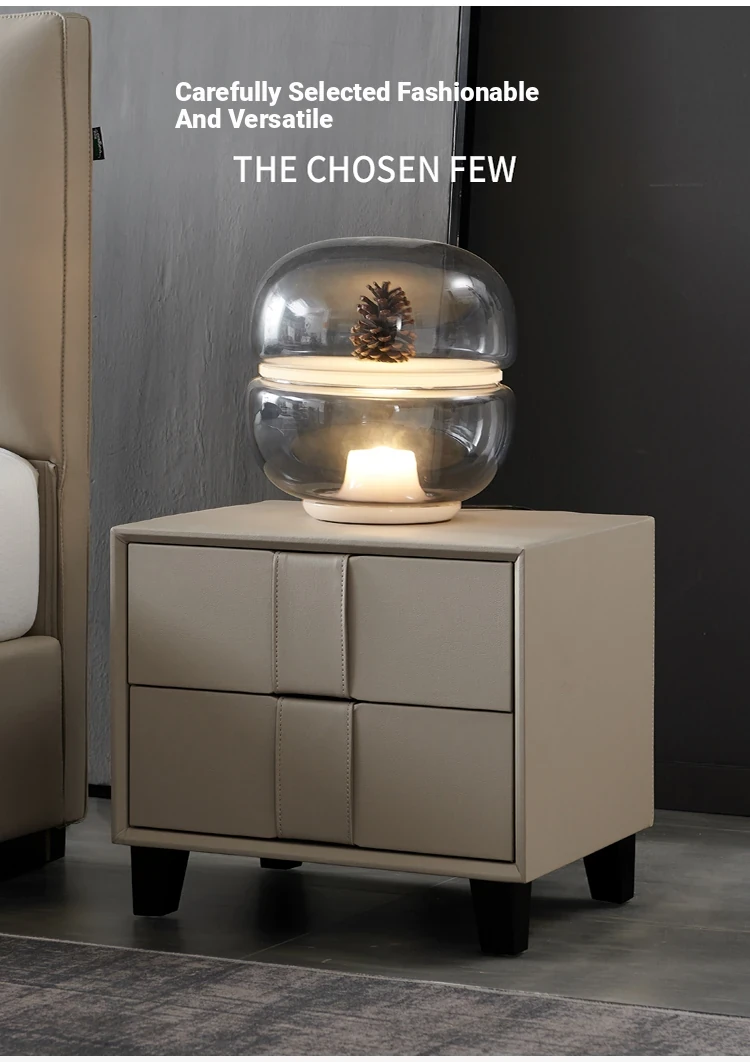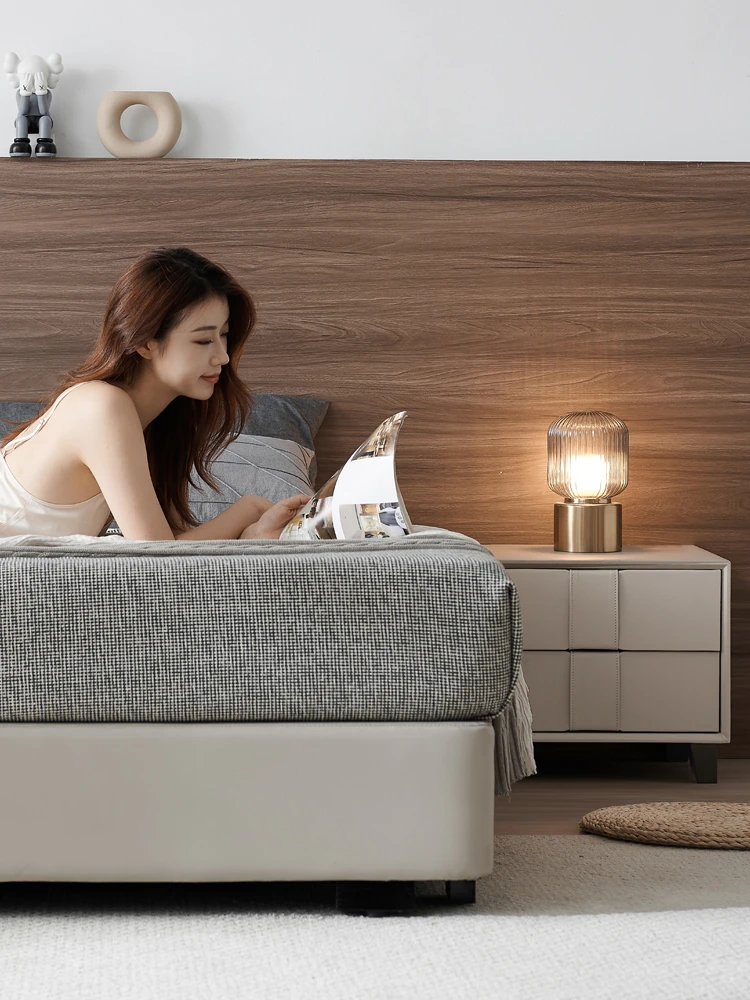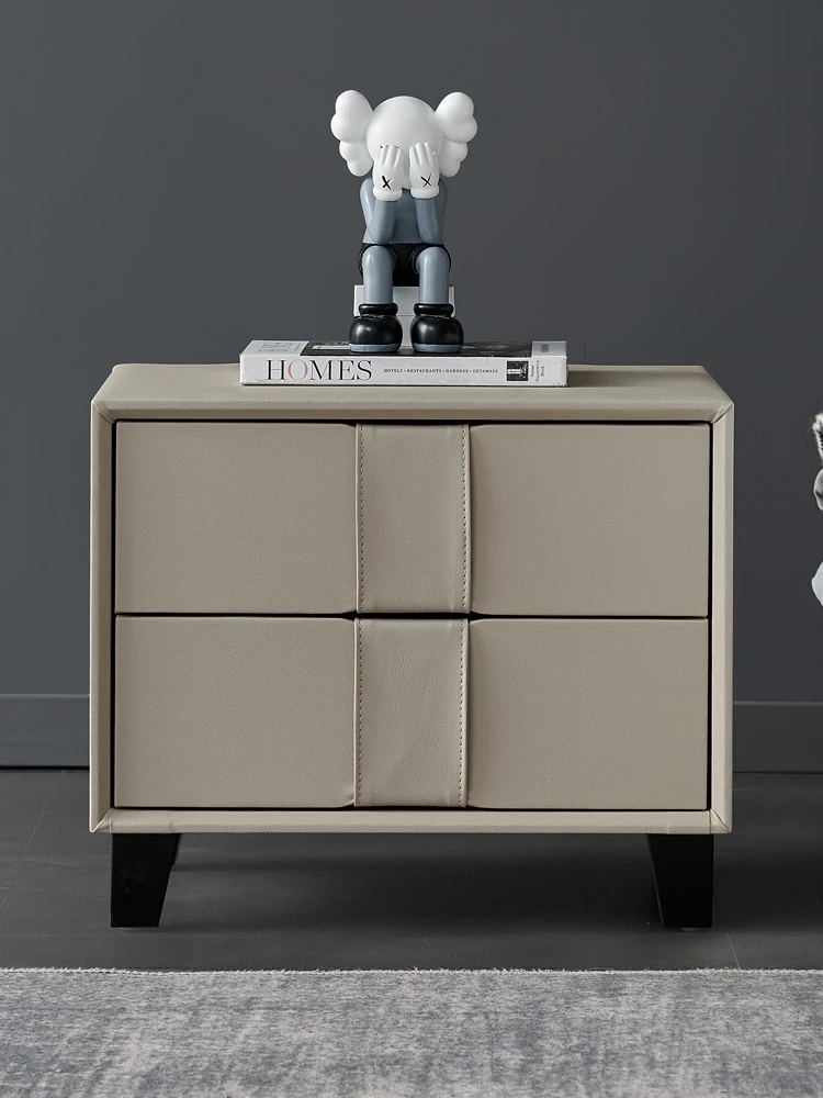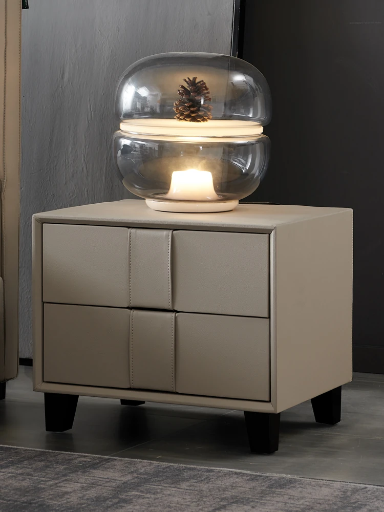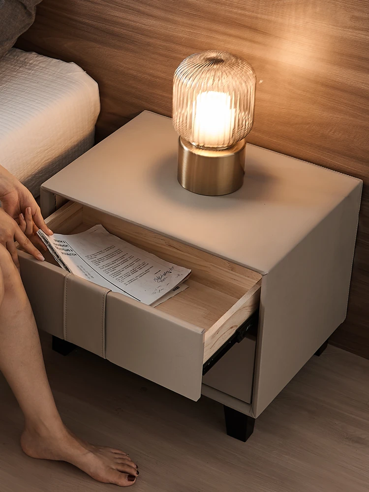 Pusheung Solid Wood Minimalist Luxury Small Bedroom Nightstand – Modern Simple Leather Storage Cabinet