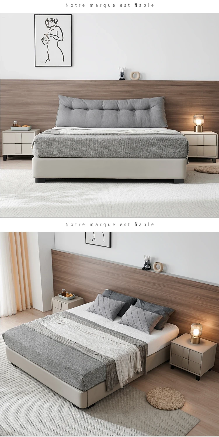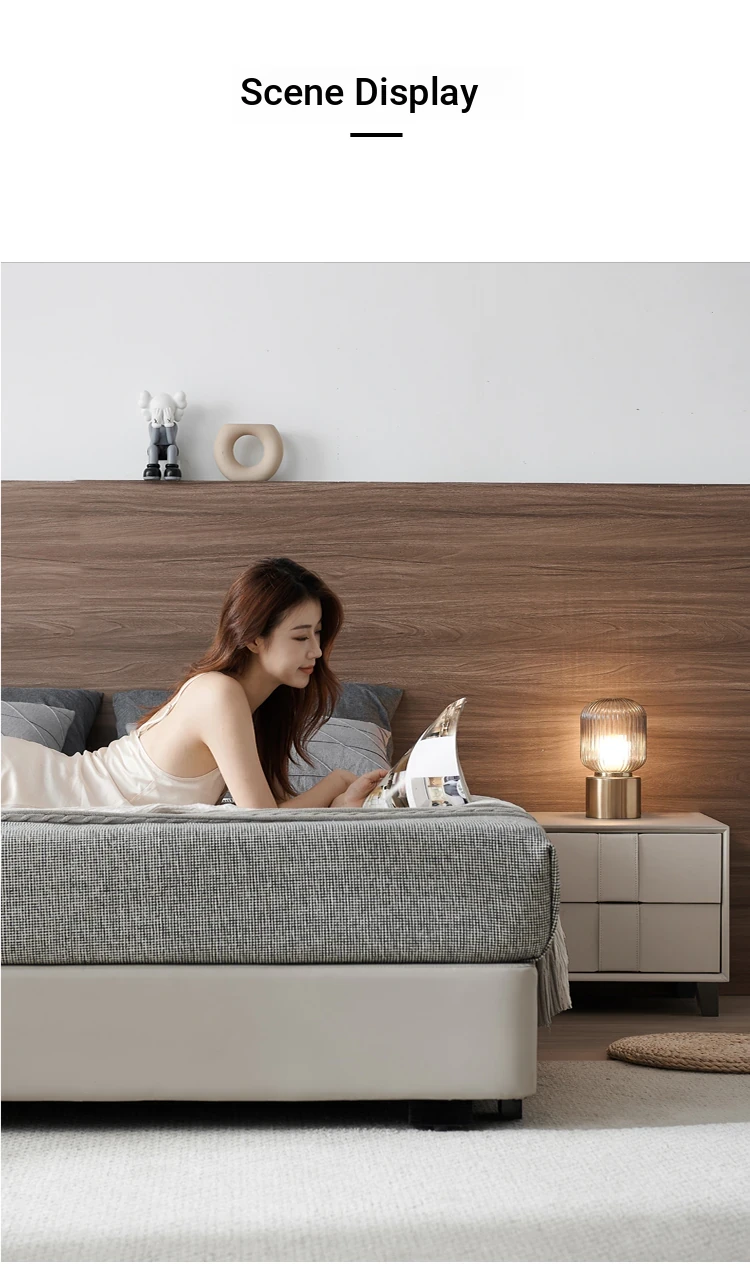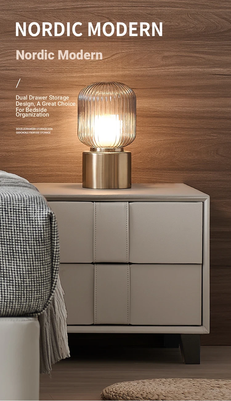 Pusheung Solid Wood Minimalist Luxury Small Bedroom Nightstand – Modern Simple Leather Storage Cabinet