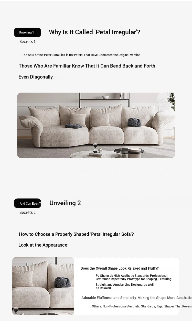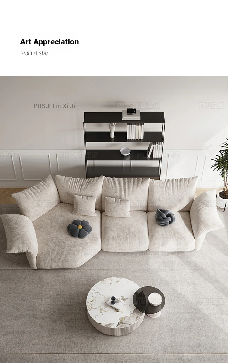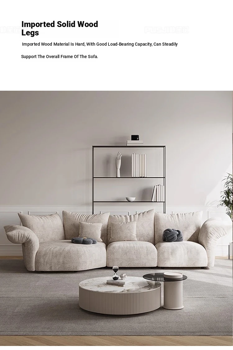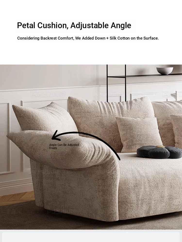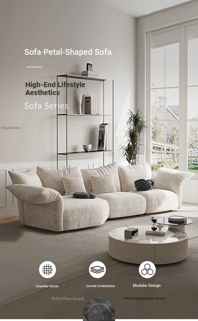 Pusheungji Petal Sofa - Minimalist Cream Beige Fabric Sofa for Villas, Unique Large Corner Design, Perfect for Modern Living Spaces