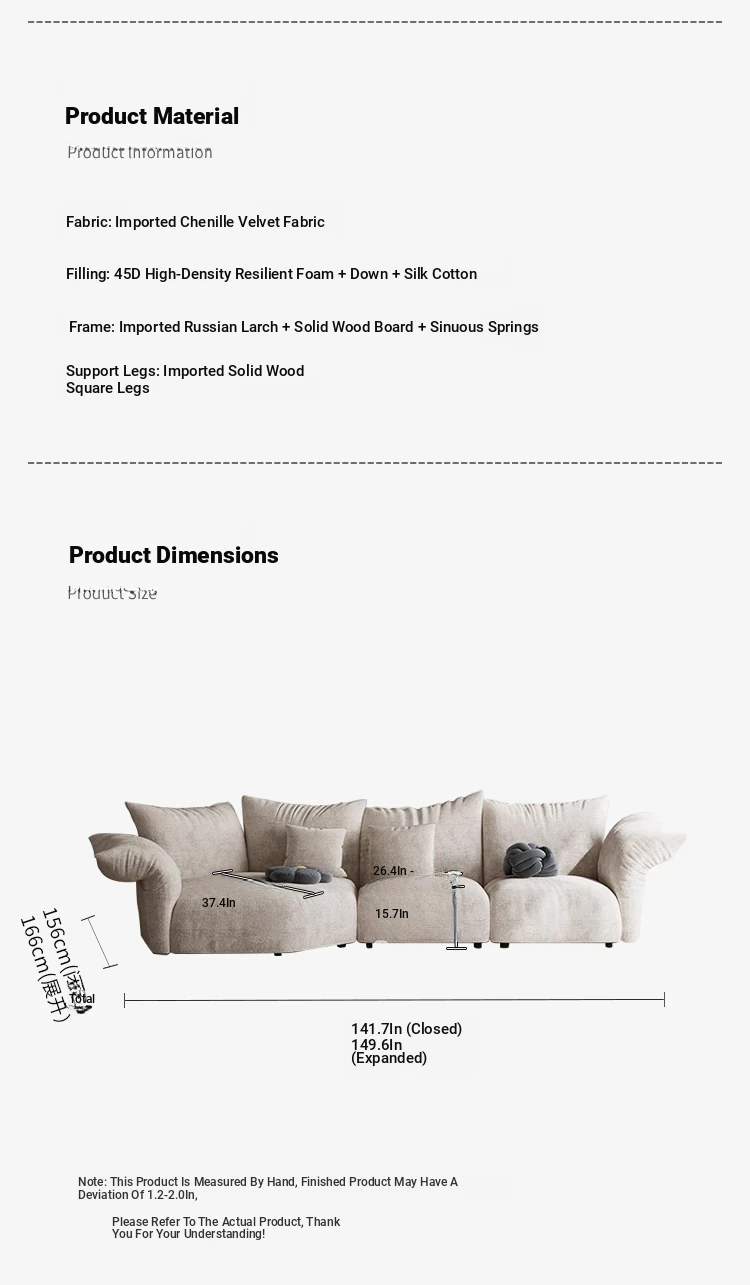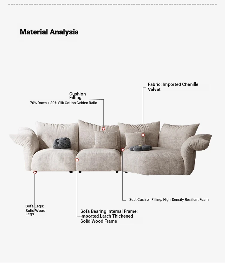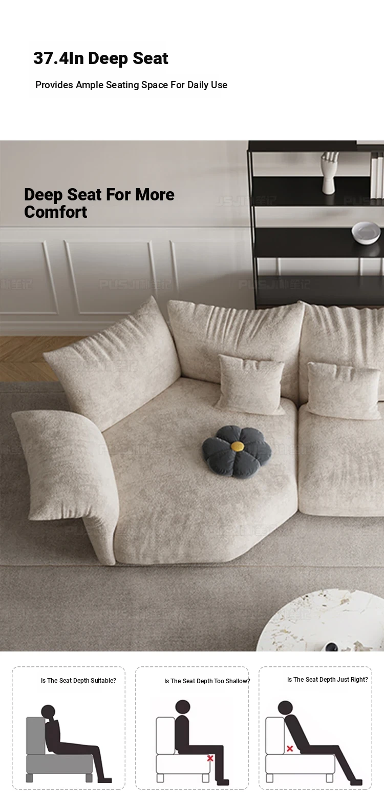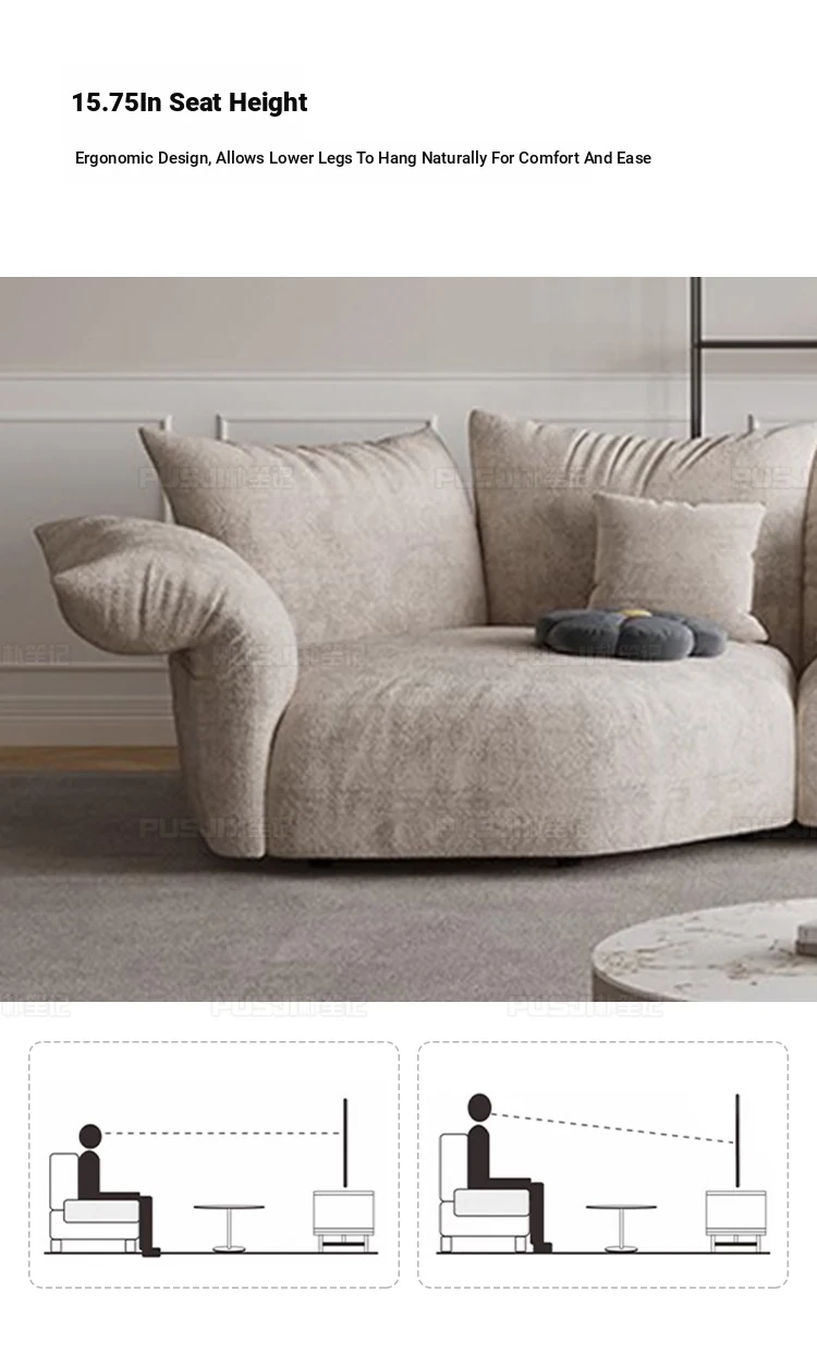 Pusheungji Petal Sofa - Minimalist Cream Beige Fabric Sofa for Villas, Unique Large Corner Design, Perfect for Modern Living Spaces