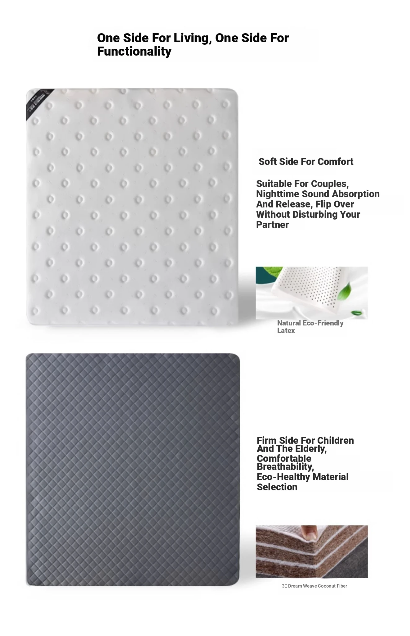 Pusongji Double-Sided Latex Mattress with Coconut Fiber Back, Independent Spring Design - Versatile Soft and Firm Mattress for Young Adults, Perfect for Hotels