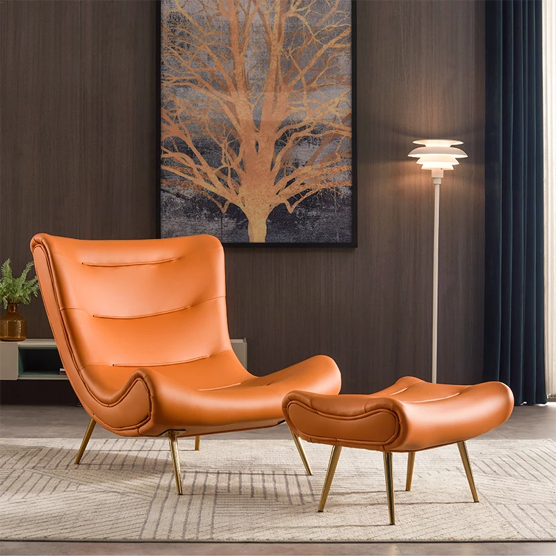 Orange Snail Chair - Lazy Sofa for One, Luxurious Nordic Style, Relaxing Tiger Chair, Premium Leather Armchair for Living Room