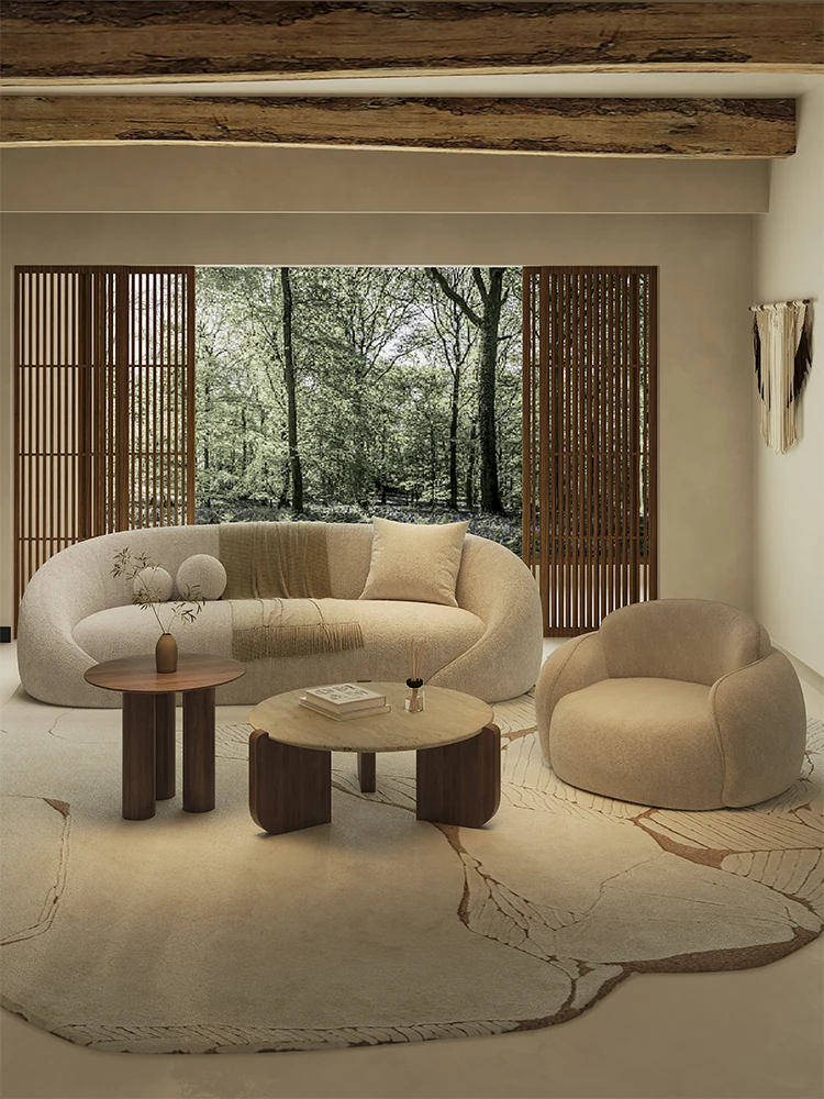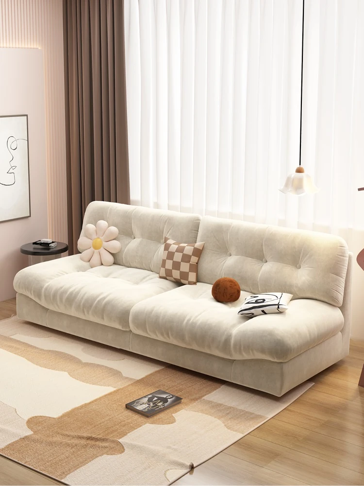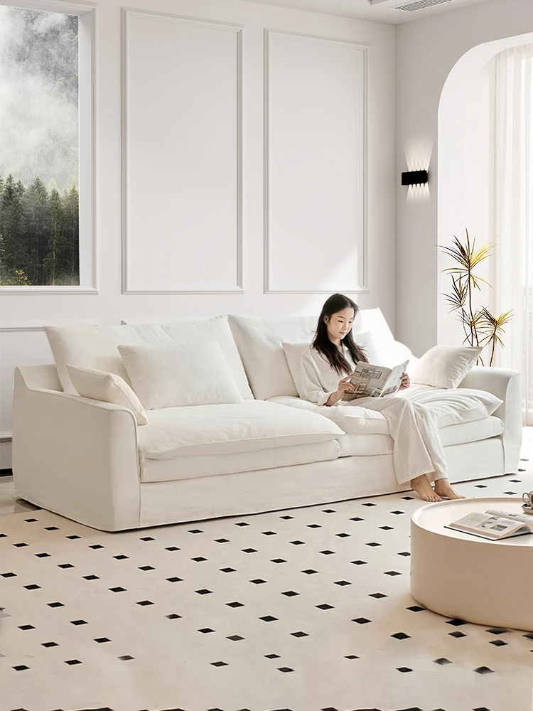 Removable French Cream Fabric Sofa - Modern Minimalist Wabi-Sabi Style Linen Couch for Living Room - Elegant and Practical Design for Comfort and Style
