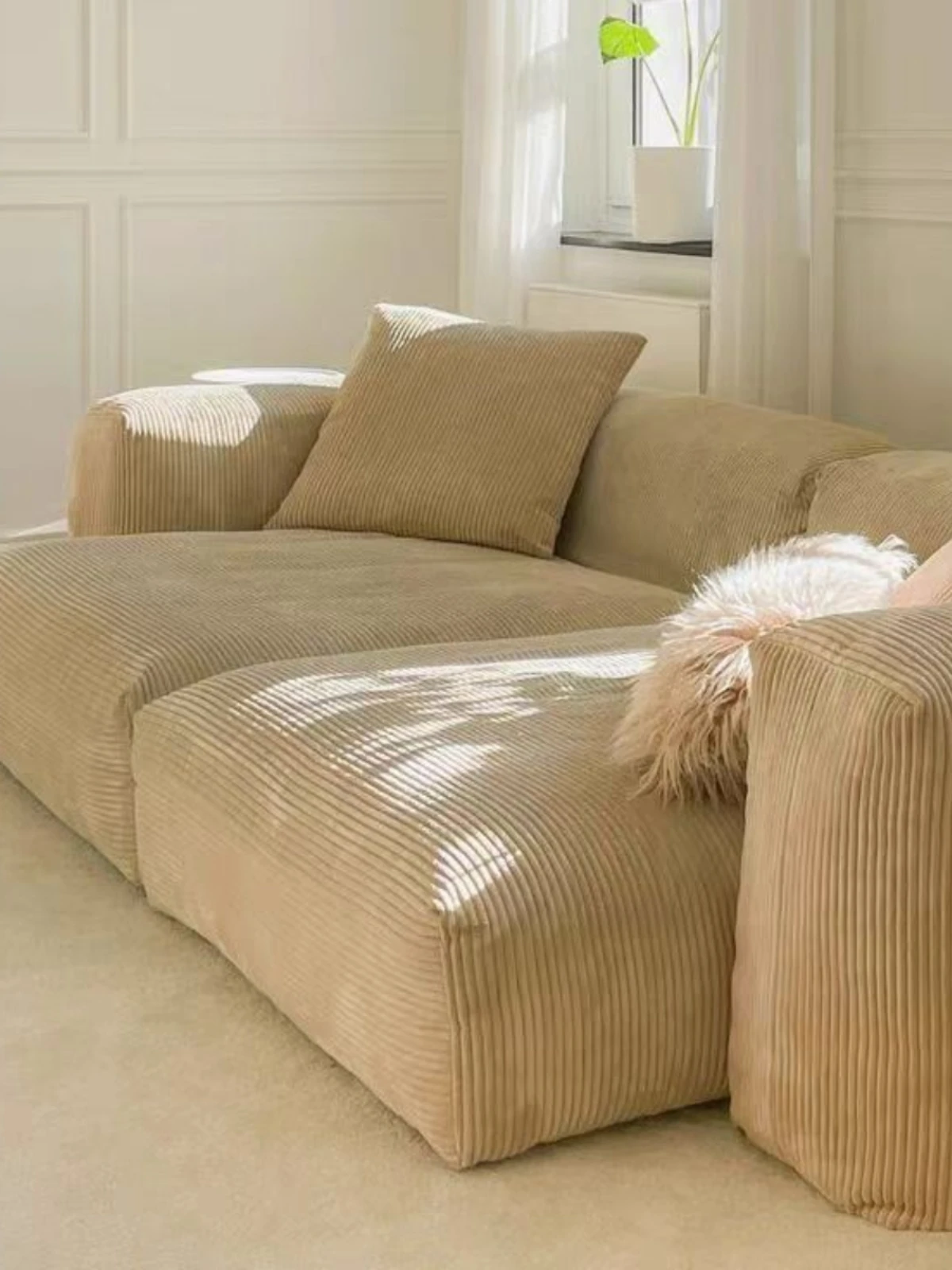 2025 New Vintage Corduroy Sofa - Wabi-Sabi Style Two-Person Cream-Colored Modular Couch for Small Living Spaces