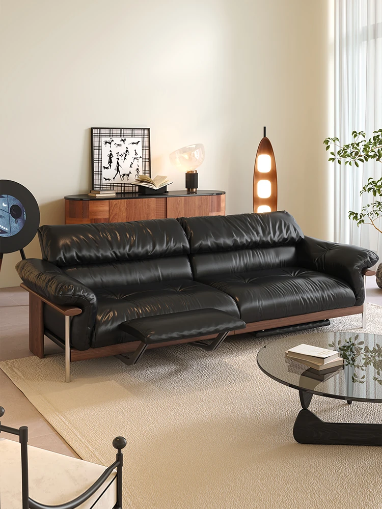 Jo Electric Recliner Sofa with Walnut Wood Base - Vintage Style Genuine Leather Living Room Furniture, Perfect for Modern Comfort and Timeless Elegance