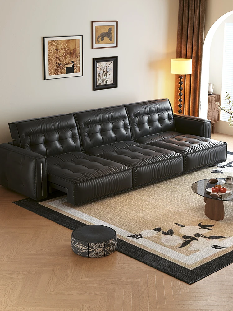 Genuine Leather Electric Multifunctional Sofa - Adjustable French Vintage Style, Wall-Free Design for Living Room, Expanding and Folding Sofa Bed