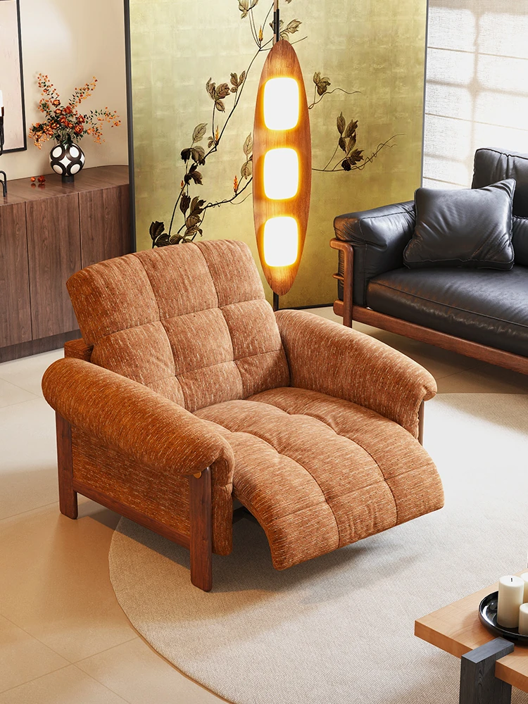 Adjustable Antique-Style Sofa Chair in Pure North American Black Walnut - Versatile Fabric Sofa for a Cozy Living Space