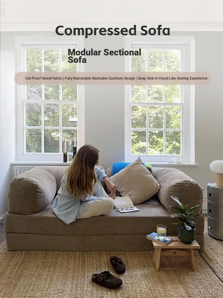 Modern Minimalist Melard Corduroy Sofa Bed - Versatile Foldable Design for Small Spaces, Perfect for Living Rooms and Cozy Homes