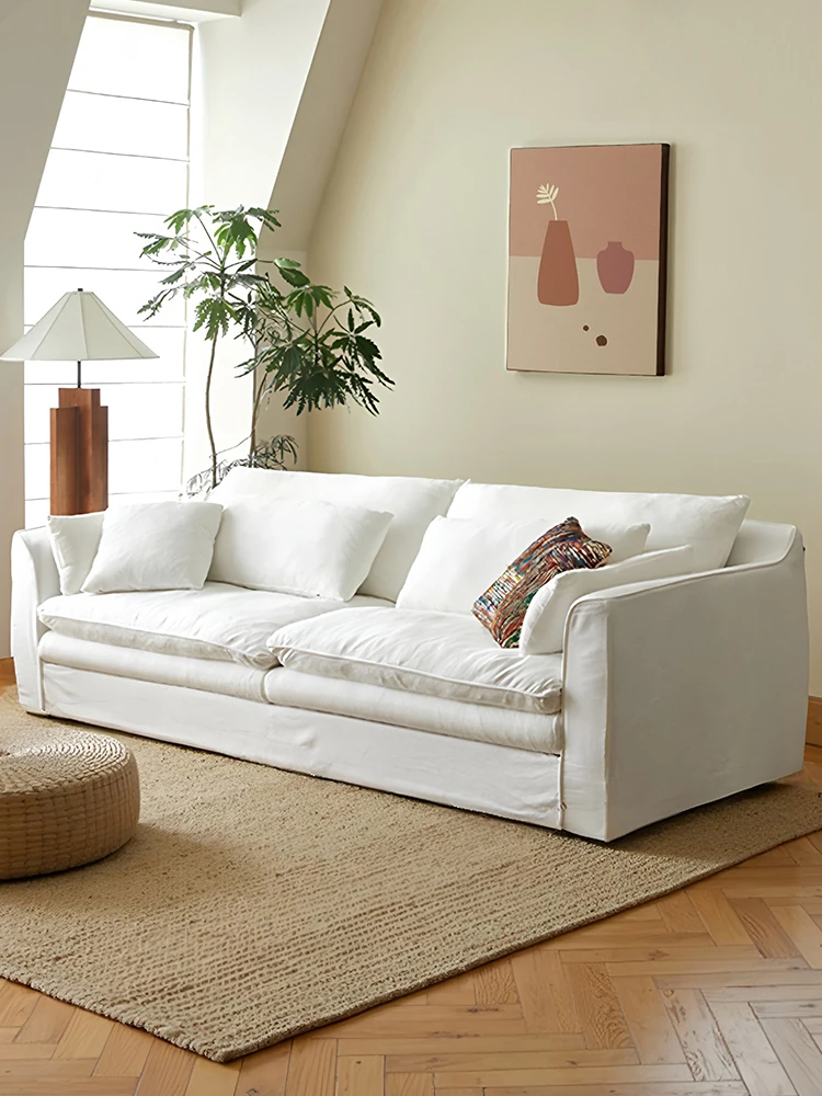 Wabi-Sabi Style Embrace Sofa - Removable Linen Fabric, Ideal for Small Living Rooms, Vintage-Inspired Three-Seater, Perfect for Cozy Spaces - XL Size