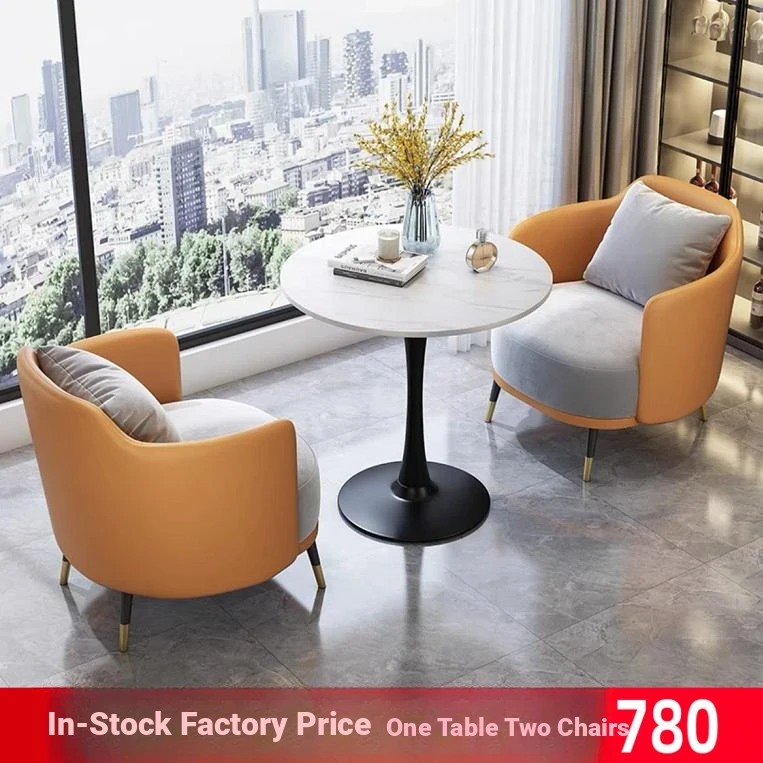Xinjiang Free Shipping Real Estate Sales Office Negotiation Table and Chair Set - Trendy Leisure Reception Office Sofa with Coffee Table and Round Negotiation Table Combo