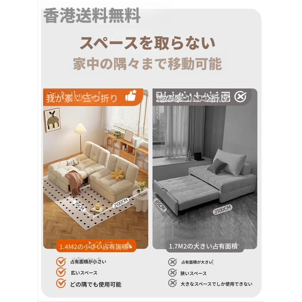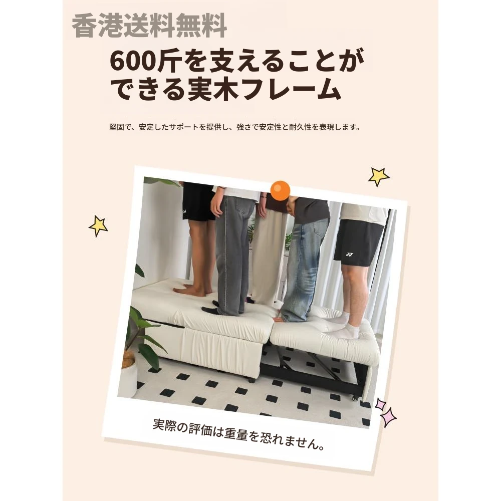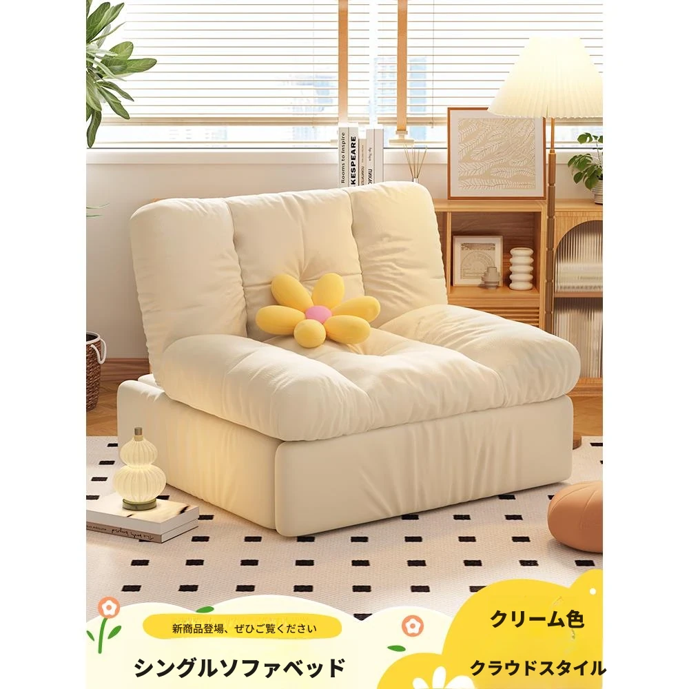 香港送料無料!2024年新作ソファベッド - シングル折りたたみ式、コンパクトな小型住宅に最適!伸縮自在、可愛い雲のようなクリーム色でお部屋を華やかに演出。快適な眠りとスペースを有効活用!