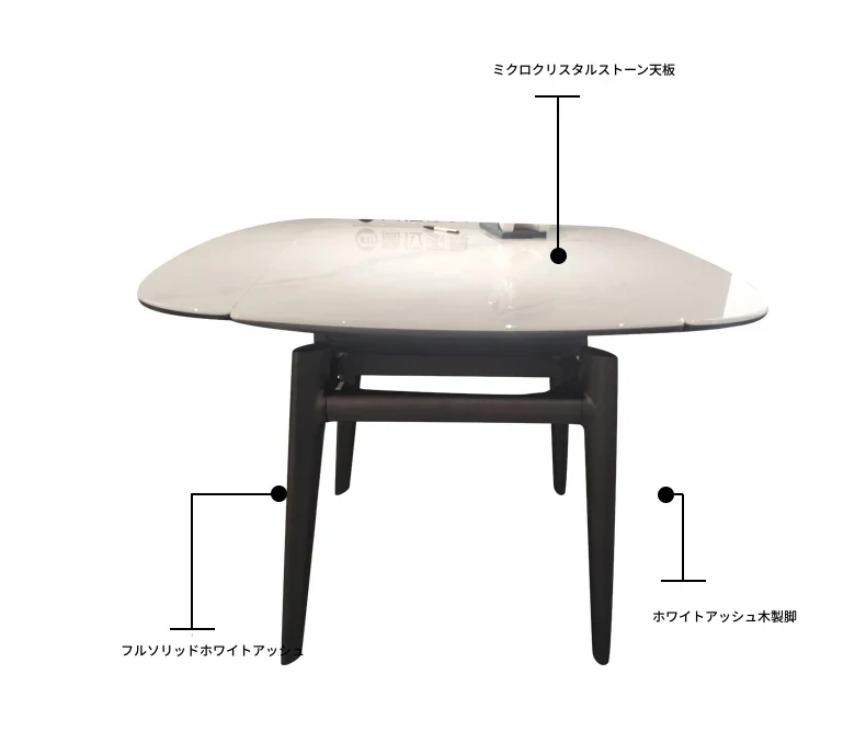 2025年のモダンミニマリスト デザイン!ホワイトアッシュ材を使用した伸縮可能な折りたたみ式マイクロクリスタル石テーブルとチェアセット。家族の食事にぴったりな四角形テーブルで、スペースを有効活用できます!