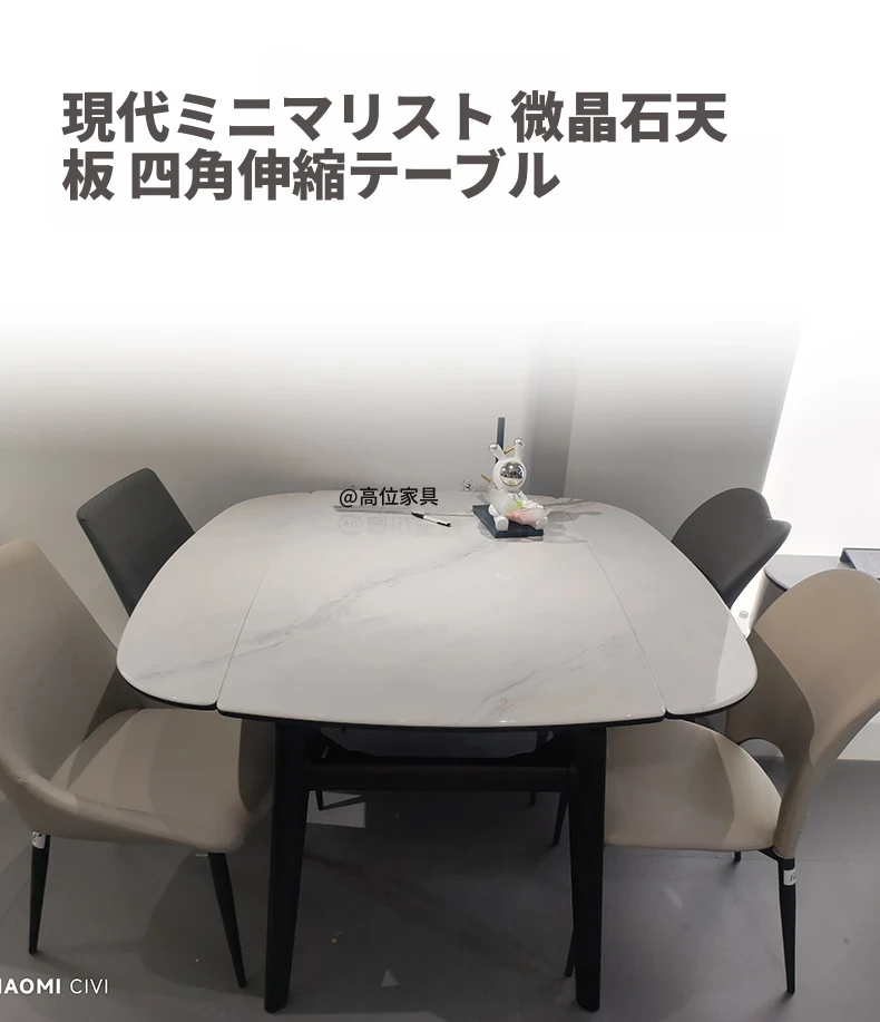 【新疆送料無料】光沢ある岩板製ダイニングテーブル&チェアセット!伸縮&折りたたみ可能、モダンでシンプルなデザイン。狭いお部屋にもぴったりな軽やかな贅沢感をお楽しみください!