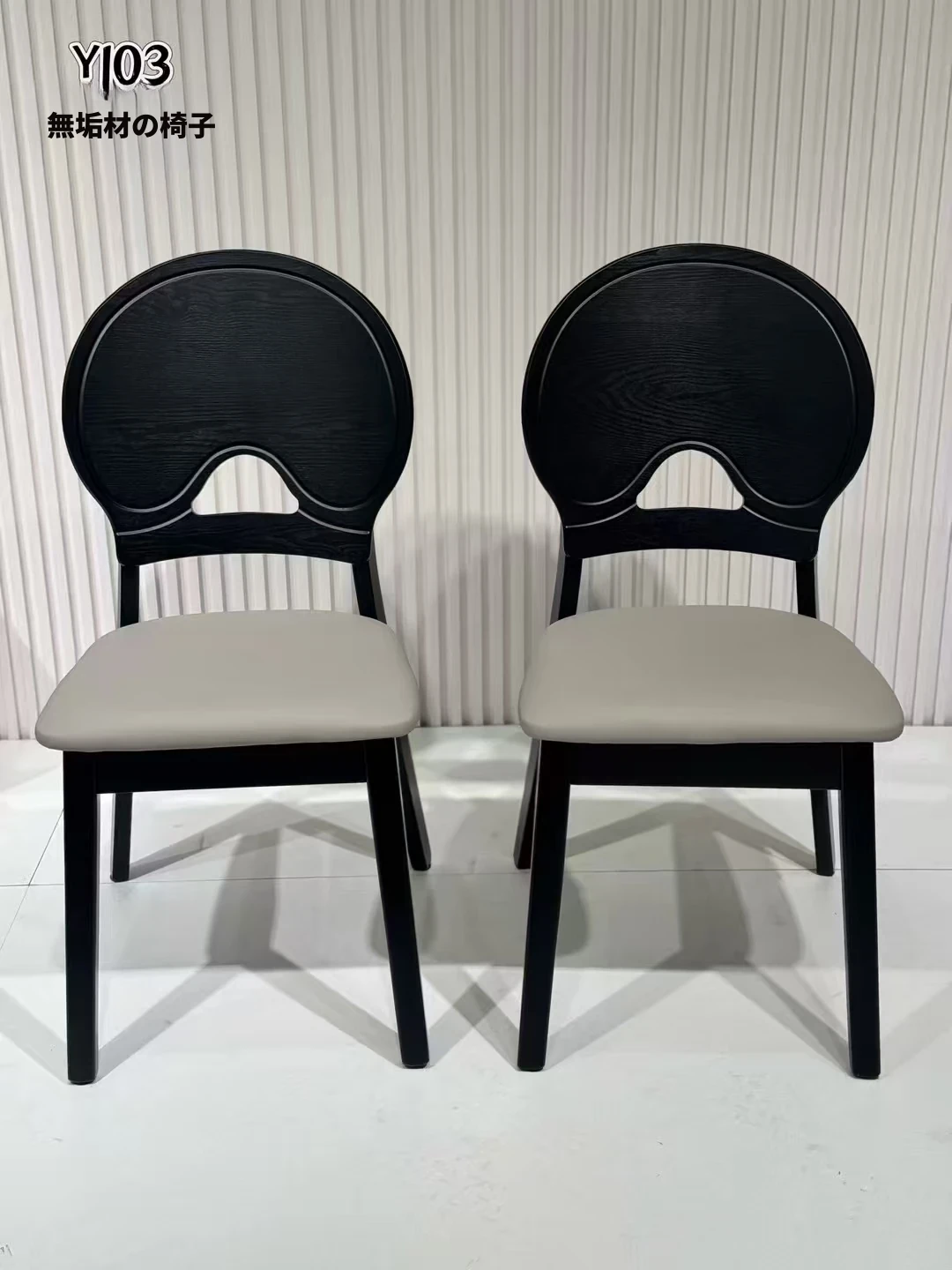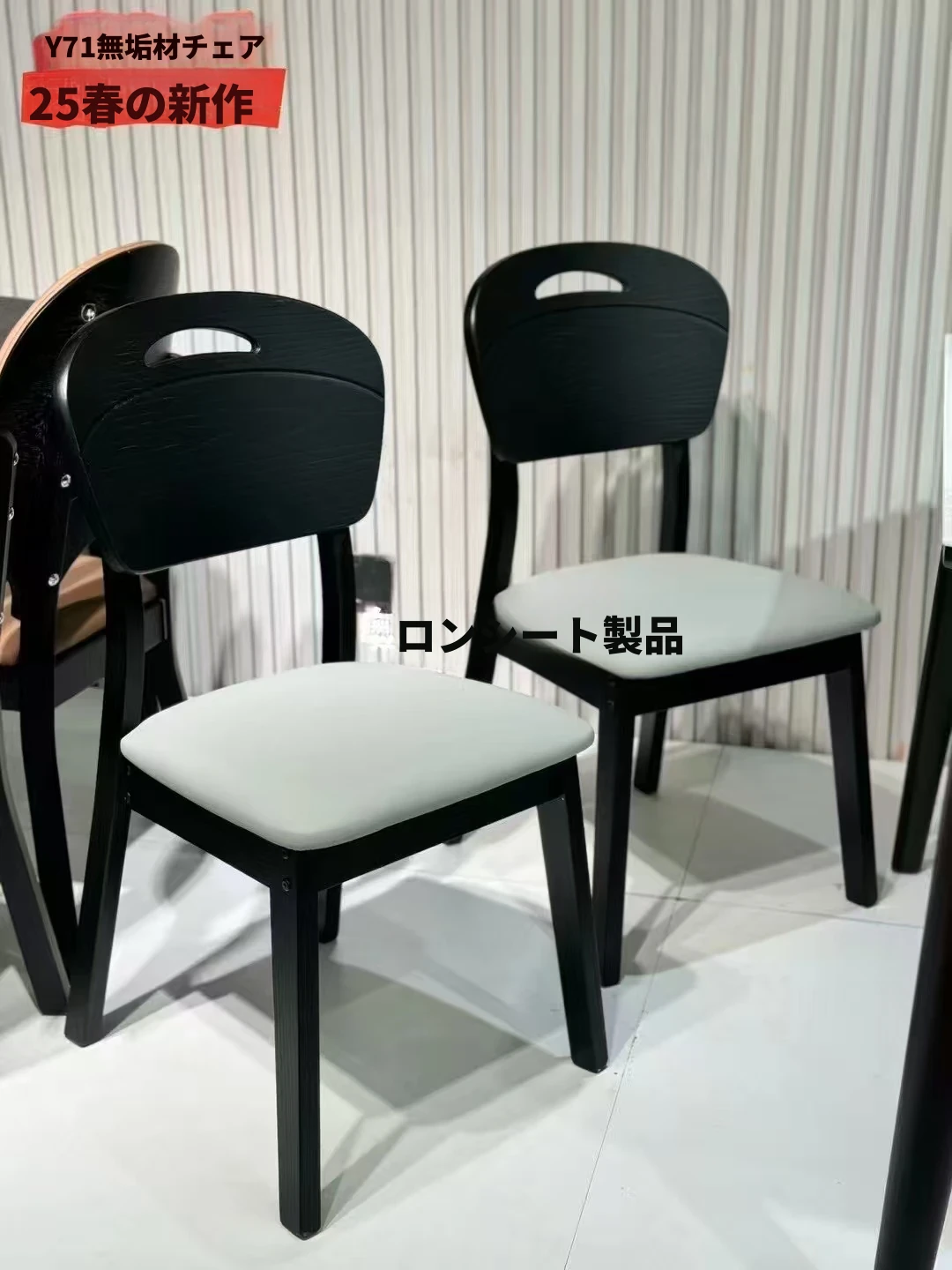 ミクロクリスタルストーン光沢ホワイト【一テーブル六椅子】無垢材チェア