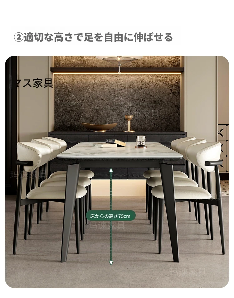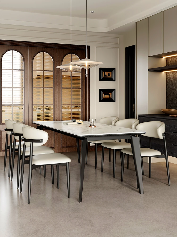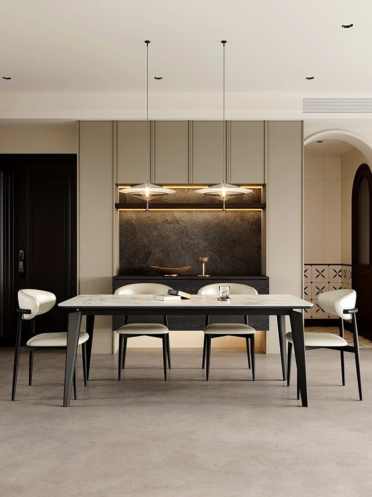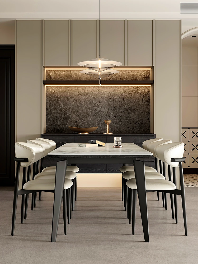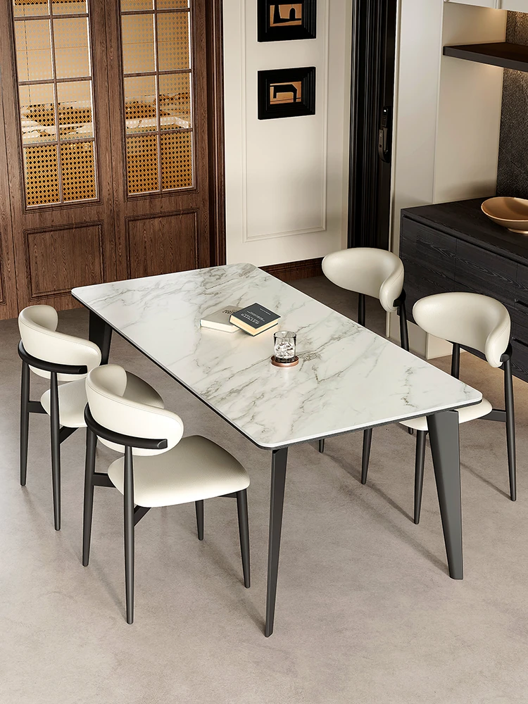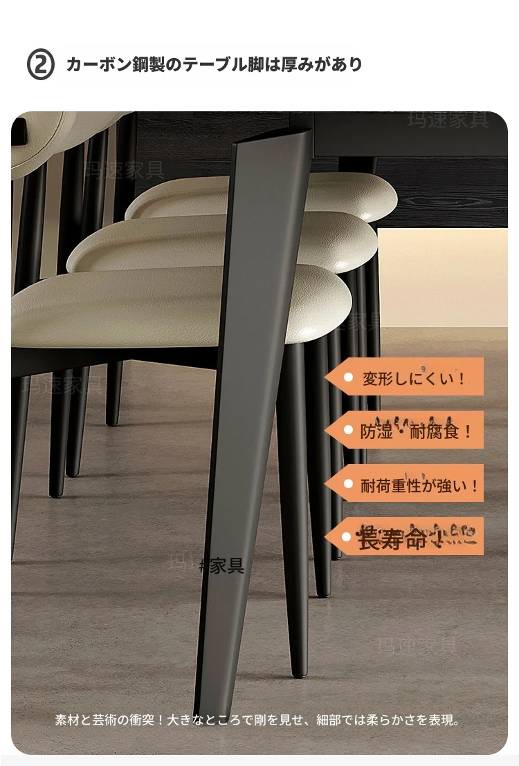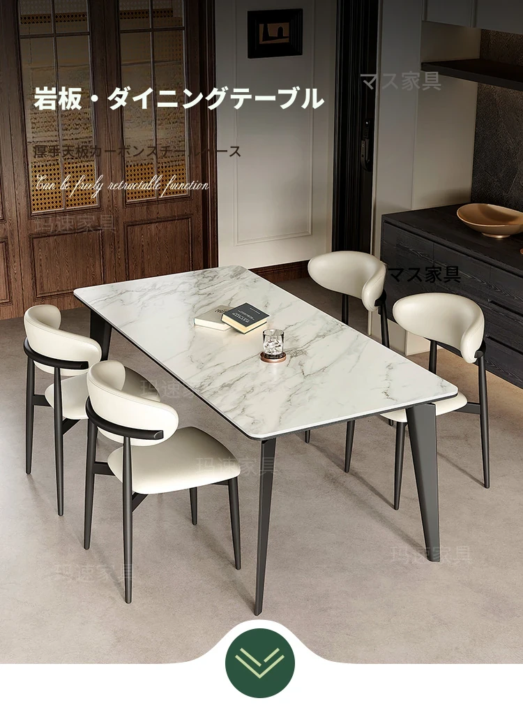 2025年新作!イタリアンスタイルのライトラグジュアリーな岩板ダイニングテーブル&チェアセット。モダンでシンプル、小さな家でも使える長方形デザイン。食卓を華やかに演出します!