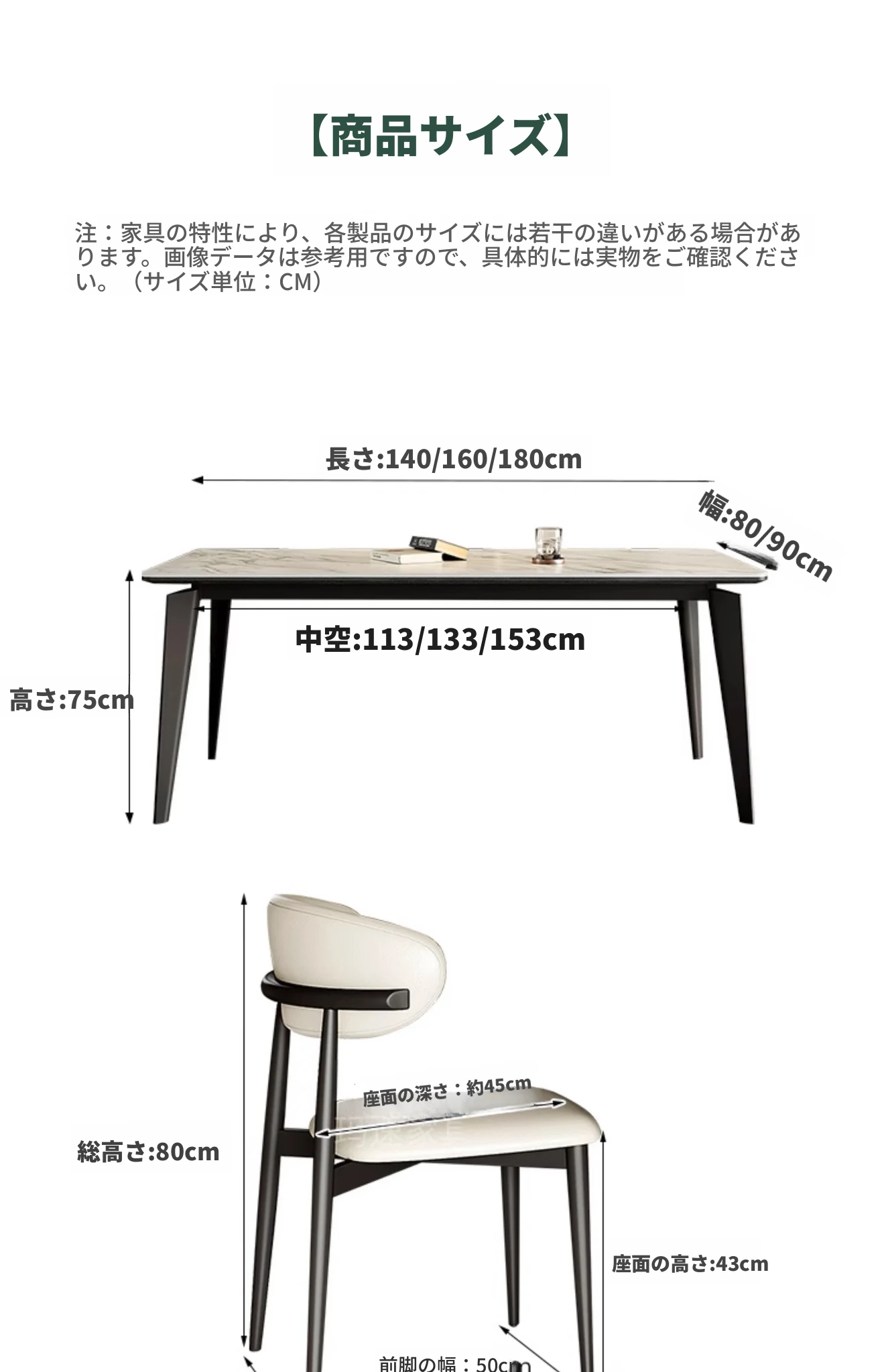 【一流ブランド/全底板】12mm岩板ダイニングテーブル+4椅子