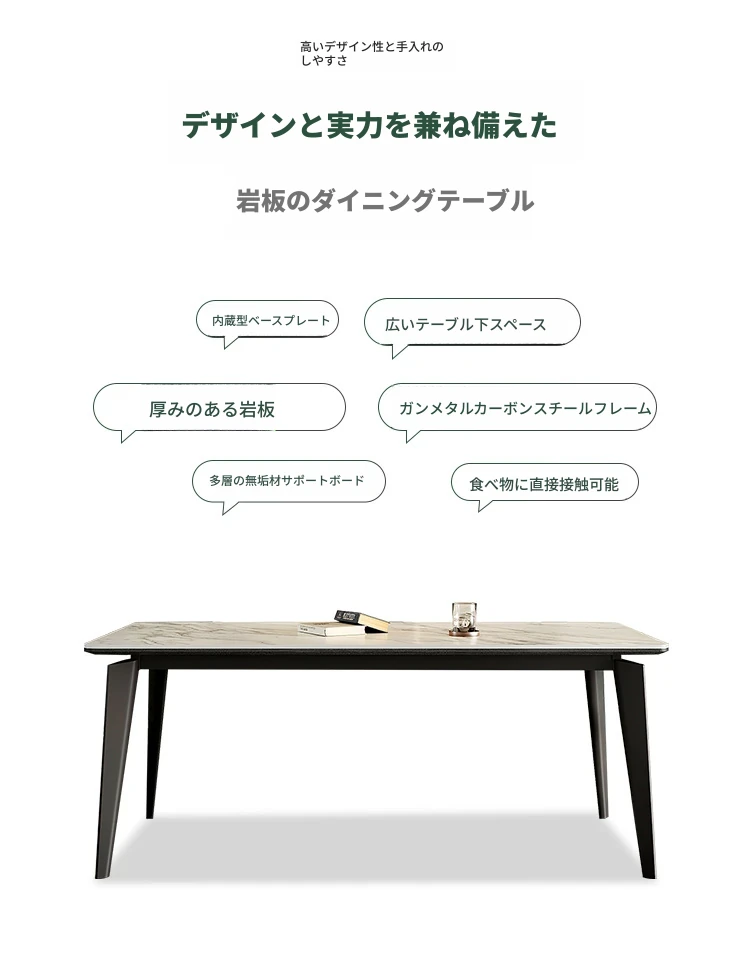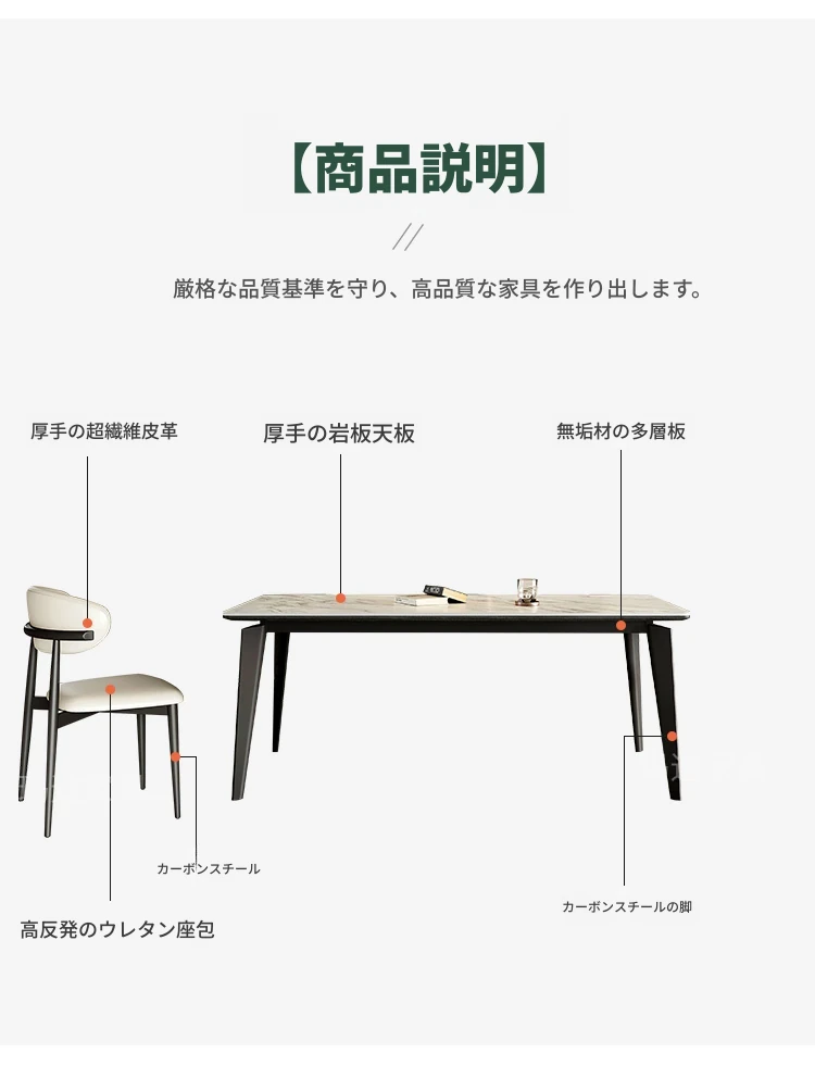 【一流ブランド/全底板】12mm岩板ダイニングテーブル+6椅子