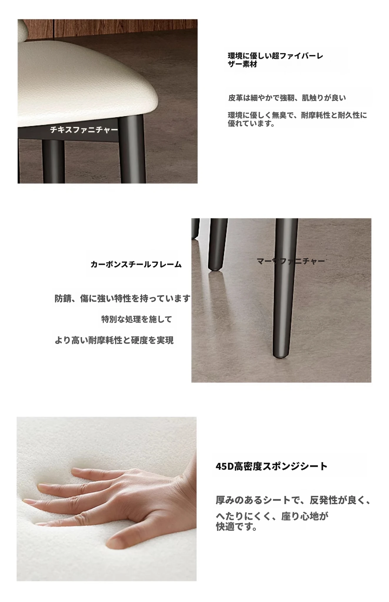 イタリアンスタイルの天然木クリーム風仕上げの無垢岩板ダイニングテーブル&チェアセット!現代的でシンプルなデザイン、軽やかなラグジュアリー感。狭いお部屋でもぴったりな食事用テーブルです!