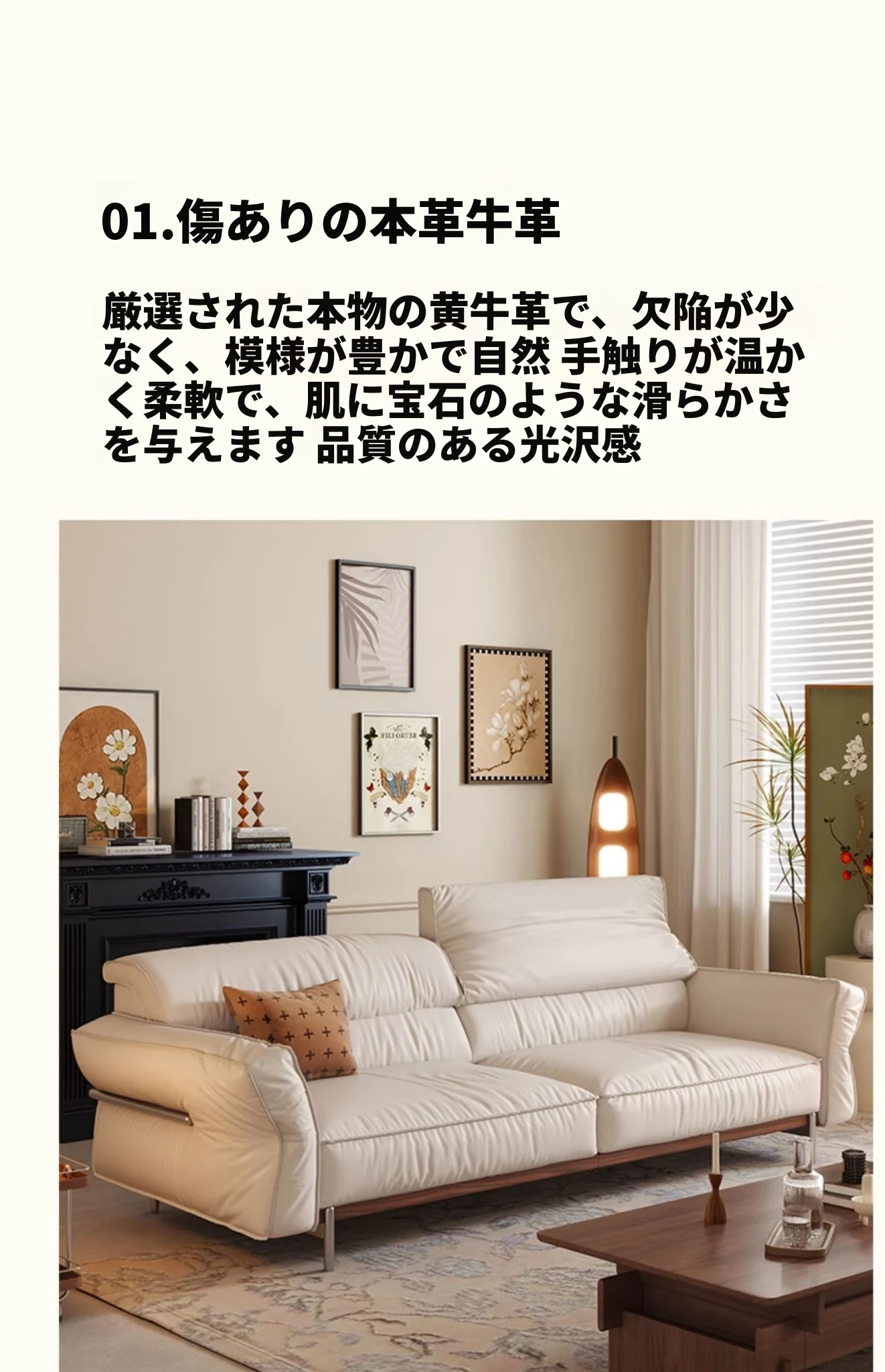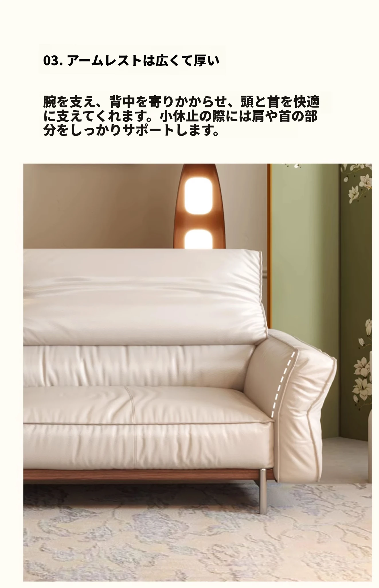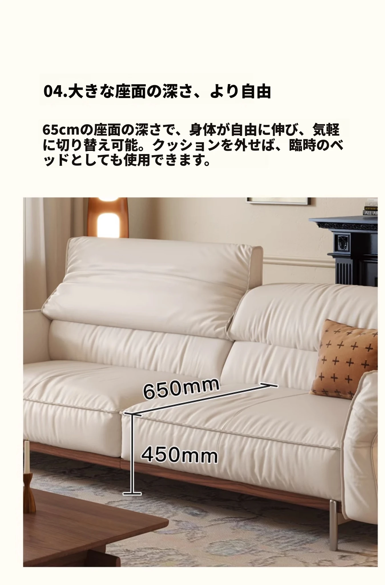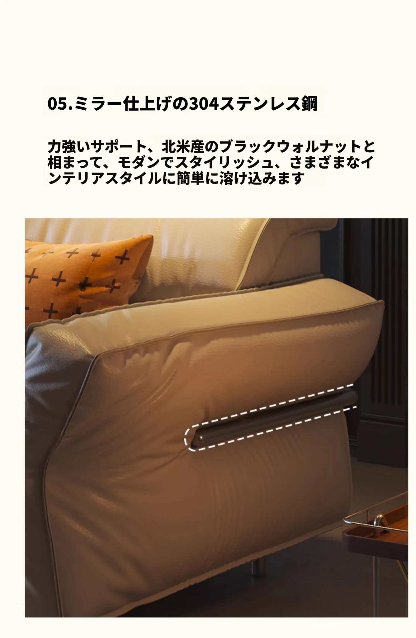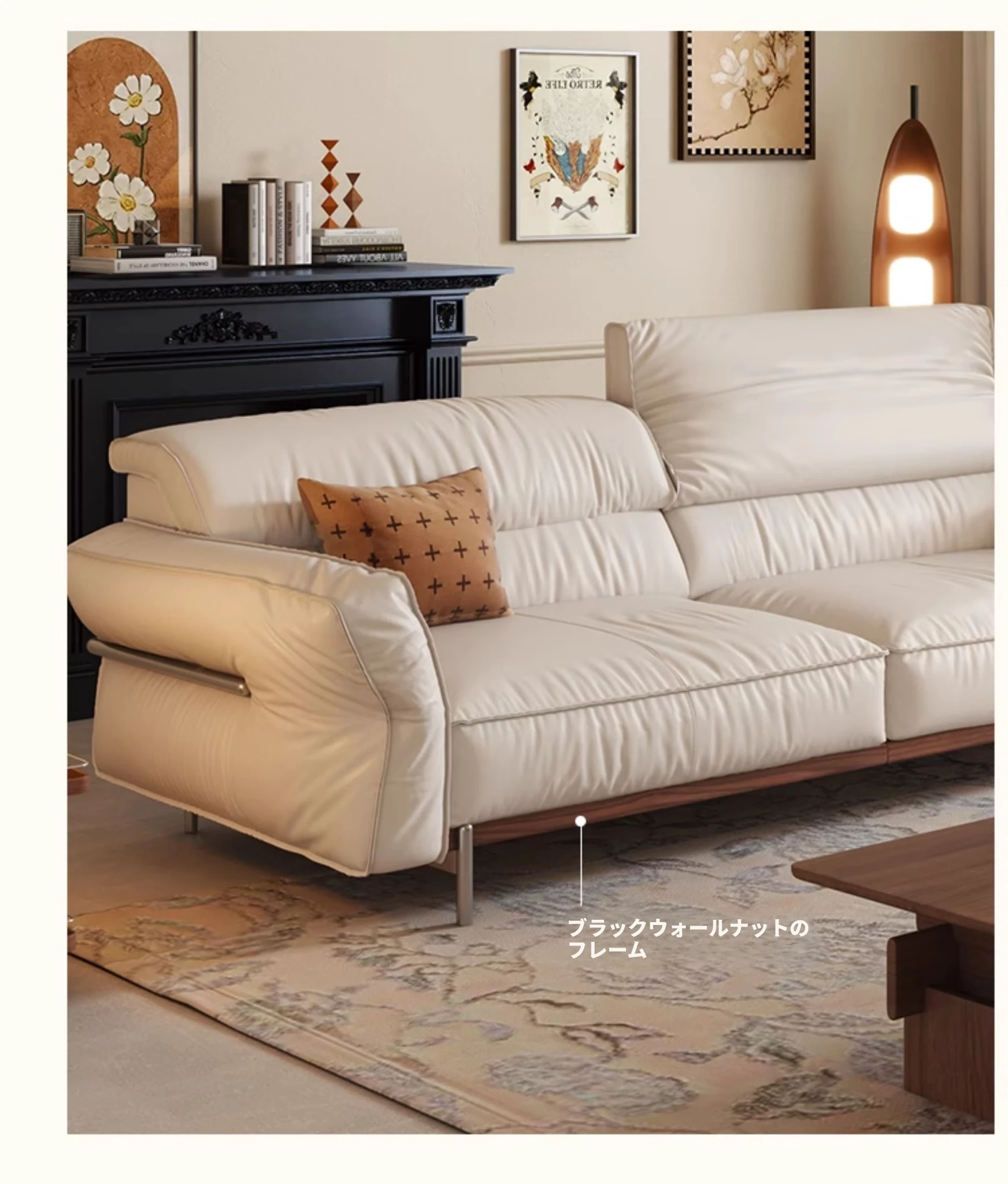 {マックスソファ} 北米ブラックウォールナット/2.5メートル フレンチホワイト - 繊細なスリップテクスチャーの第一層牛革{接触面}.