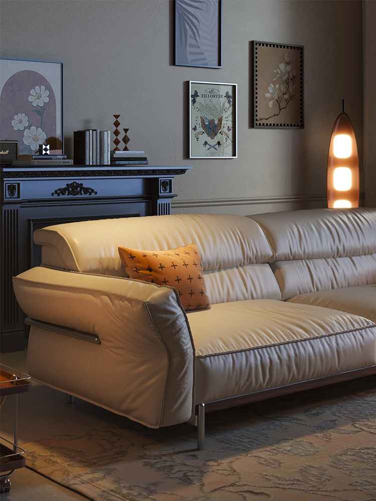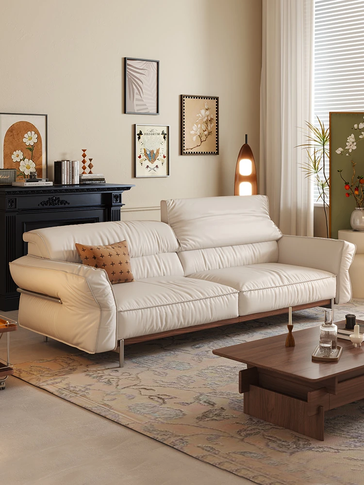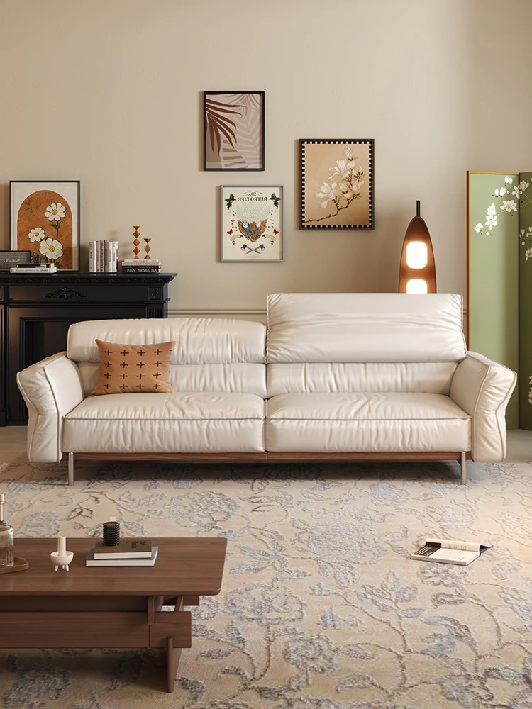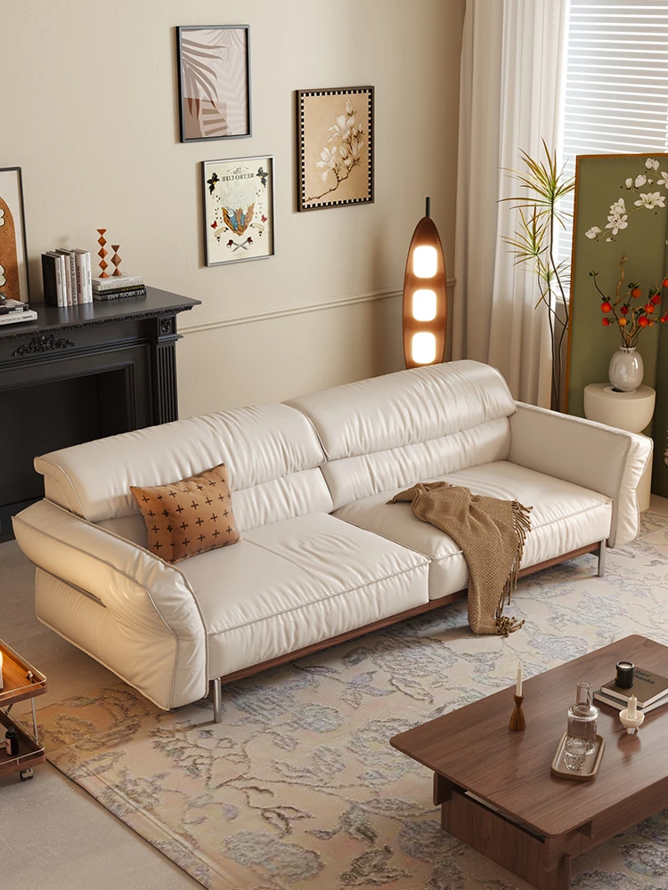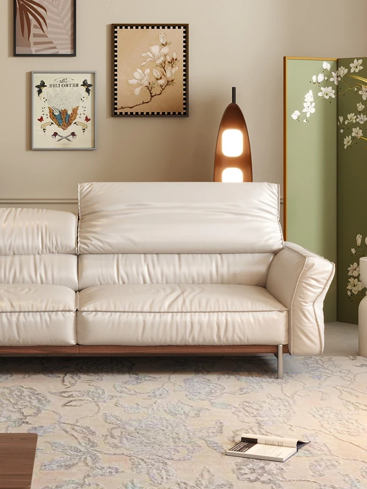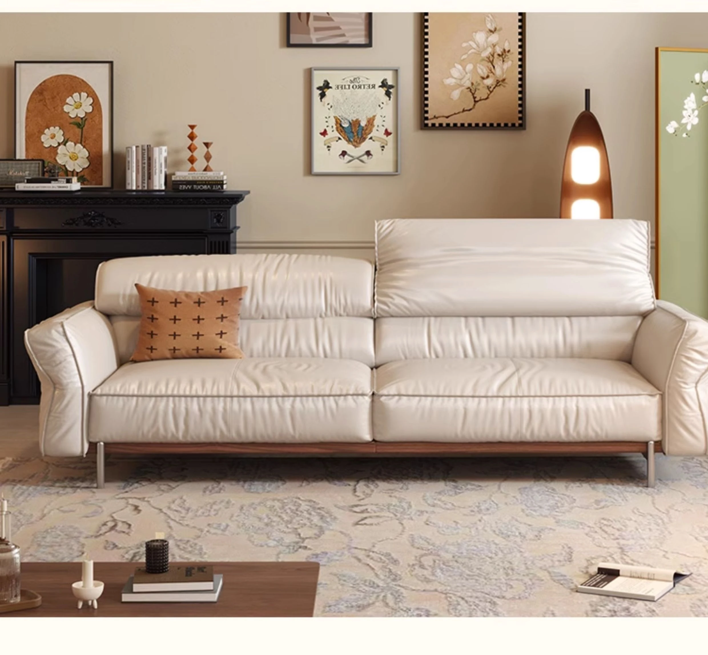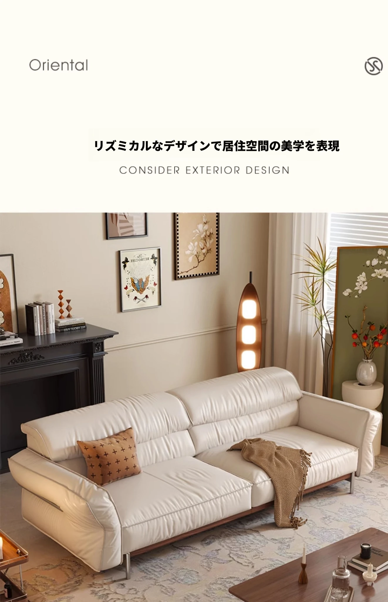 {マックスソファ} 北米ブラックウォールナット/2.5メートル フレンチホワイト - 繊細なスリップテクスチャーの第一層牛革{接触面}.