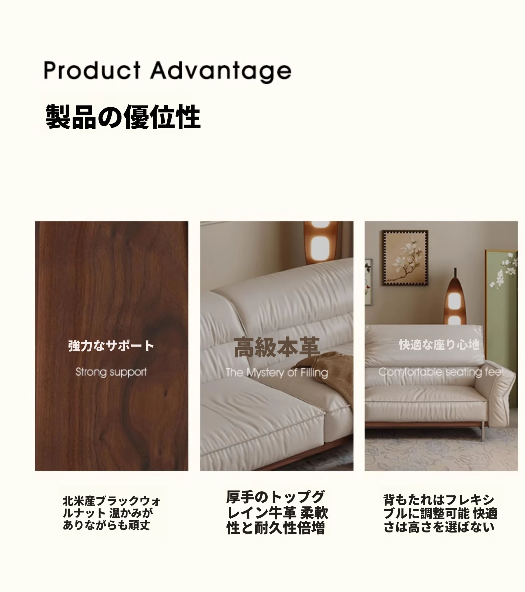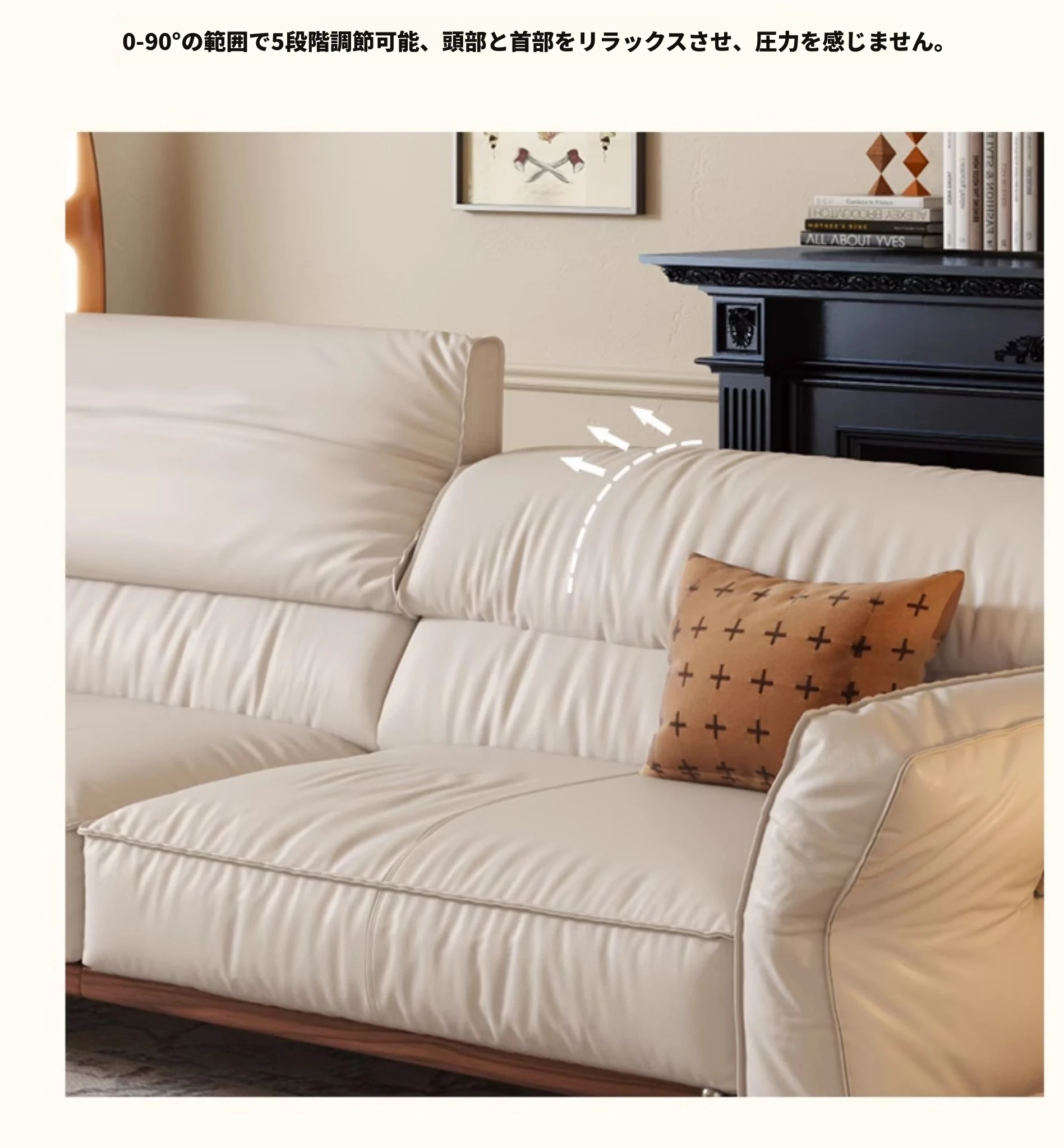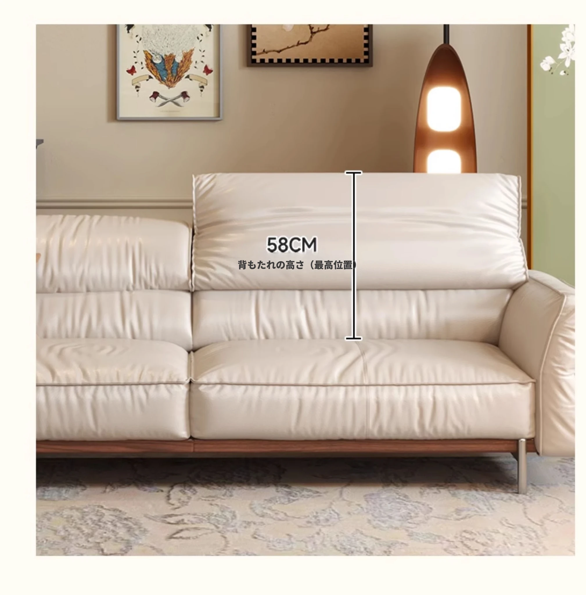 {マックスソファ} 北米ブラックウォールナット/1.9メートル フレンチホワイト - 繊細なスリップテクスチャーの第一層牛革{接触面}.