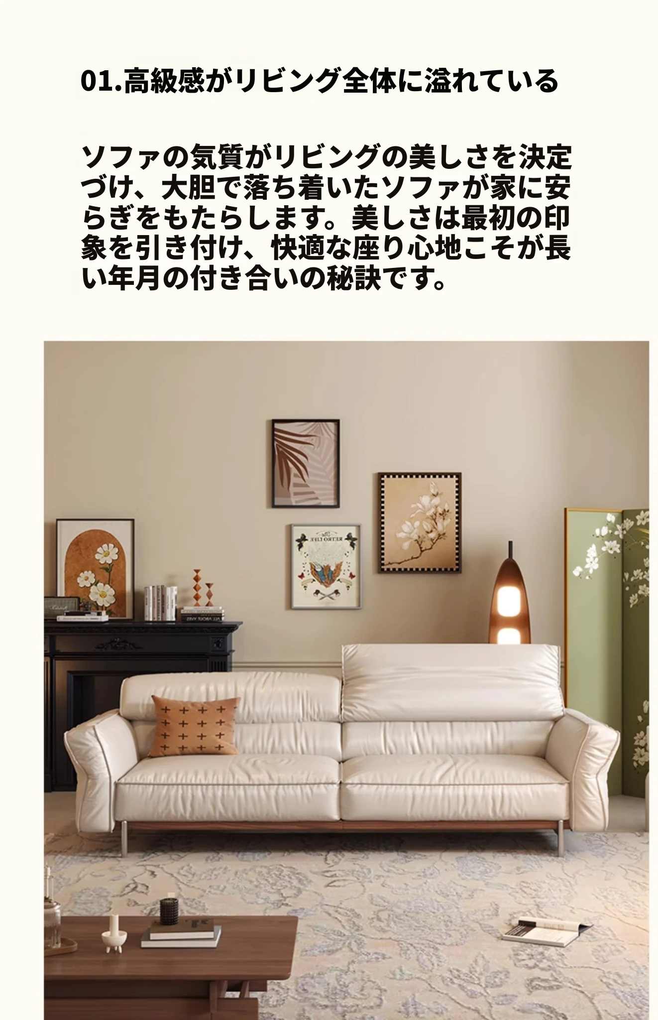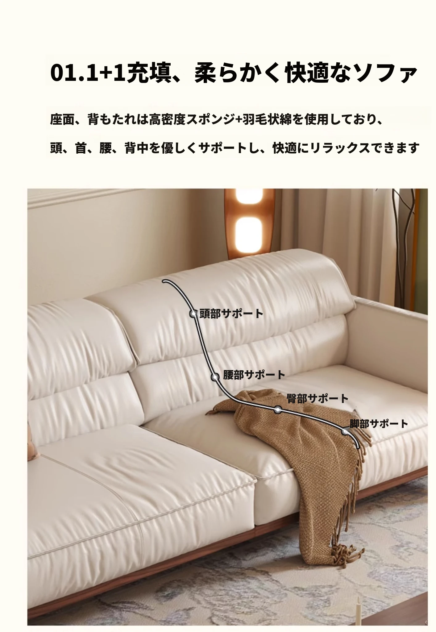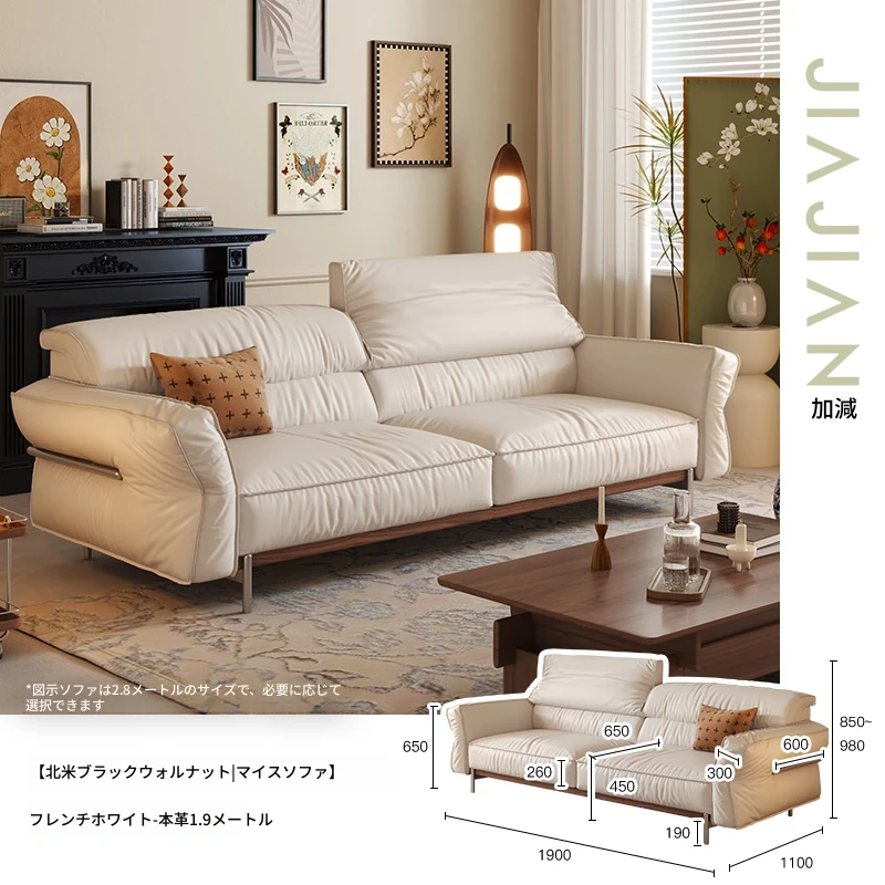 {マックスソファ} 北米ブラックウォールナット/1.9メートル フレンチホワイト - 繊細なスリップテクスチャーの第一層牛革{接触面}.