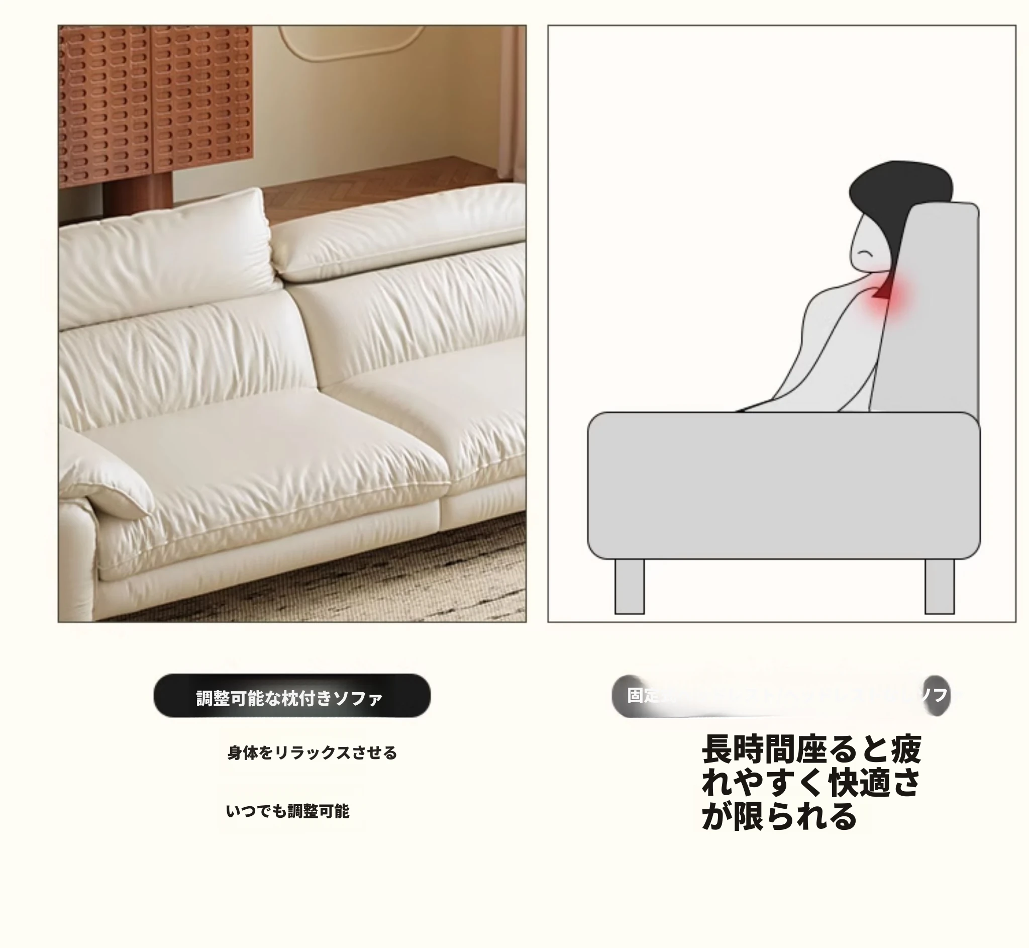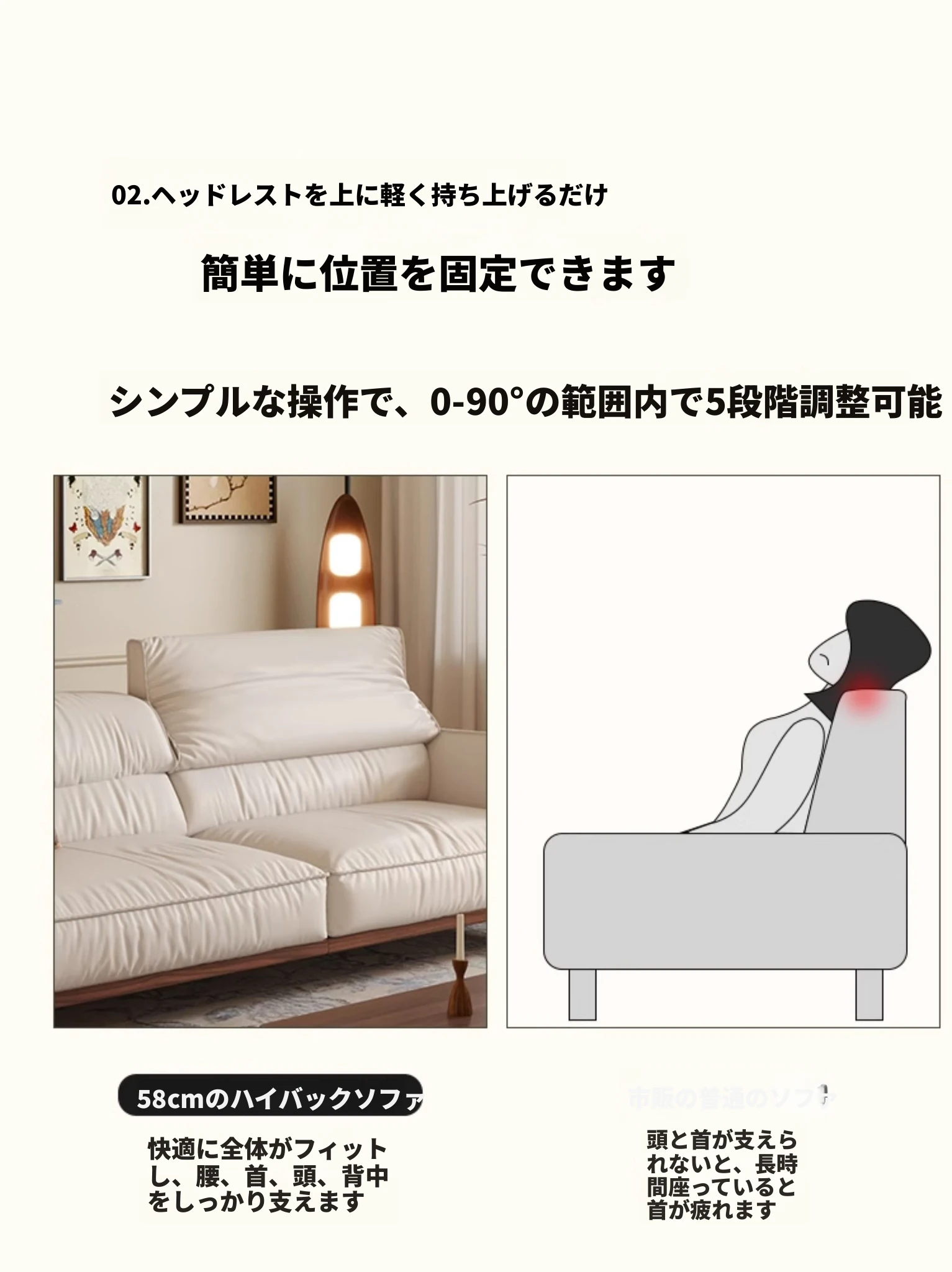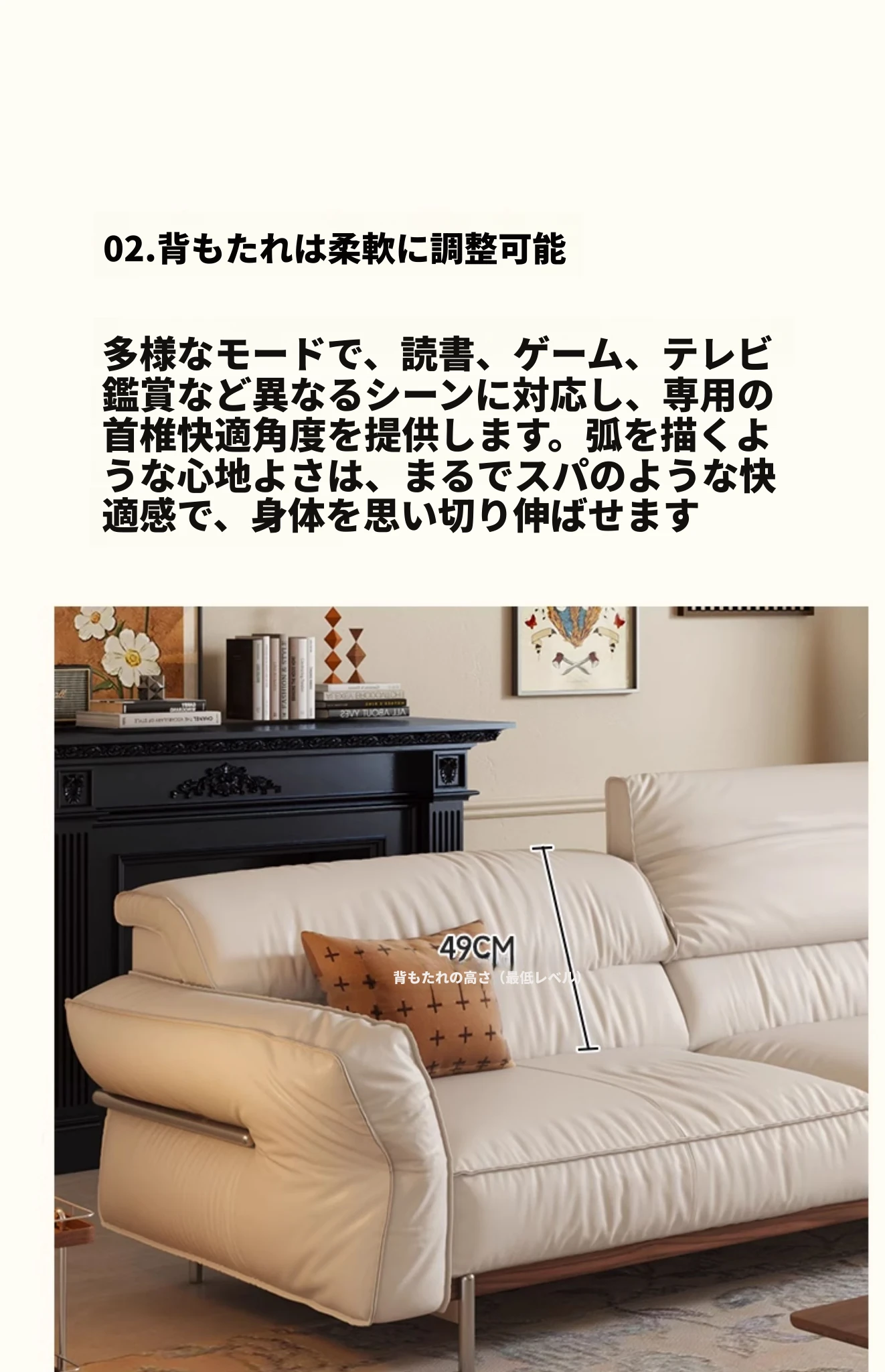 加減ライフのマイスソファー - オイルワックス本革、中古風デザイン、調節可能なヘッドレスト付きの高背もたれ直立型3人掛けソファで、快適さとスタイルを両立!
